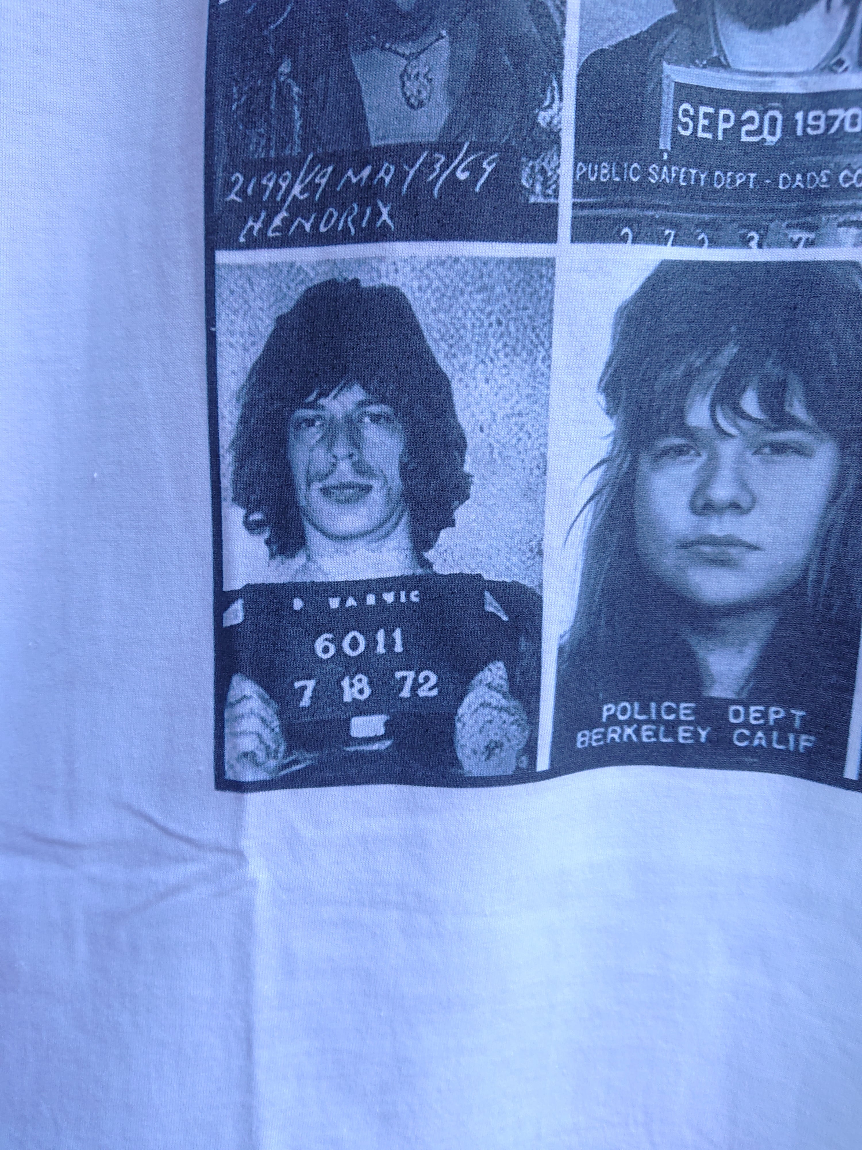 有名なマグショット(逮捕時に撮影される顔写真)をコラージュにしたデザインTee。