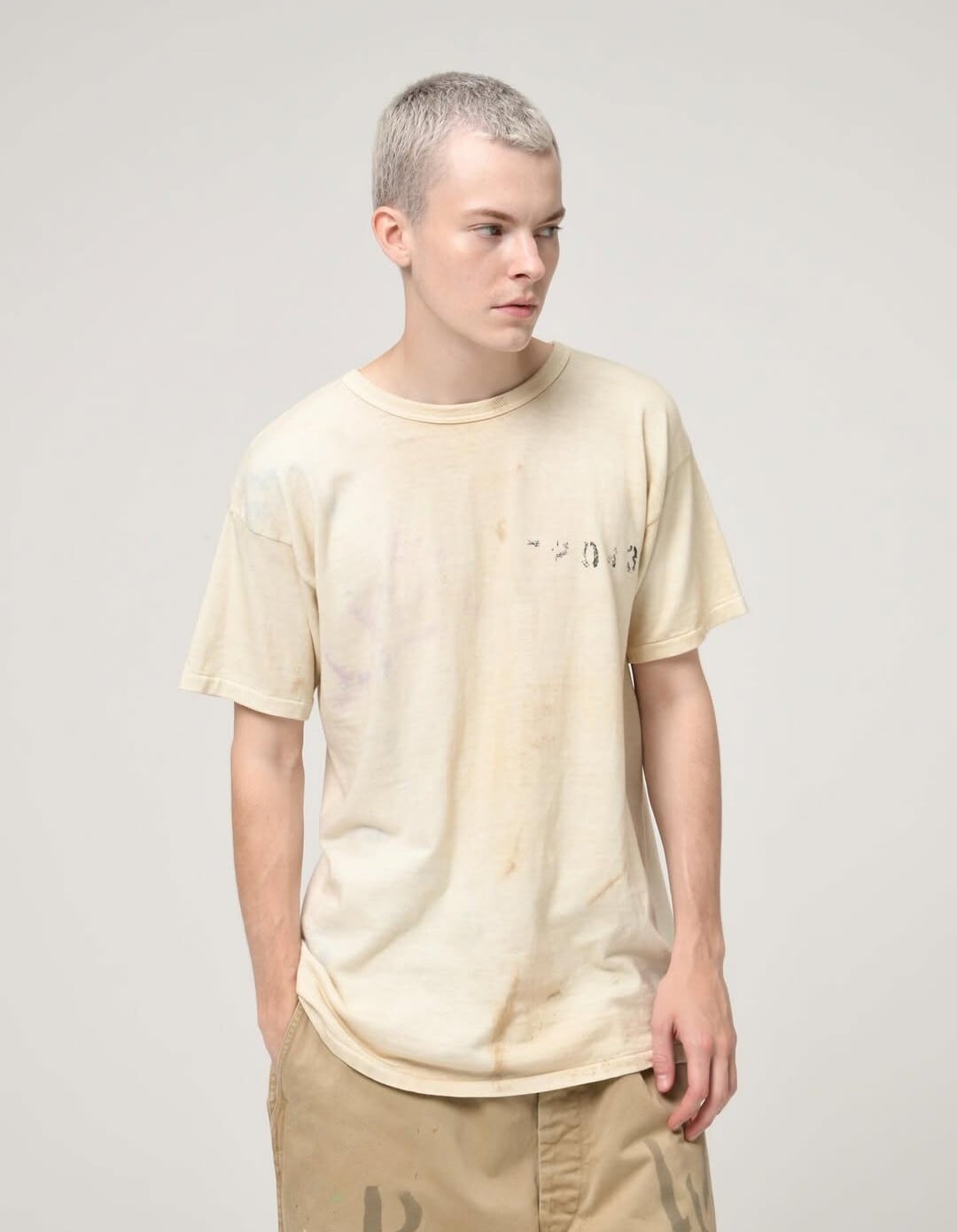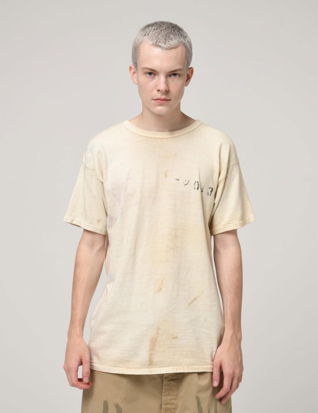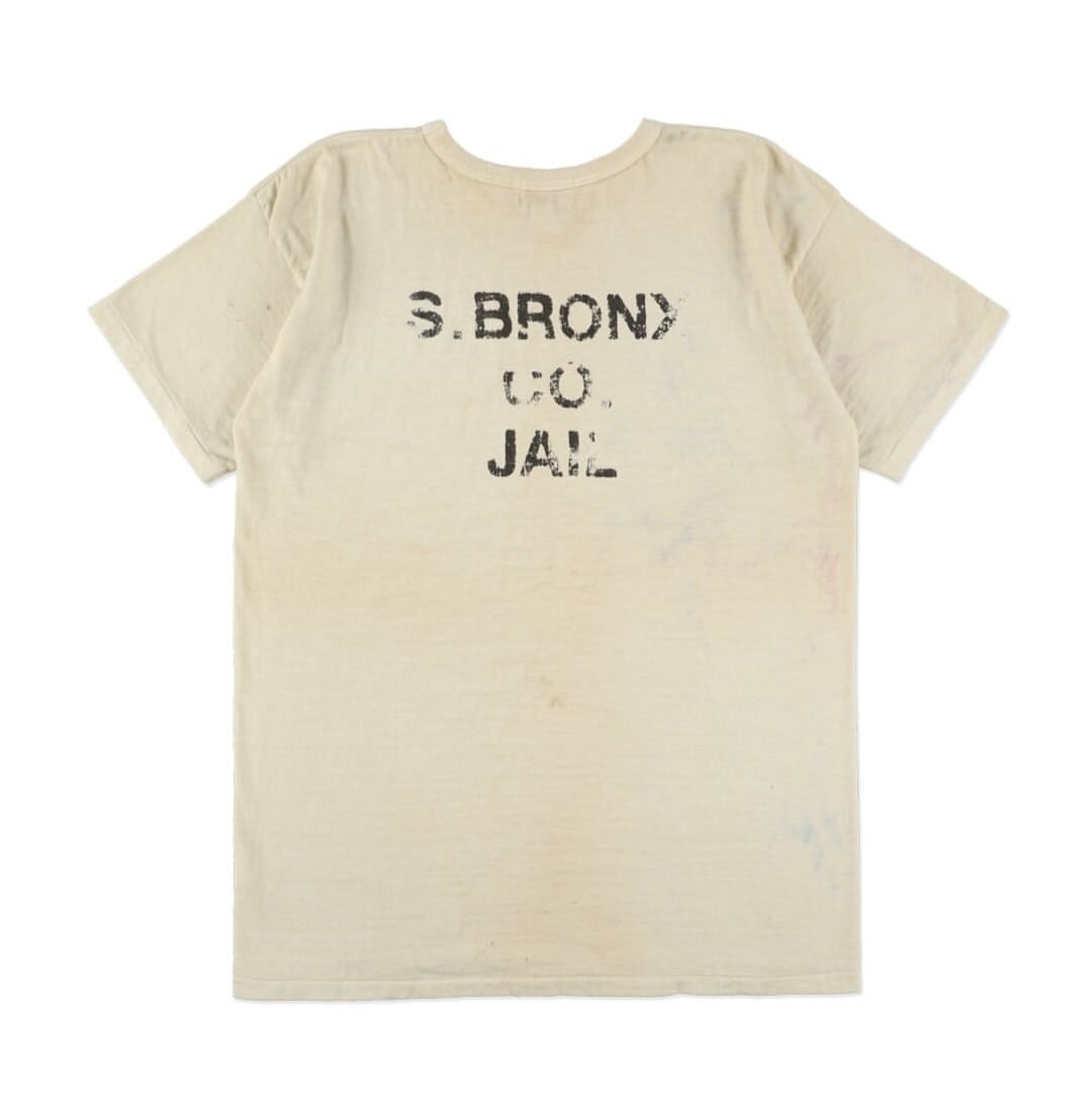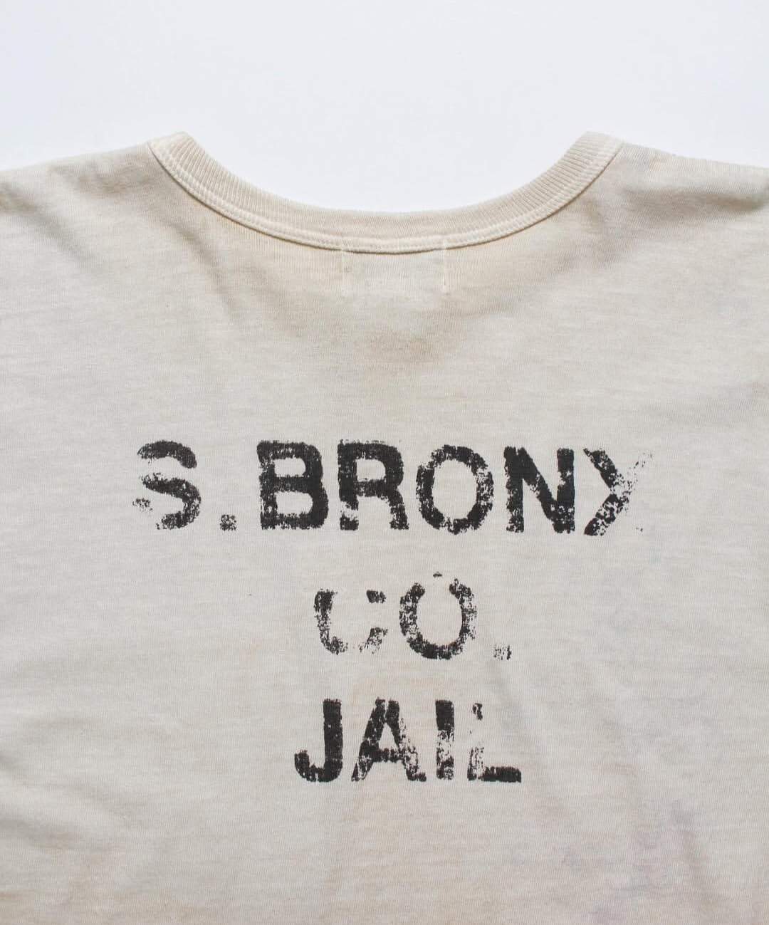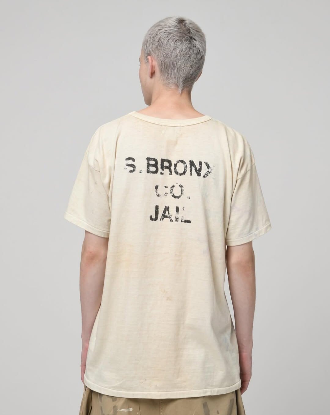 架空の「S.BRONX CO JAIL」をモチーフにしたTシャツのコンセプト。刑務所支給のTシャツの雰囲気を捉えています。抑制された無機質な存在感と、リアルな着古しの痕跡が絶妙なバランスで調和しています。まるで実際に刑務所内で着用されたかのような、極めてリアルなヴィンテージ感を再現。1980年代のレーヨン混紡Tシャツからインスピレーションを得た筒状のボディは、ドレープ感と軽やかな着心地を実現し、バランスの取れたシルエットと見事に調和しています。