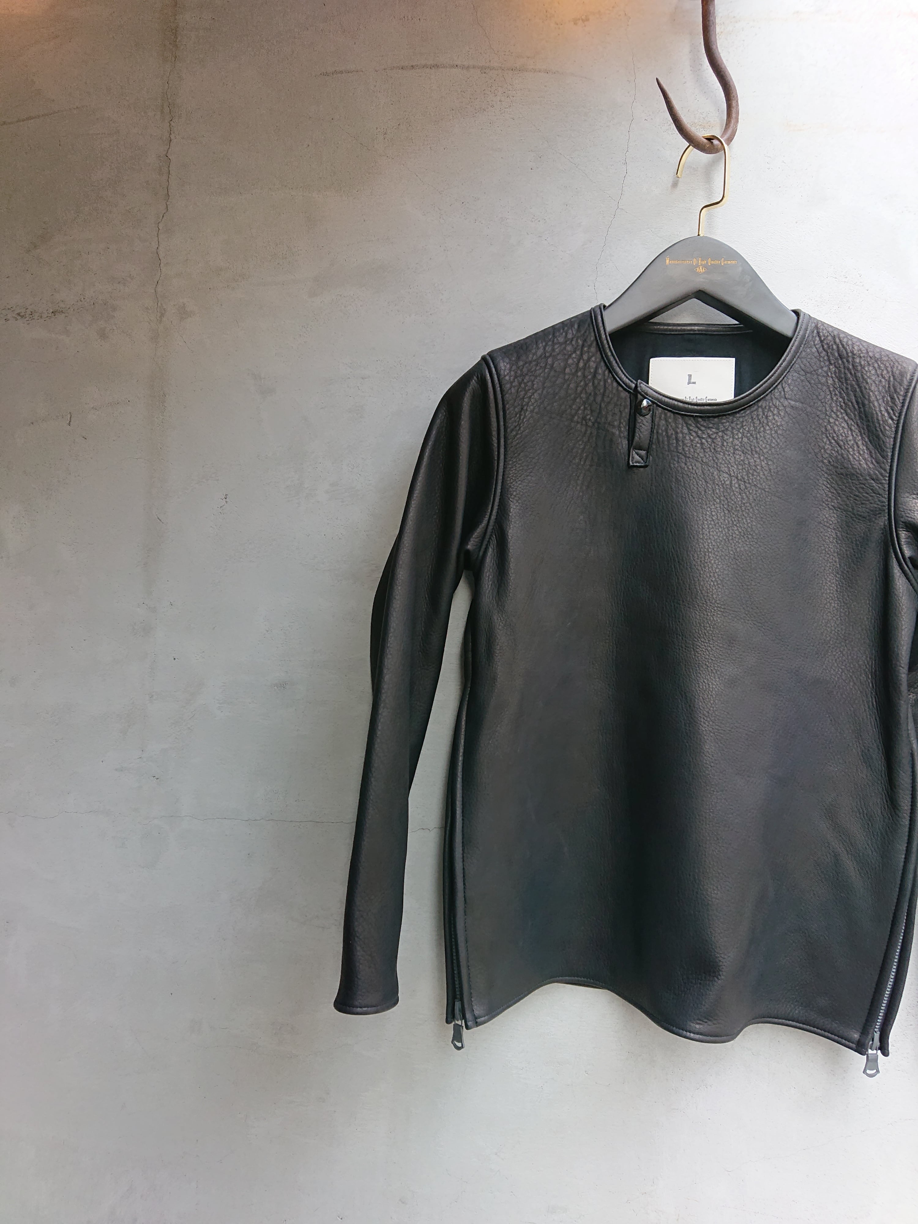 最上級の鹿革の持つ滑らかで味わい深い質感をロングスリーブTという衣服の原点とも言えるスタイルで最大限に表現した今季のBAA LEATHER。 これ以上に削ぎ落とされたデザインは想像し難い究極のソリッドレザー。