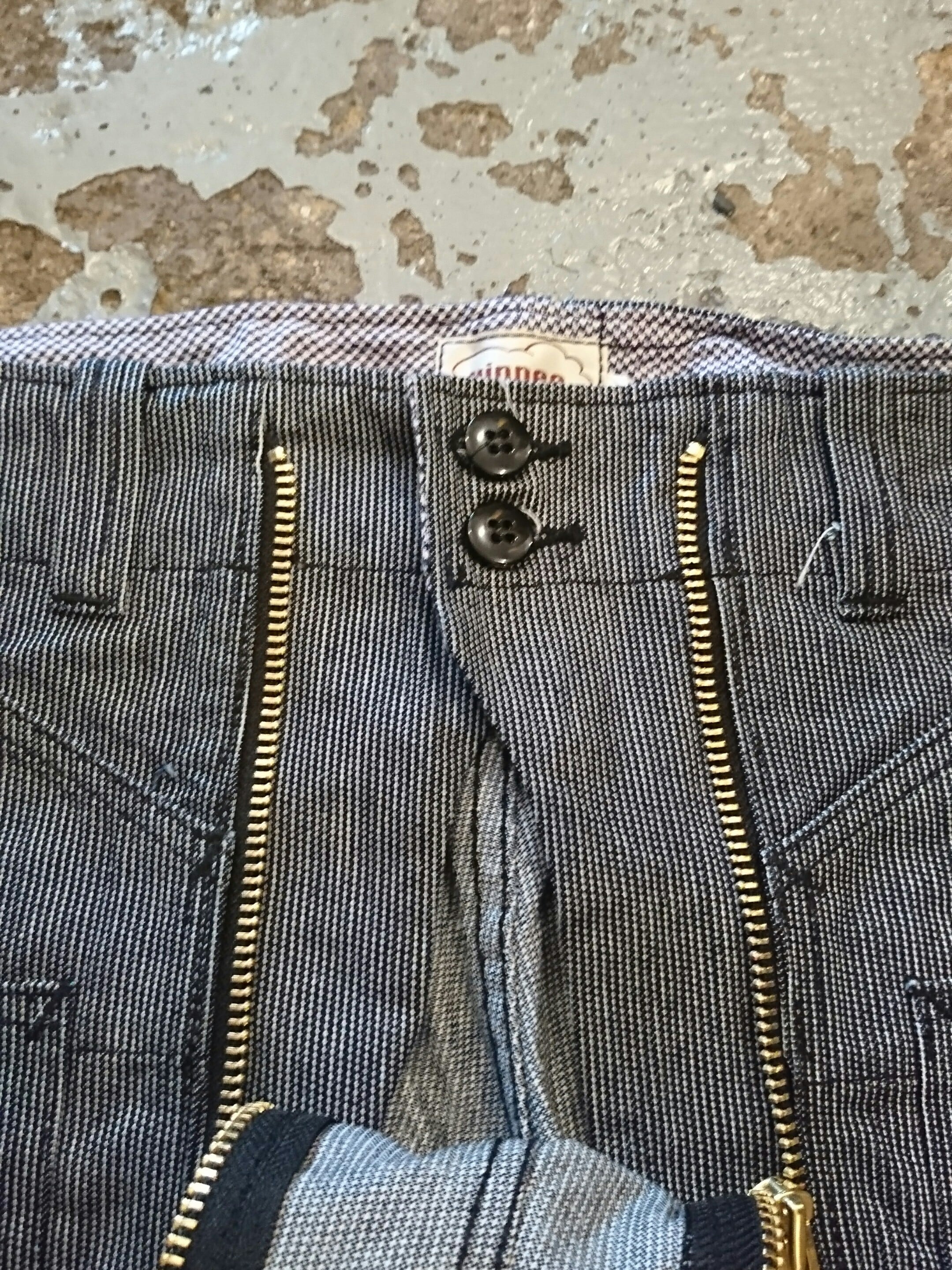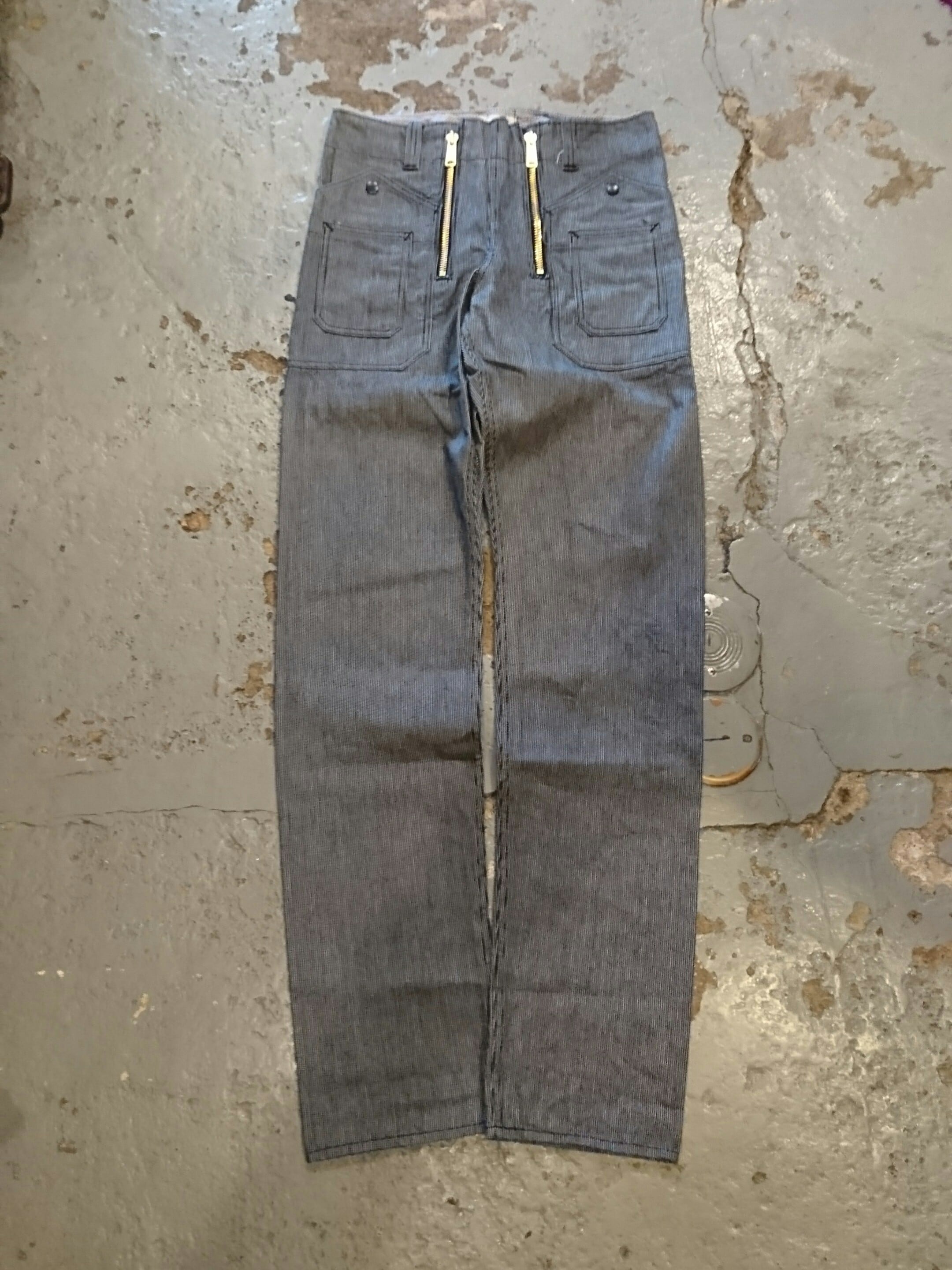 yippeeから新作のパンツが登場。ドイツのロガーパンツをベースにYippeeのデザインに落としこんだパンツです。ピンストデニムでポケットデザインが特徴。シルエットはテーパードしたストレートでロールアップして穿くのも可愛いです。