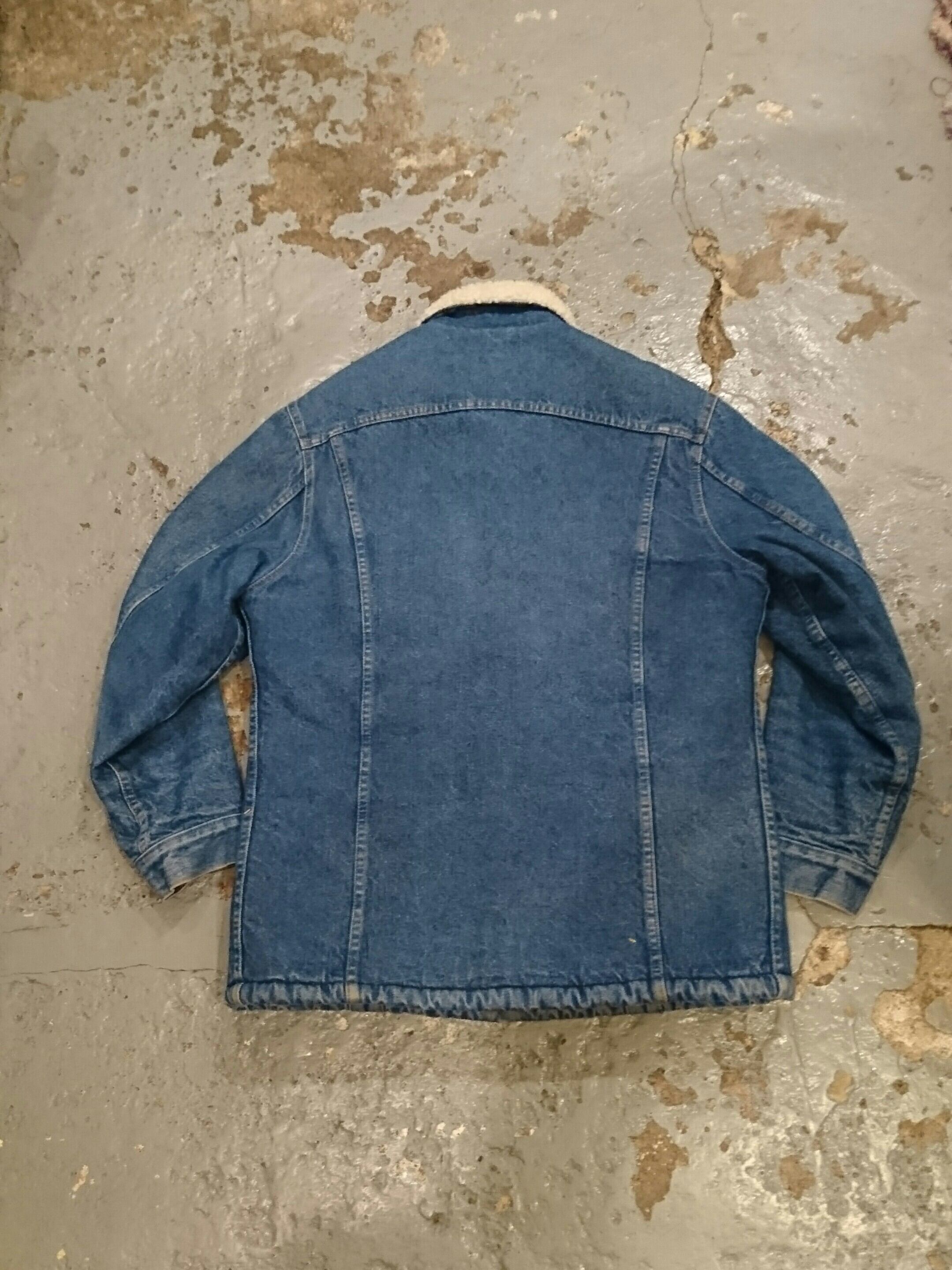 80年代のLevi's デニムボアジャケットのロングタイプ。オレンジタブのタイプでハンドポケットつきになります。普通のタイプより少なくモデルになります。昨今人気のデニムボアジャケット。