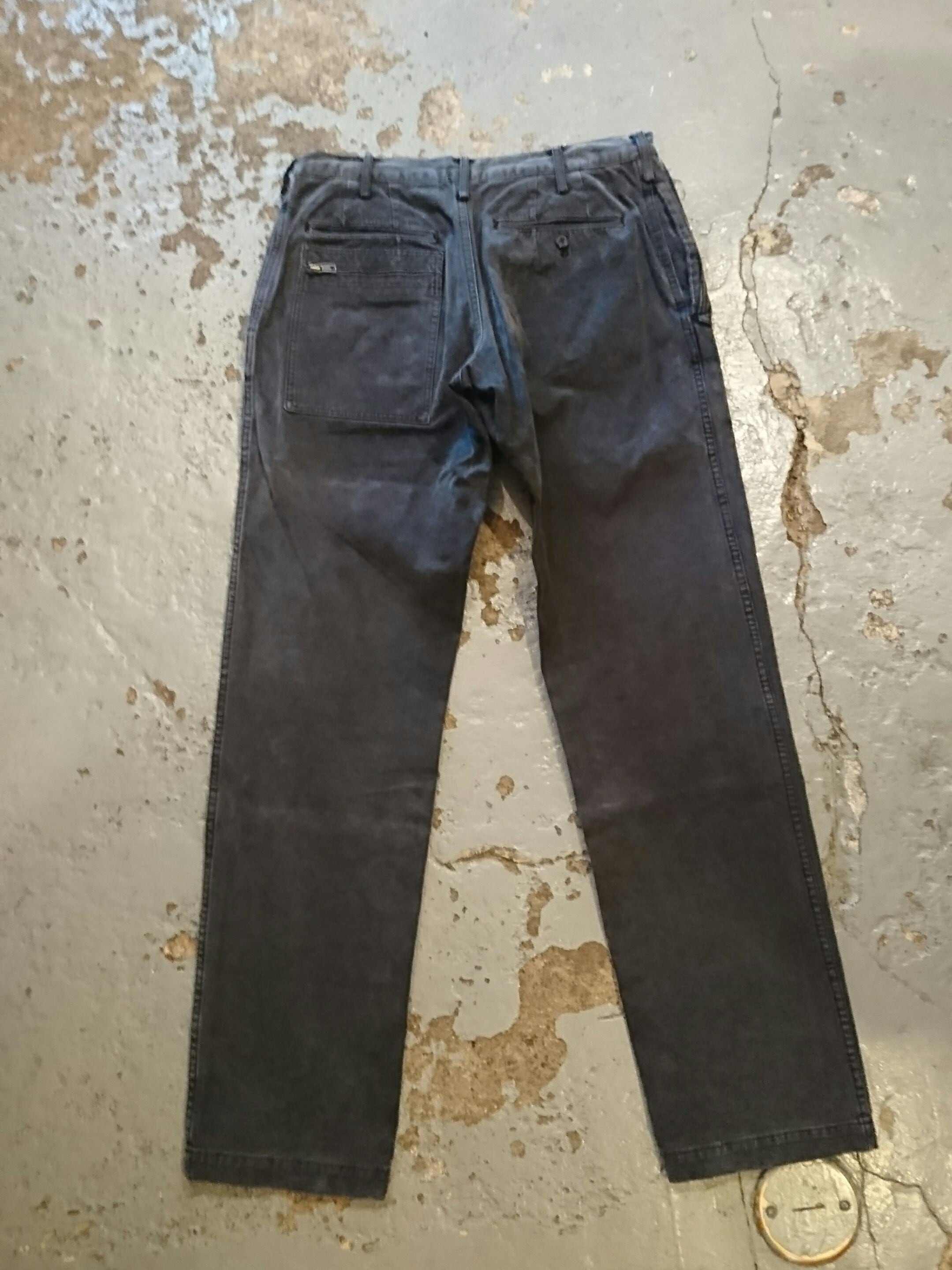 ガシッとしたコットン素材でポケットのディテールが特徴。フェードしたブラックカラーもこのパンツの格好良さを引き立ててます。