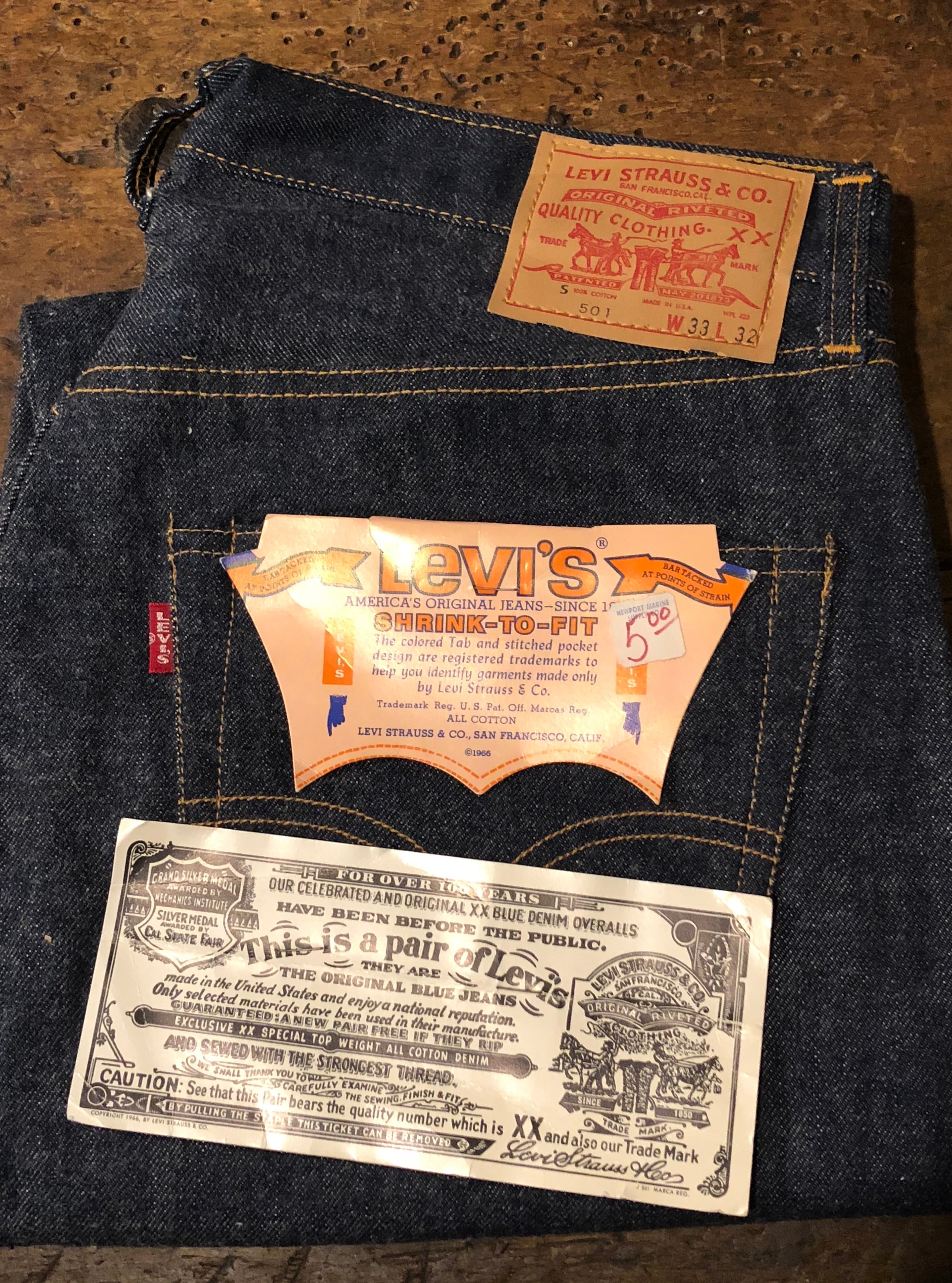 LEVI'S 501 "E" S-type DEADSTOCK フラッシャー付きの完品。キズ、ヤケなども一切無く、表記サイズW33、L32(実寸W33、L31)とゴールデンサイズの文句無しの一品です。
