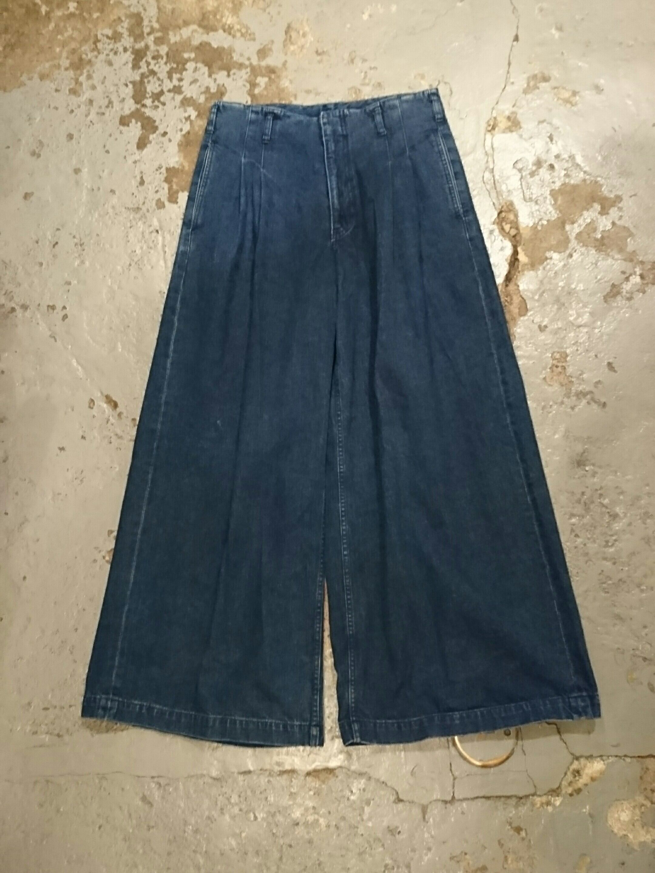 デニムパンツになります。袴のようなワイドシルエットが特徴な1本。2011年のモデルになります。
