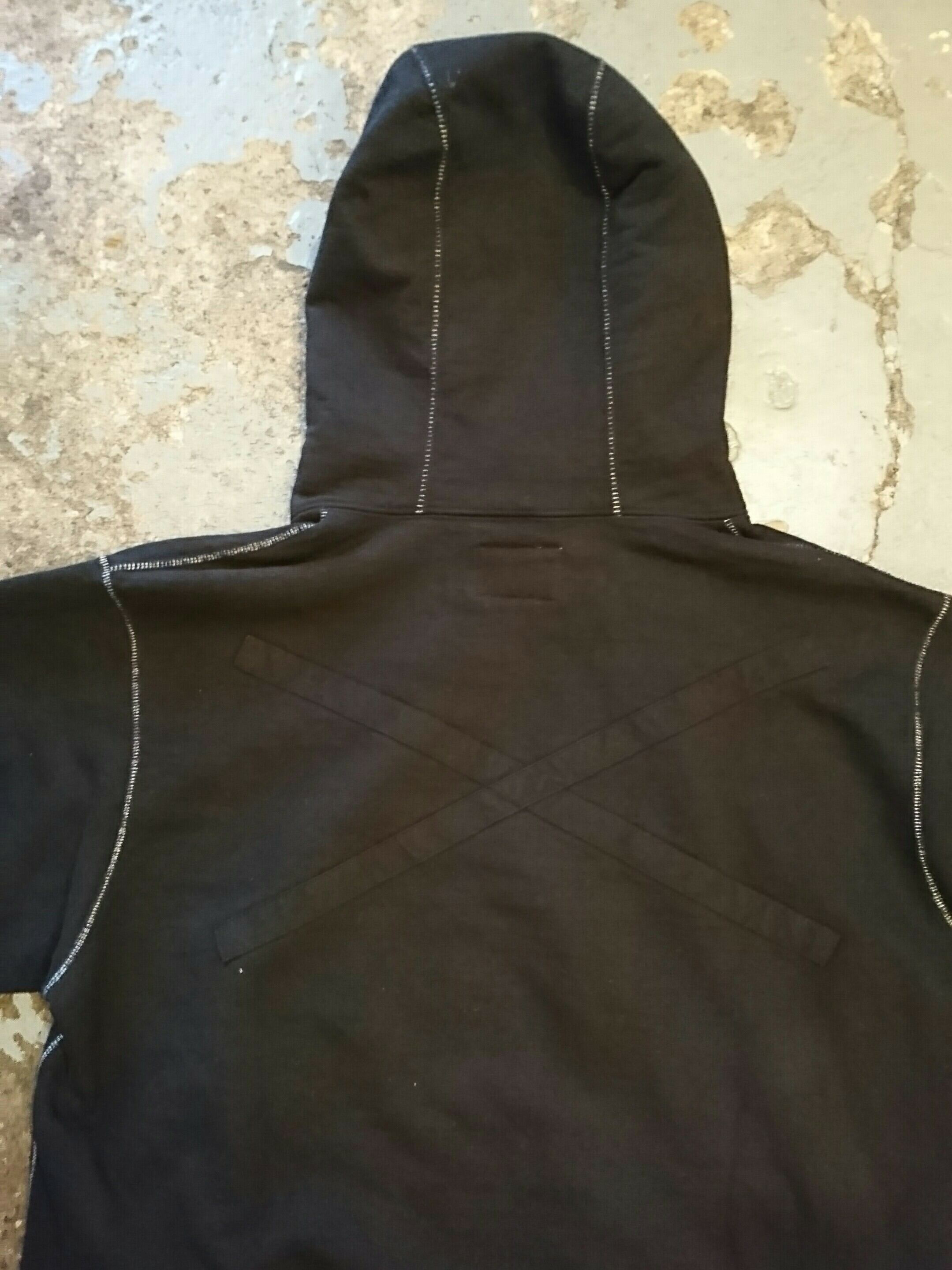 プルオーバーパーカー。背面にはNEXUS Ⅶのアイコンである『クラック』を簡略化した X をテープで表現。