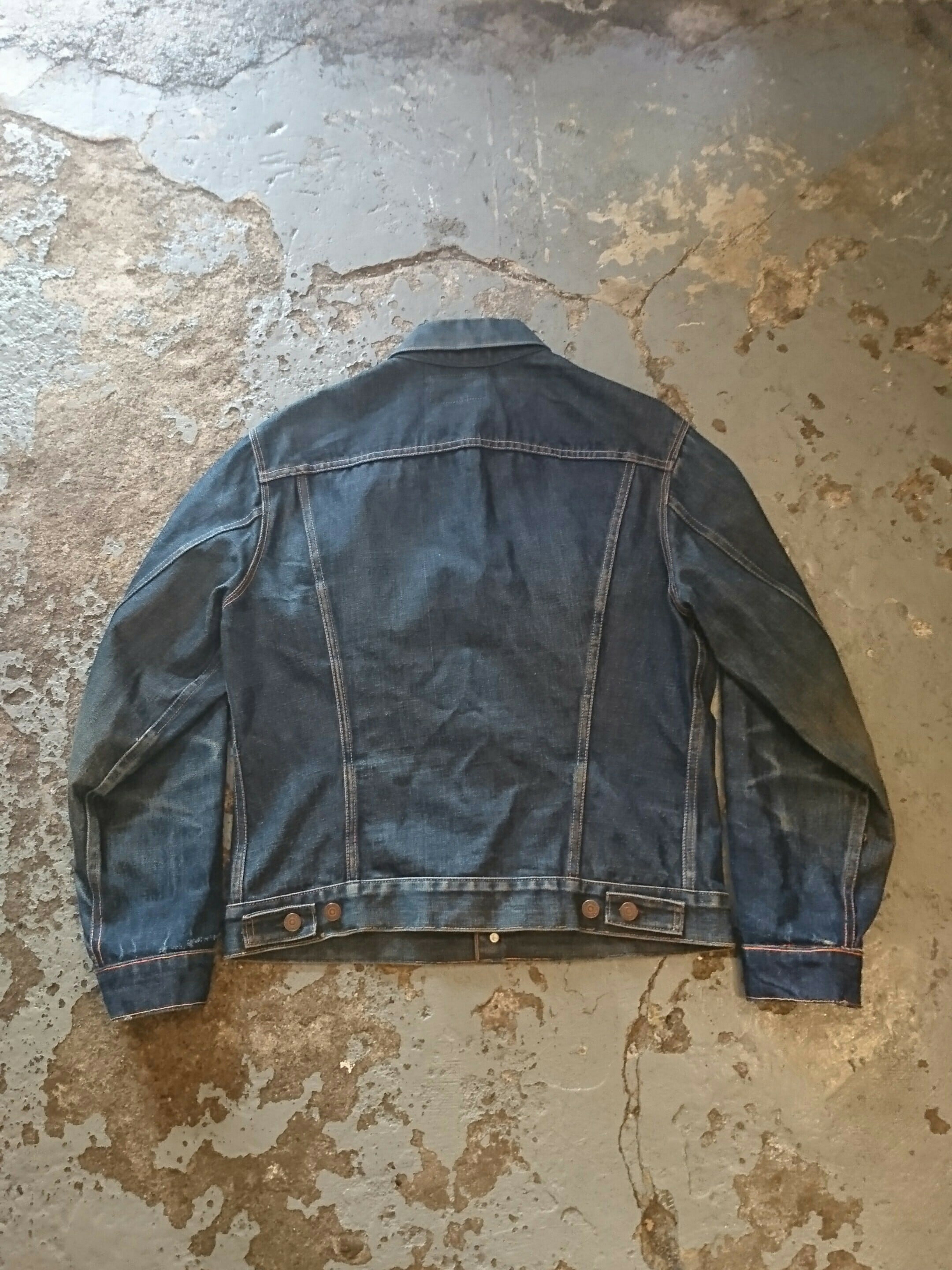 色落ち、腕のアタリが雰囲気あって男前な1着。色残りもまだまだあるのでこれからの色落ちも楽しんでいただけるます。タブが欠損しておりますがディテール等からビッグEになります。