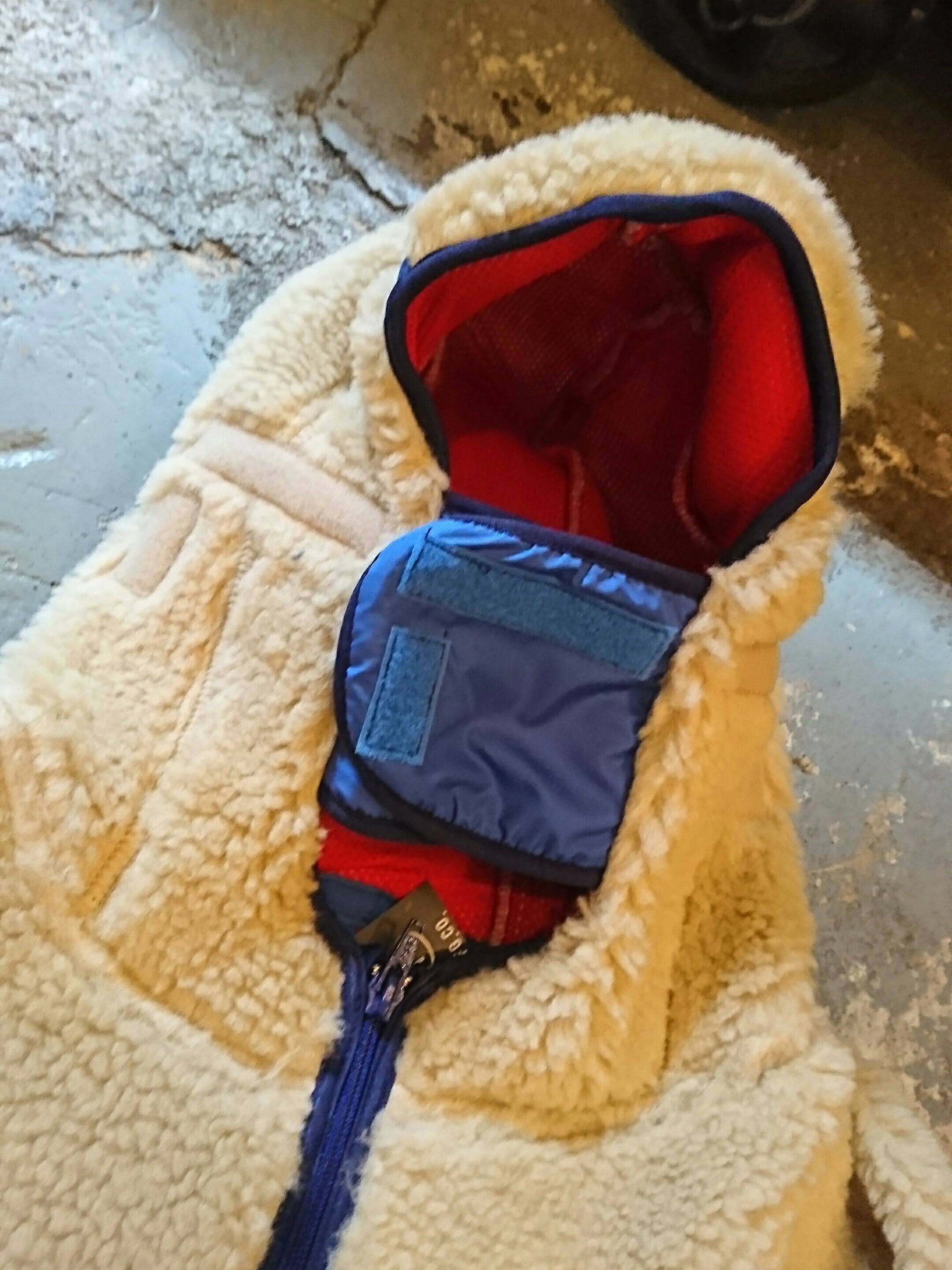 フーディを連想させるデザイン。そこにレトロパイルとUSAFラビットパーカーの特徴的なフード