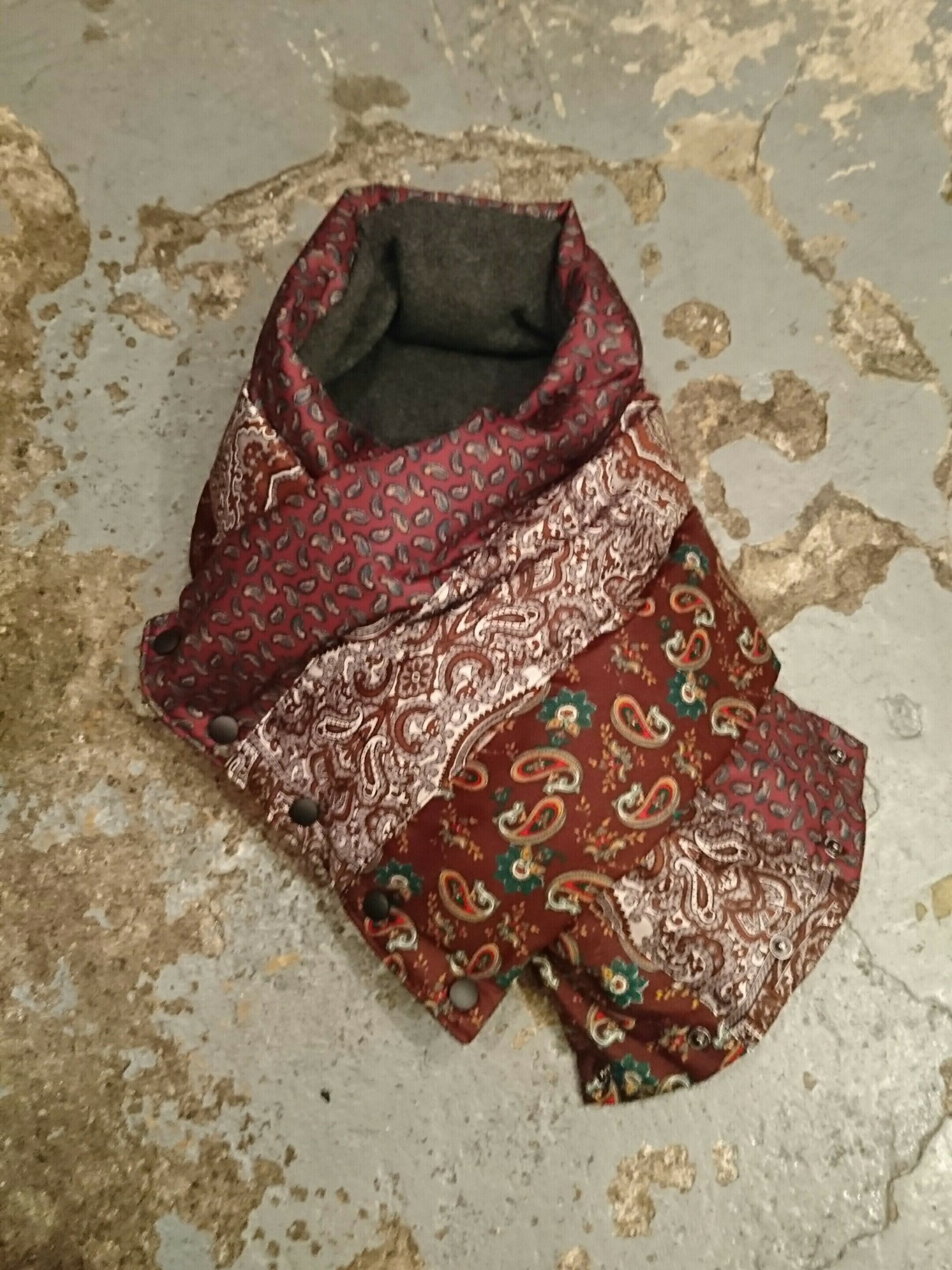 ヴィンテージスカーフを3枚使用しダウンマフラー
