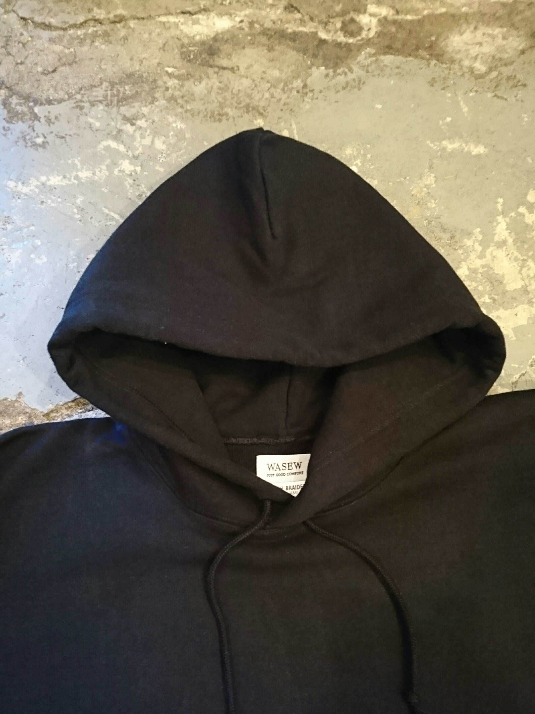 TOUGH BRAIDED SWEAT SHIRTにフードをジョイント。WASEWオリジナル度詰裏毛&リブ。WASEWらしい経年変化の楽しめるオリジナルファブリック。TOUGH BRAIDEDの名前の通りかなり丈夫に編み込んだ裏毛は硬さを感じるかもしれませんが、着用と洗濯を繰り返すうちにもっちりとしてしなやかさが増していきます、生地が度詰裏毛のため体を動かした時の可動域を広げ、またストレスを軽減させるために脇にリブをはめ込み。フードはキャップを被ったままでも被れる絶妙なサイズ感。WASEWならではの拘りがつまったスウェットの第2段です。