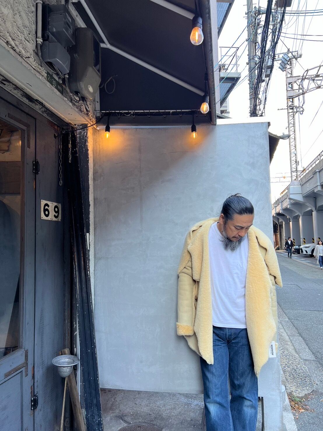 軽くて柔らかいアメリカ産の高級ムートンを贅沢に使用したBOWWOWのムートンコート。1970年代のクラフトブランドのムートンジャケットを感じさせるデザインが今とても新鮮に感じます。変則なしでカットソーの上にコート羽織る感じて着てもらうのが一番格好良いと思います。高級ムートンを使用してるだけに今、生産したらとんでもない金額かと思います。気になった方は是非手にとってみて下さい。