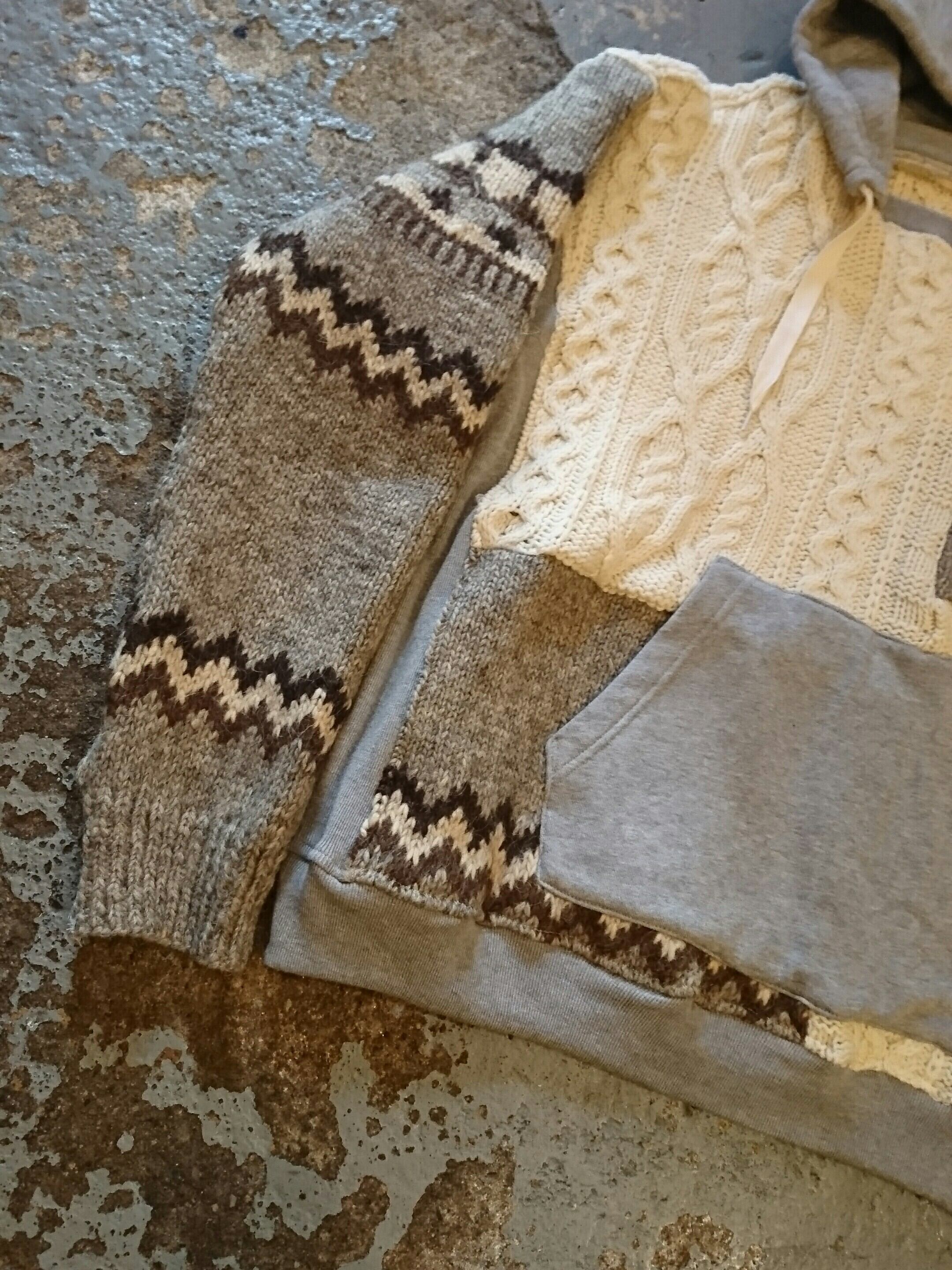 inkより新作が入荷。USEDのノルディックセーターとフィッシャーマンセーターを編み合わせ