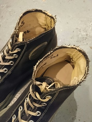 両方の足入れ部分にスレ(写真参照)がありますが着用に問題はありません。近年ヴィンテージ コンバースの高騰、欲しくても手が出ない方も多いかと。ヴィンテージコンバース以外にも当時良いキャンバススニーカーを造ってるとこは沢山あります。B.F.Goodrichはそのなかでも代表格だと思います。