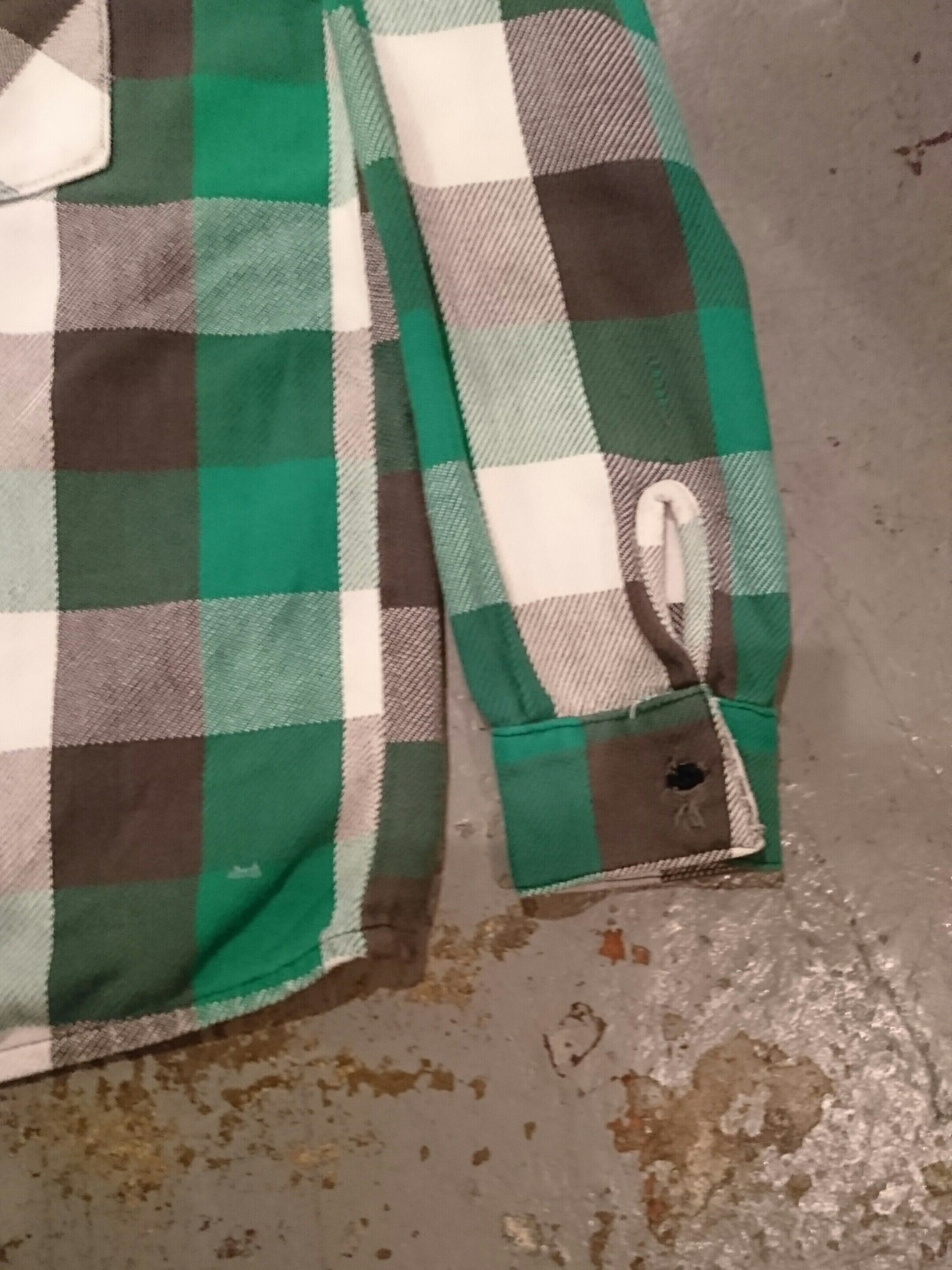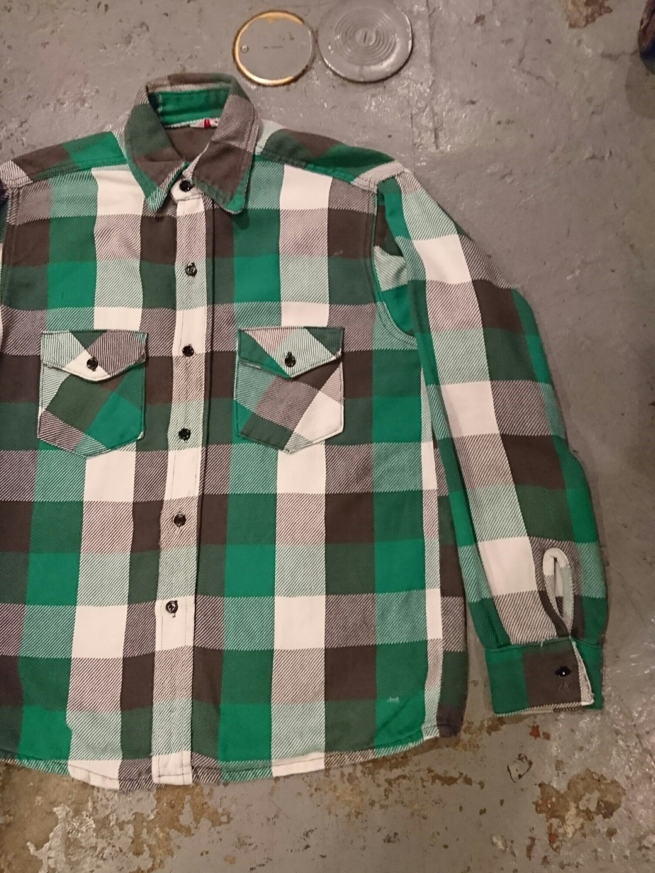70年代 FROSTPROOFのヘビーネルシャツになります。王道流行り廃りなく着ていただける定番のアイテムだと思います。裾を切って少し短く直されてるのと両袖のボタンホールに傷がありますが着用に問題はありません。