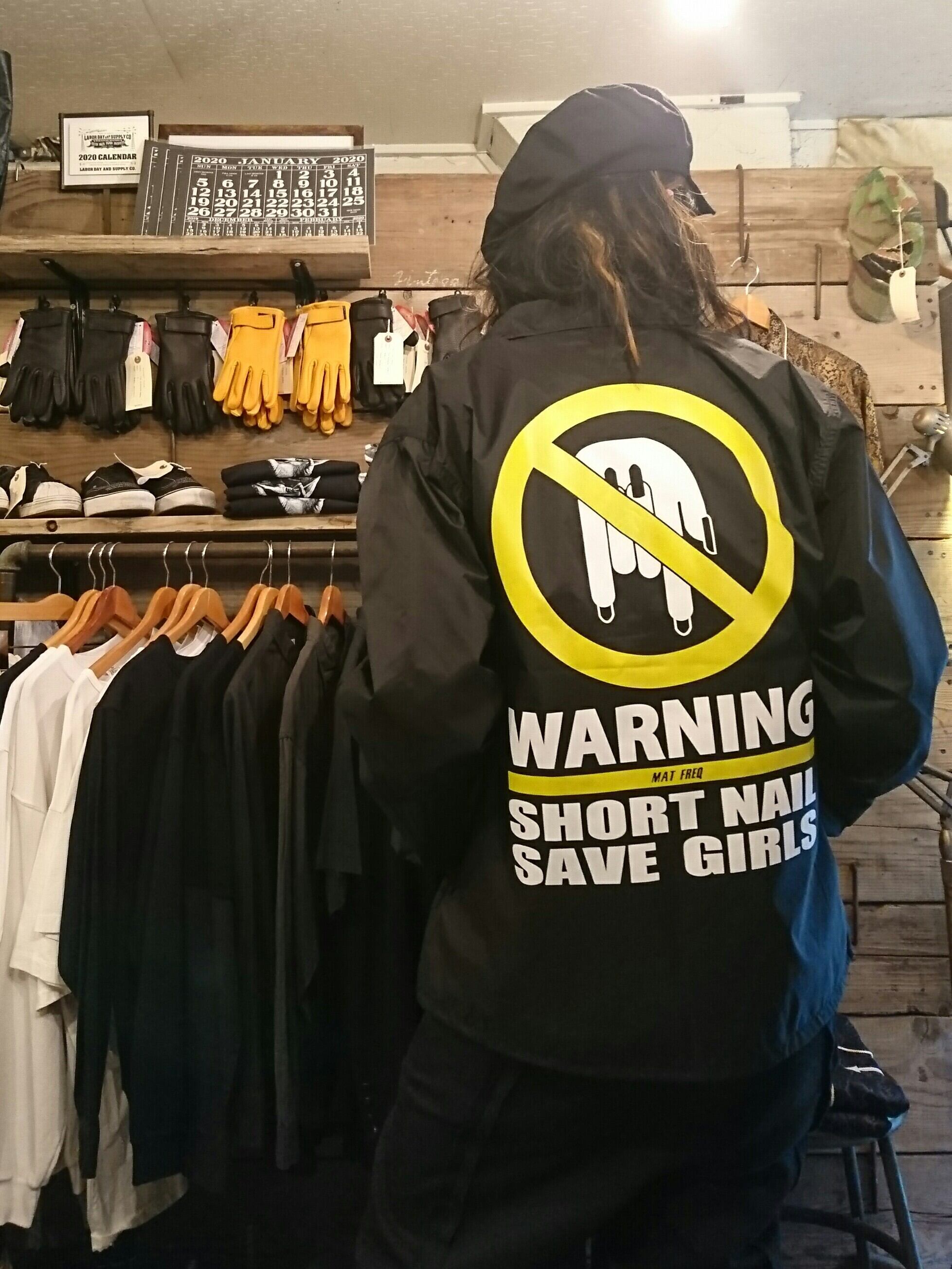 MATFREQ "WARNING SHORT NAIL SAVE GIRLS COACH JACKET" Black Color