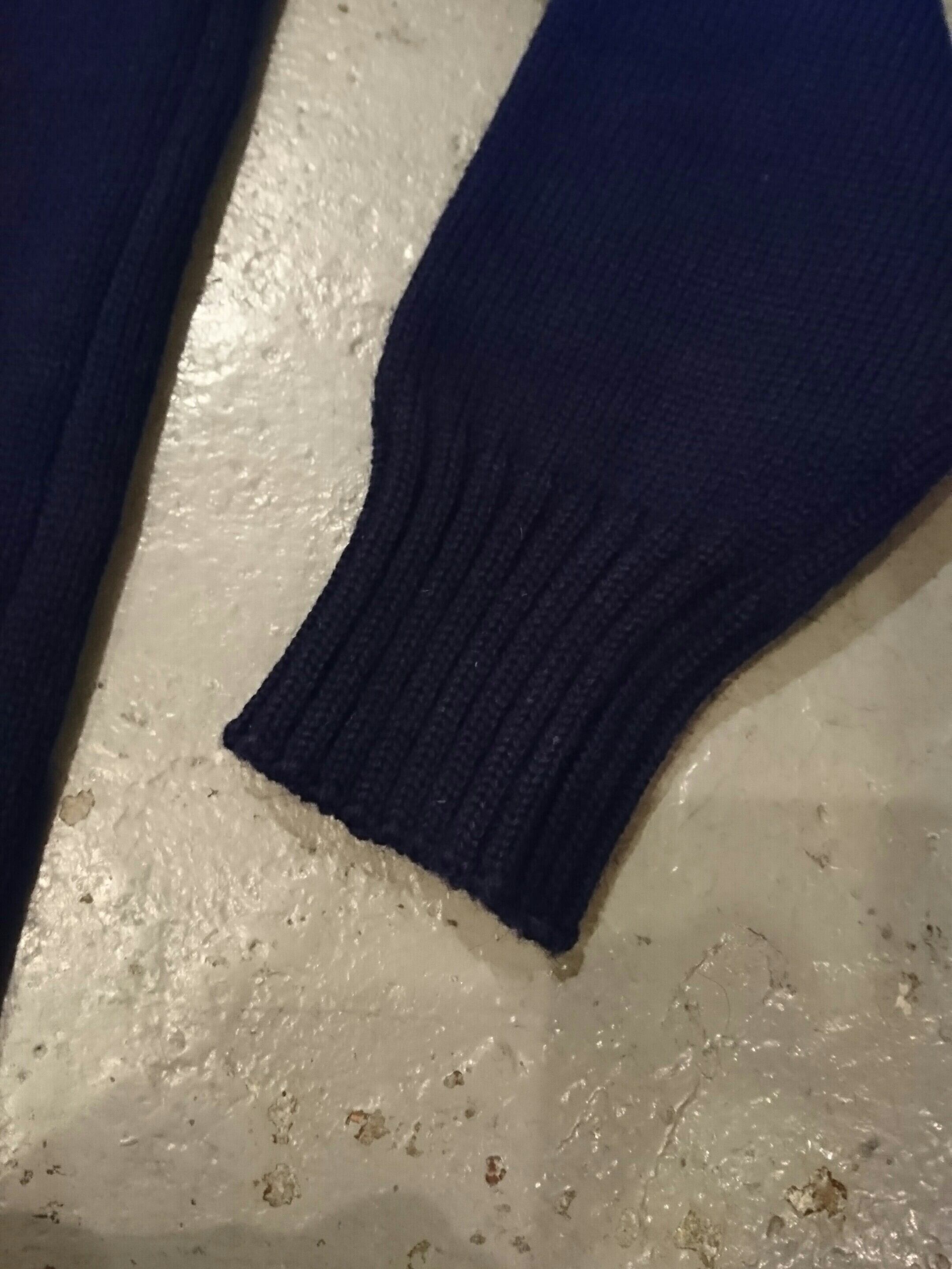 ガンジーセーターは漁師の作業着とし愛用されてたニットです。ネック下に小さな傷(写真参照)がありますが着用に問題はありません。