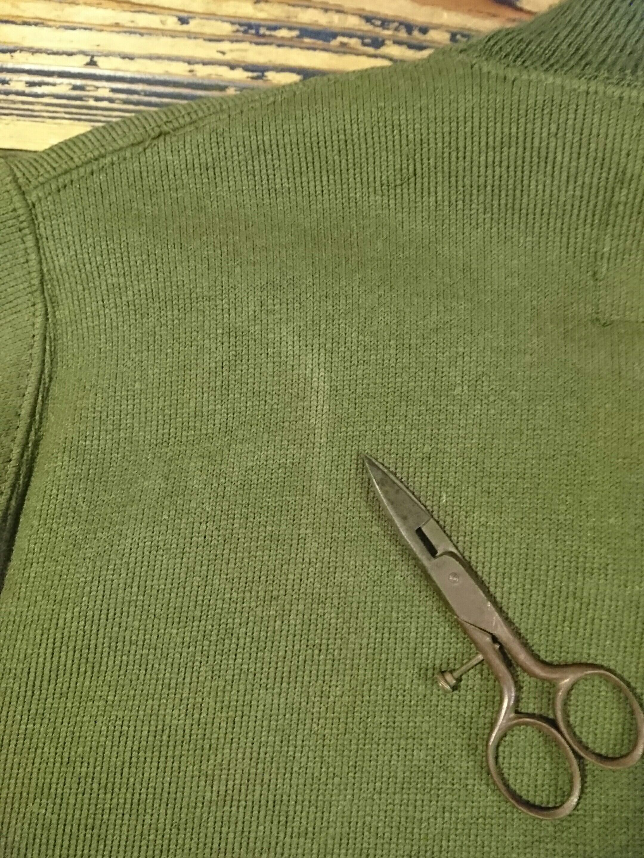 TEEになります。TEEといってもスウェットのような感じになります。一見、ミリタリー物?と思わせるデザイン。タグが欠損してるのでブランドは