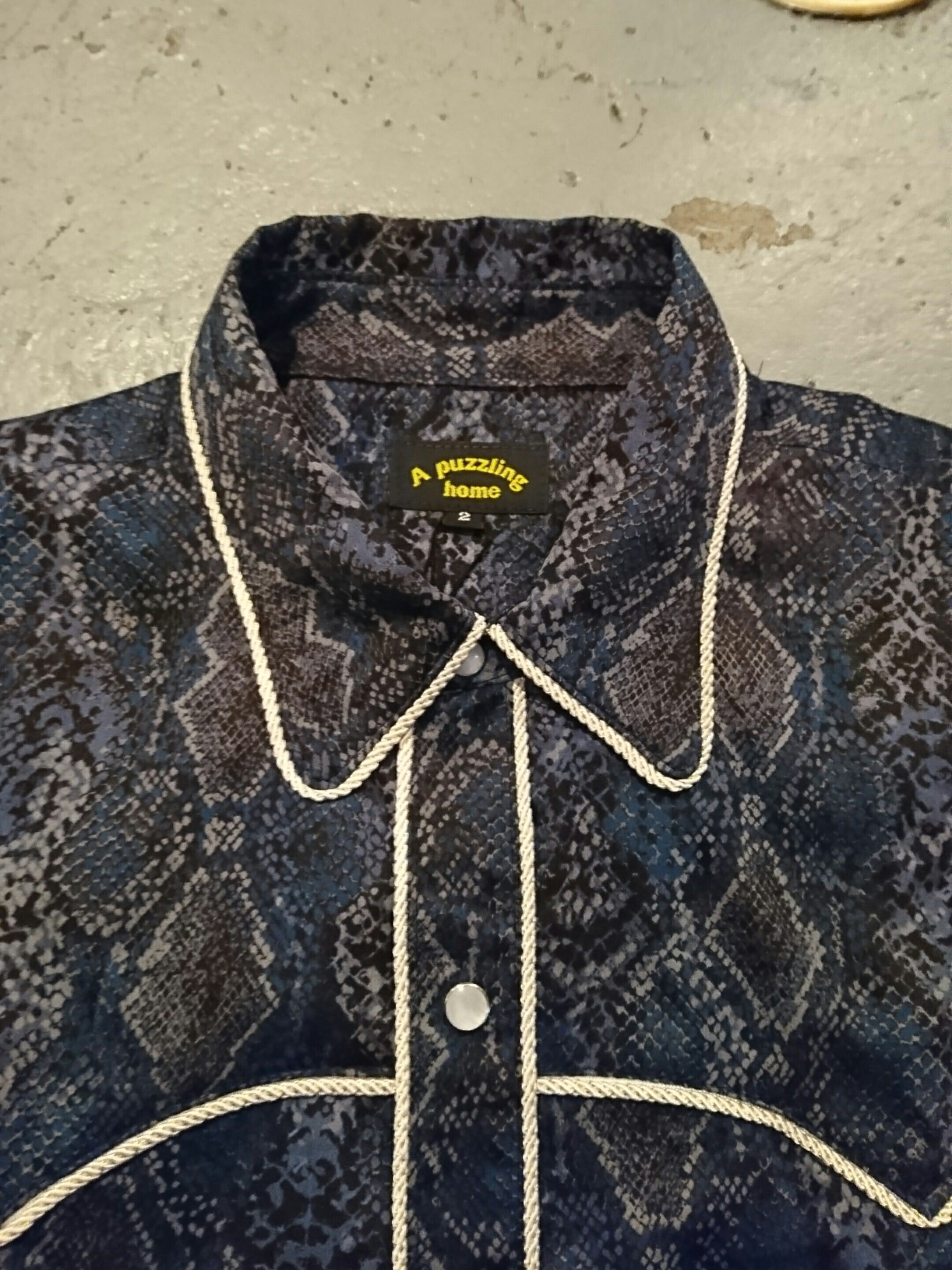 A puzzling home "LAME PIPING WESTERN SHIRTS" Navy Python