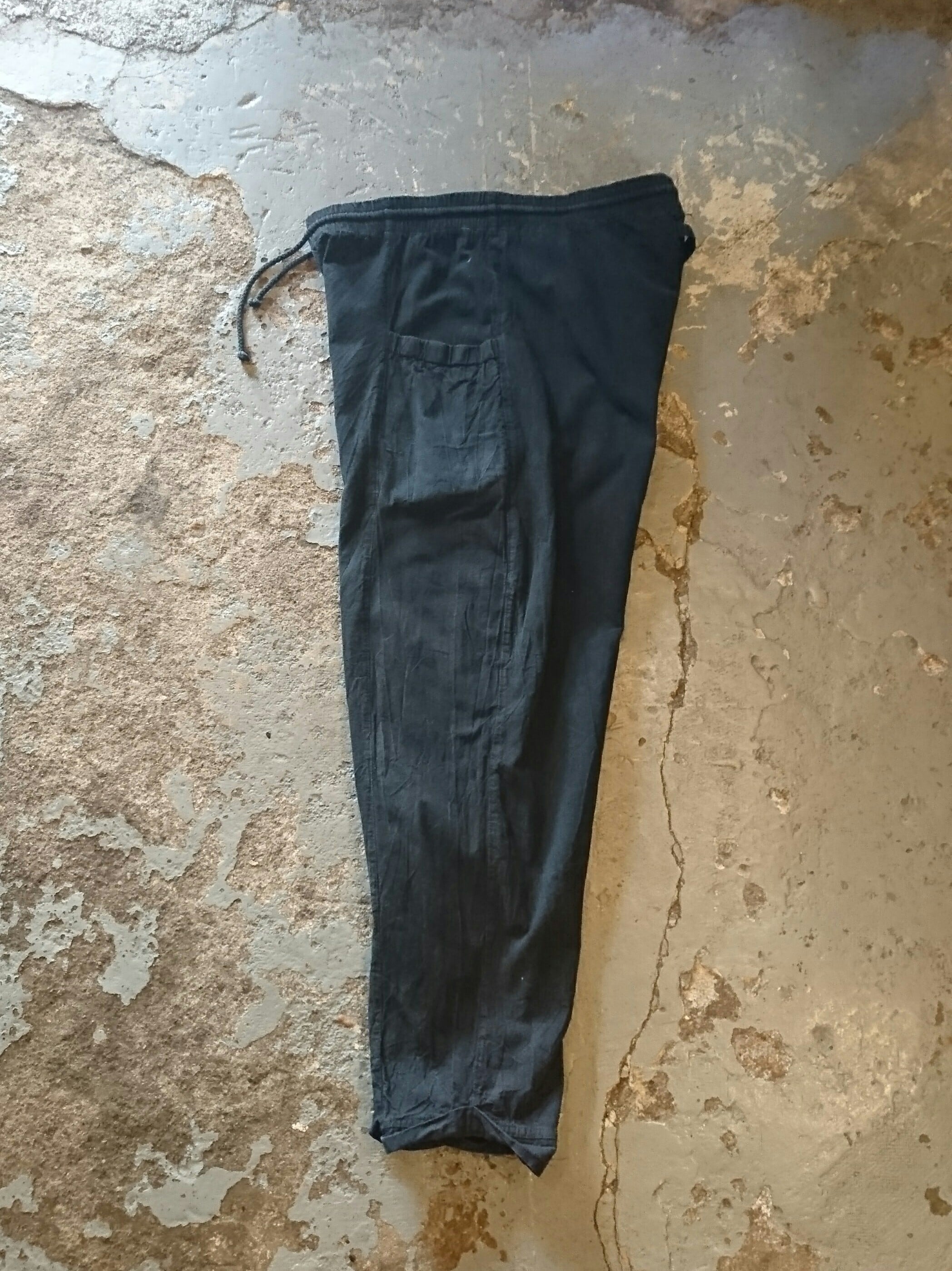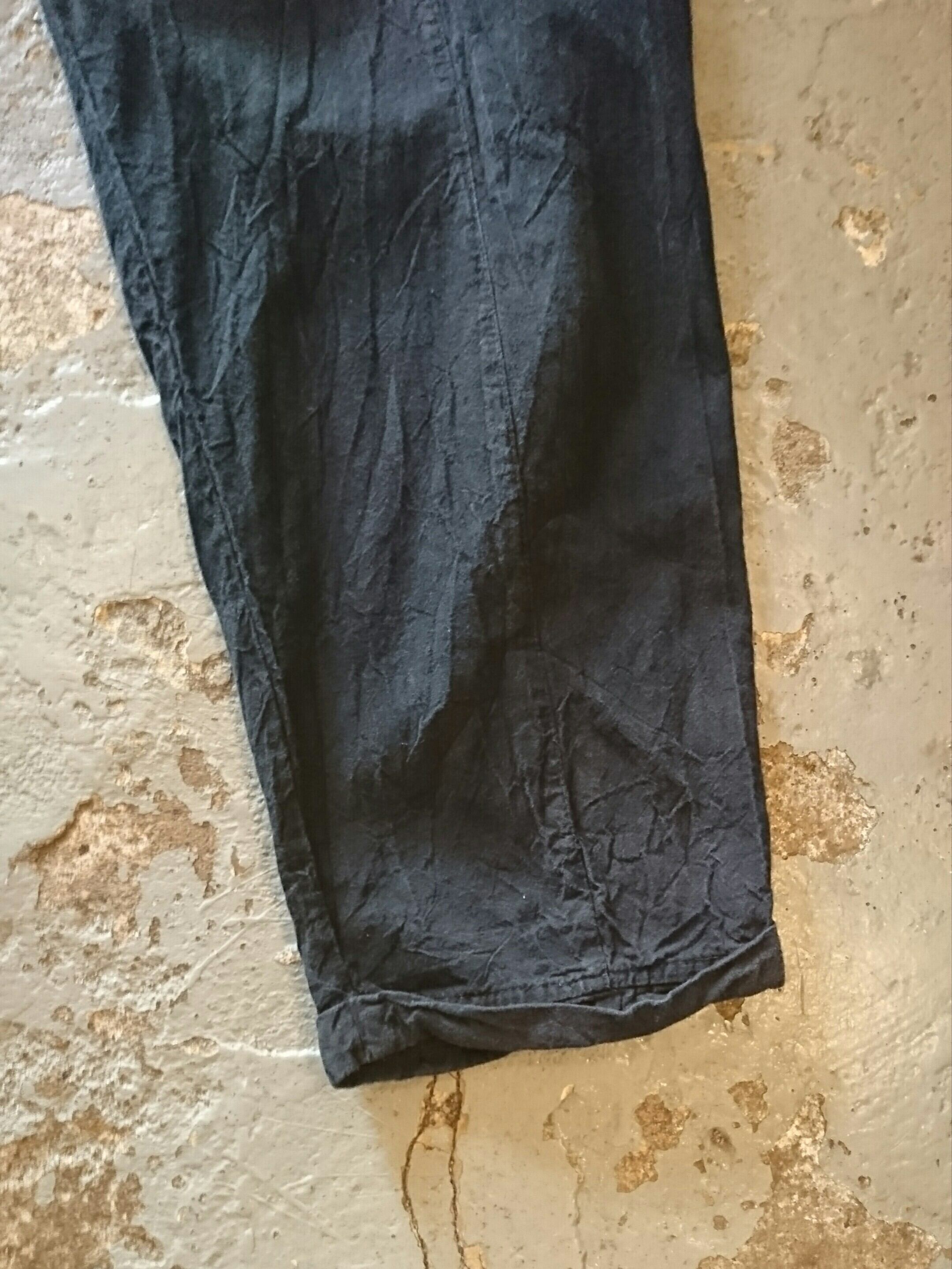 テーパードしたシルエットで裾がダブルになっておりモードなスタイルにもハマる1本。男女共に穿いていただけるパンツです。