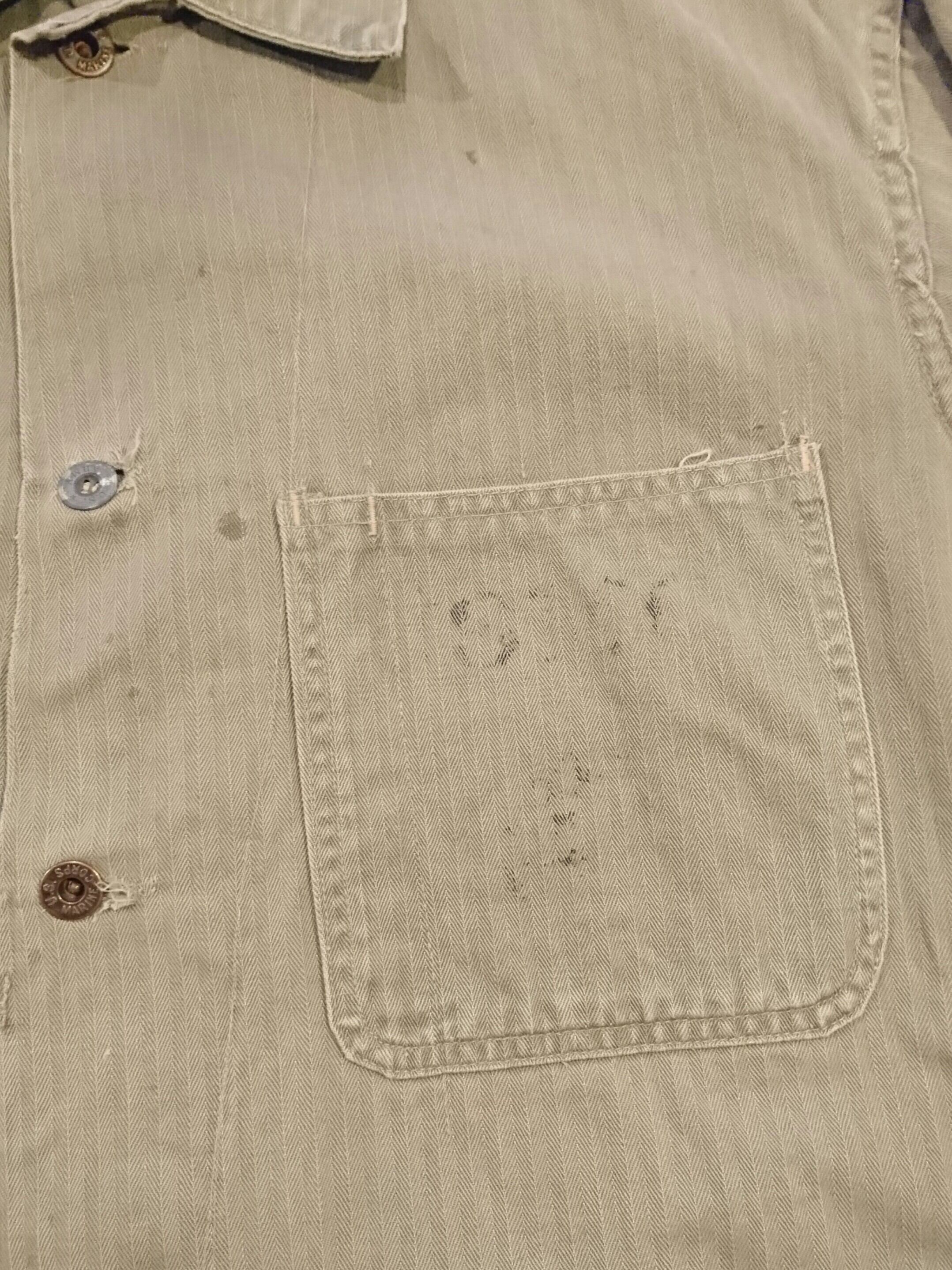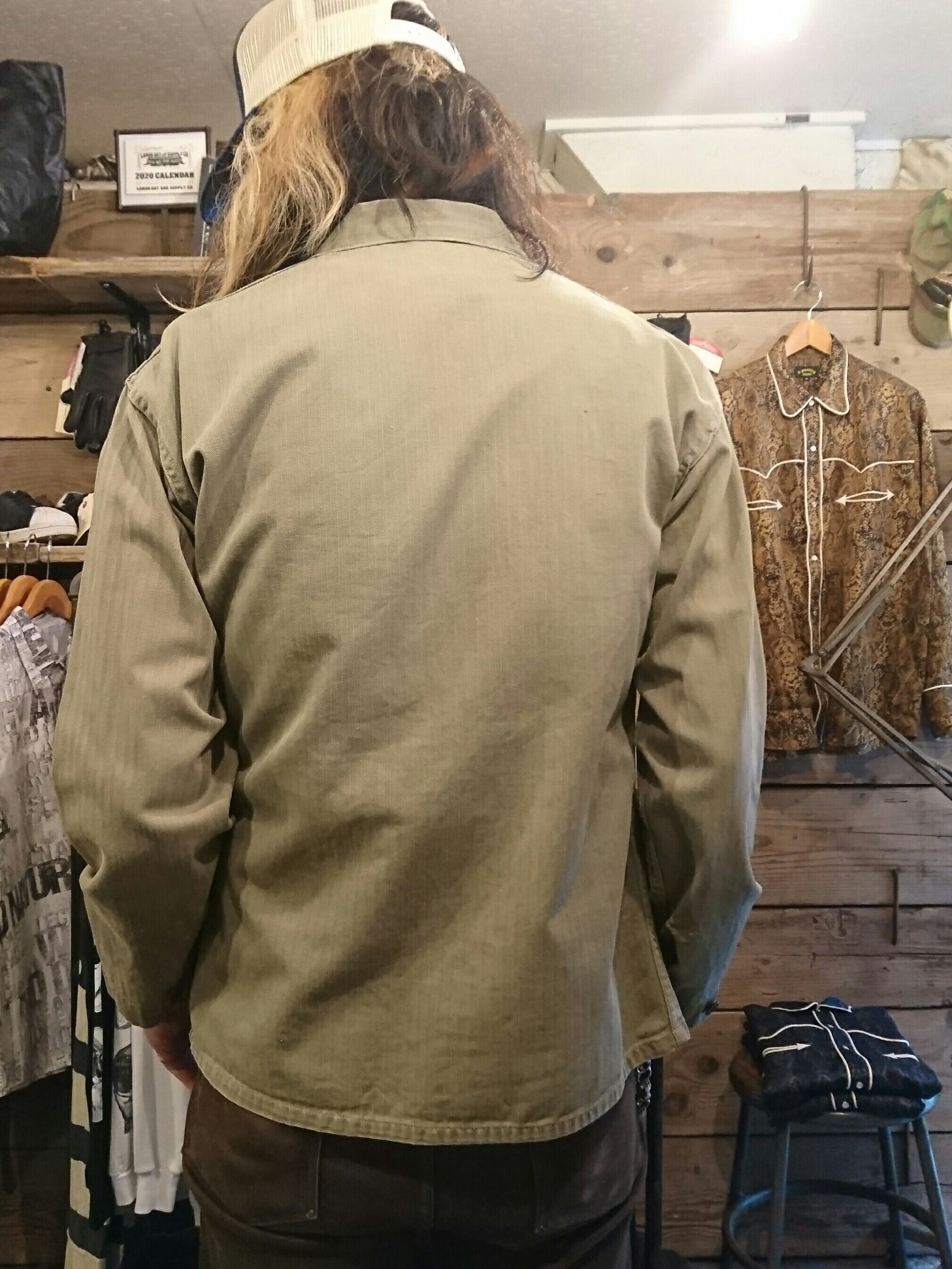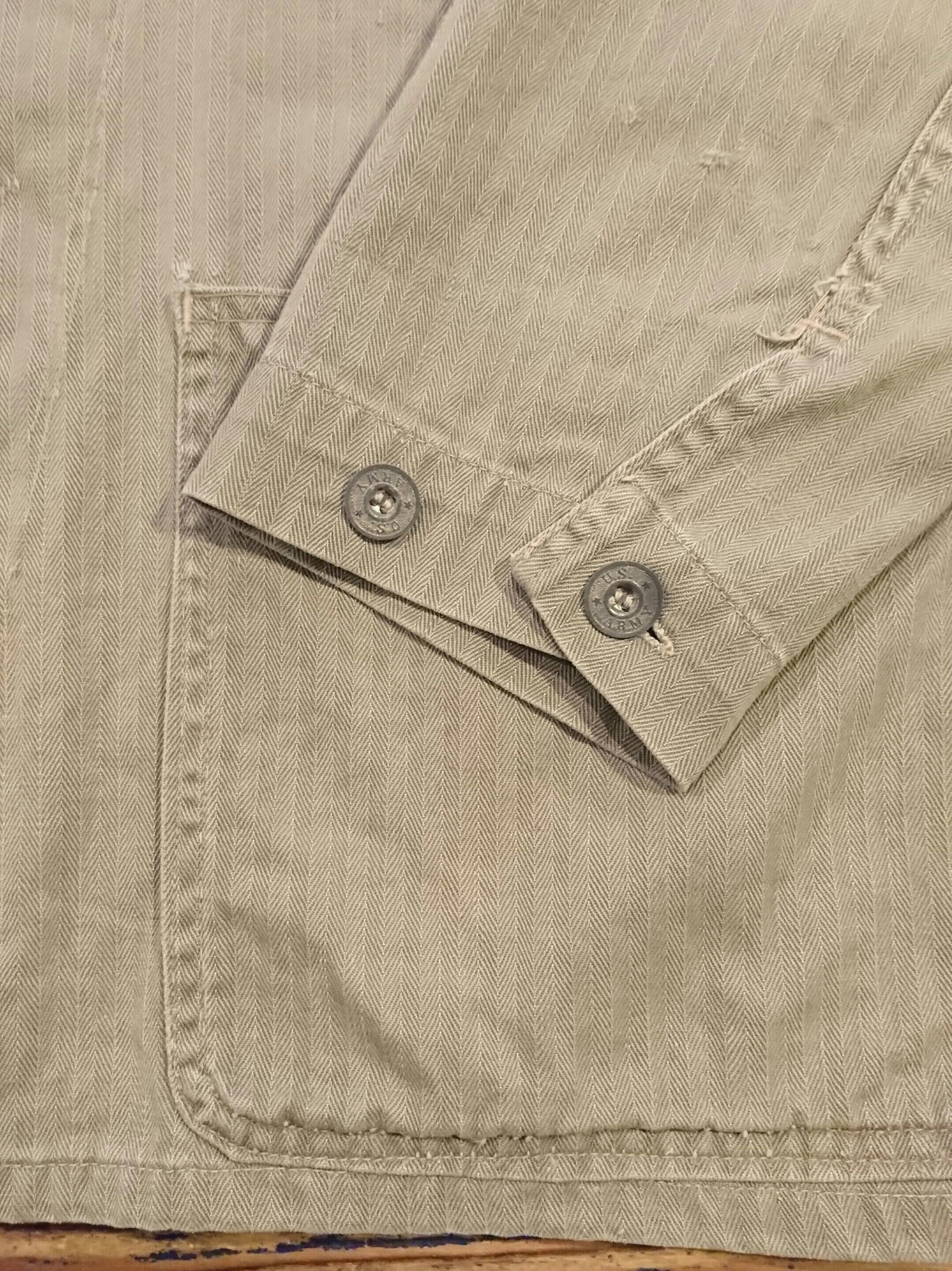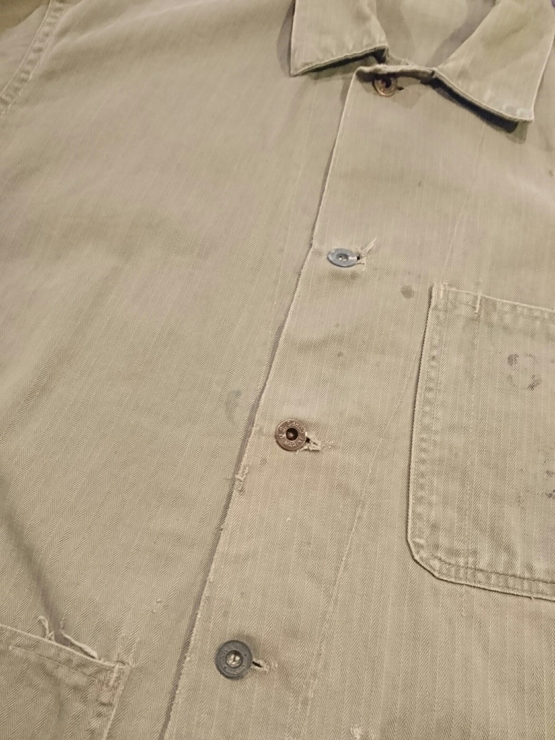 ボタンが何個か欠損し、変わりに同年代US ARMYのメタルボタンが贅沢につけられています。