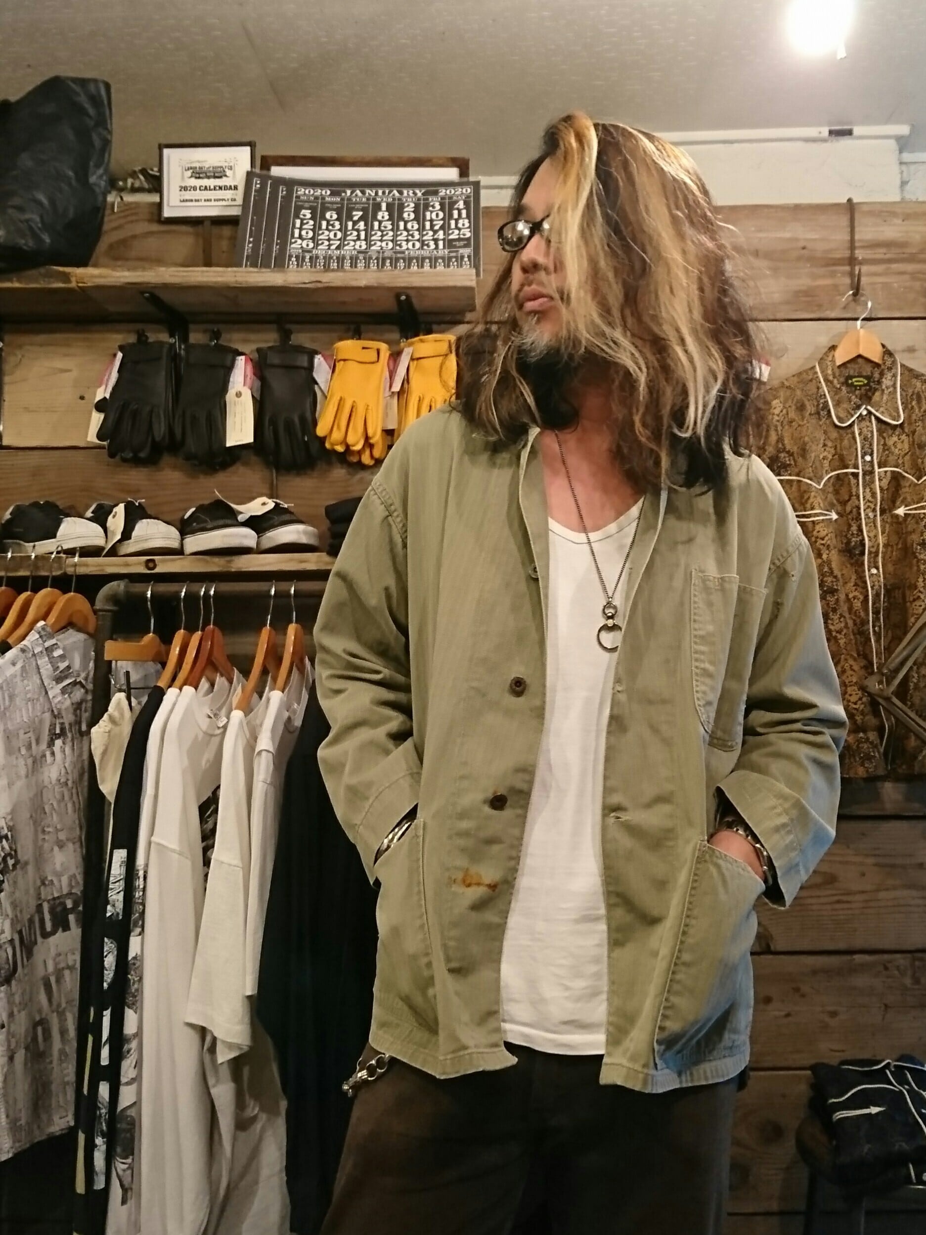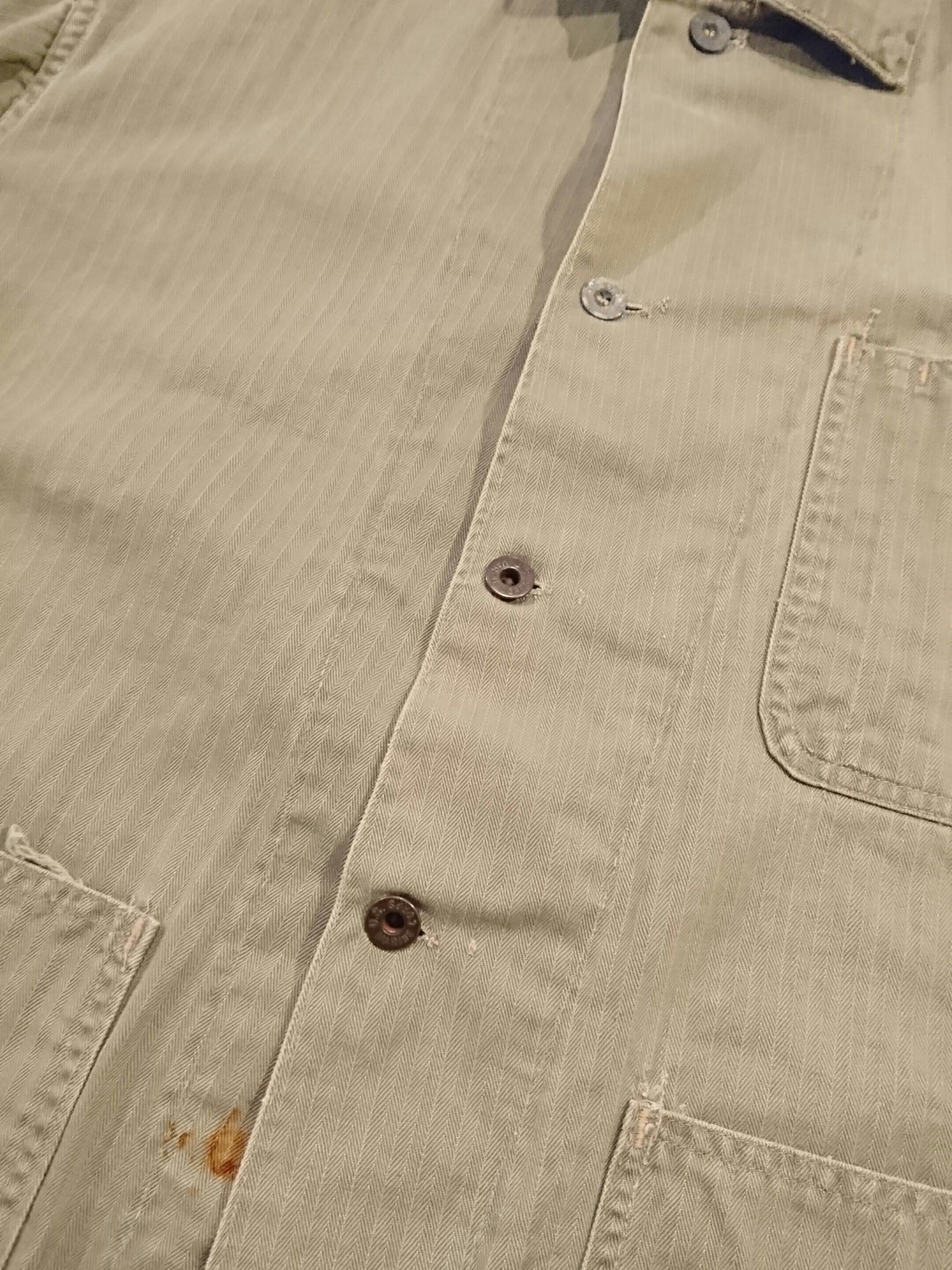 ボタンが何個か欠損し、変わりに同年代US ARMYのメタルボタンが贅沢につけられています。