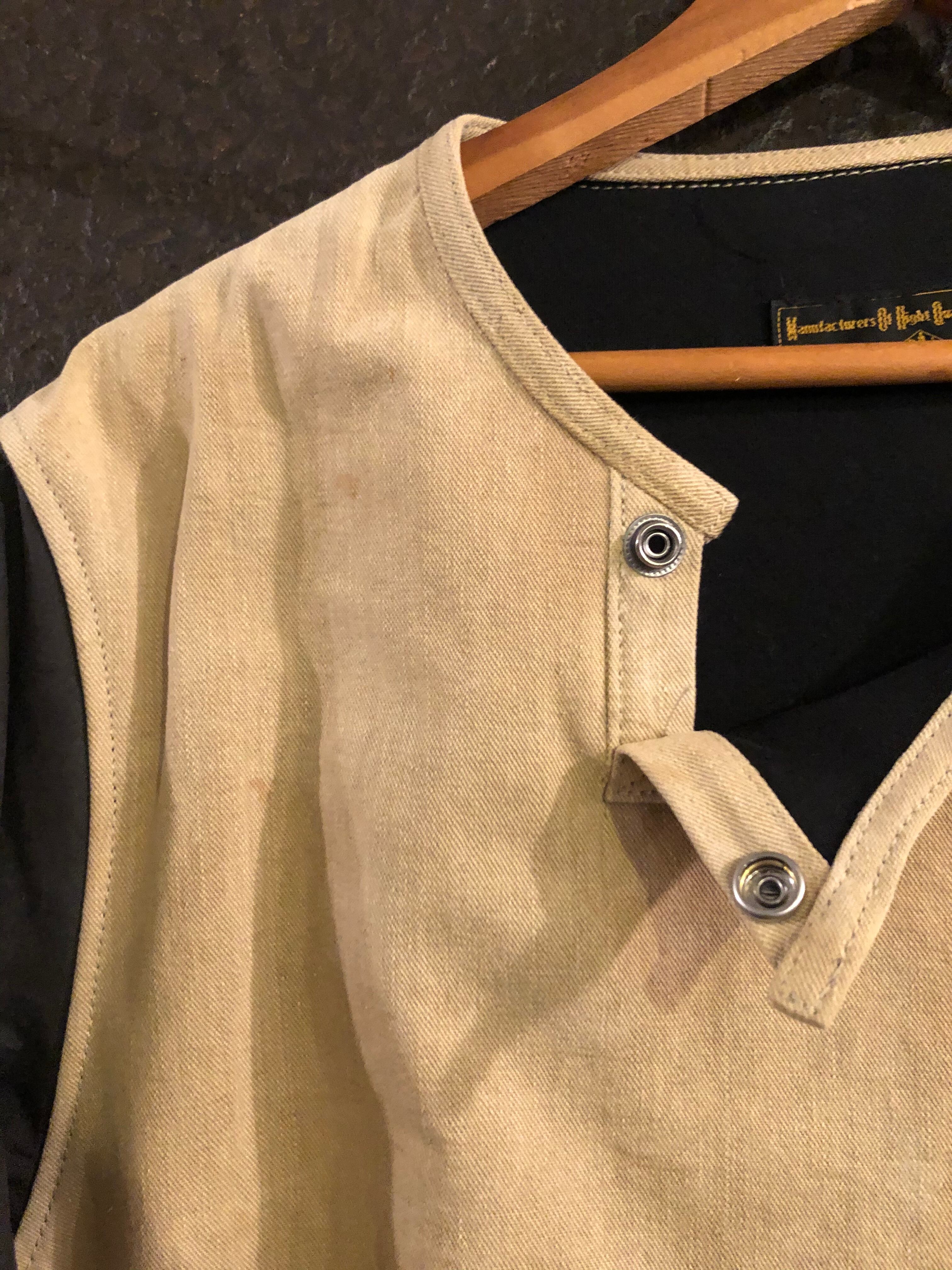 BAAよりヴィンテージファブリックを使用した "MOLT VTG FABRIC SP" 。1930s〜40s US ARMY バラックバッグのステンシル入りを使用したスペシャルバージョン。袖パーツには1940s US ARMYTENTを顔料によって黒染めし使用しております。ヴィンテージ素材を使用しておりますのでピンホールやリペア跡などがございます。ご理解の上ご購入頂けます様お願い申し上げます。