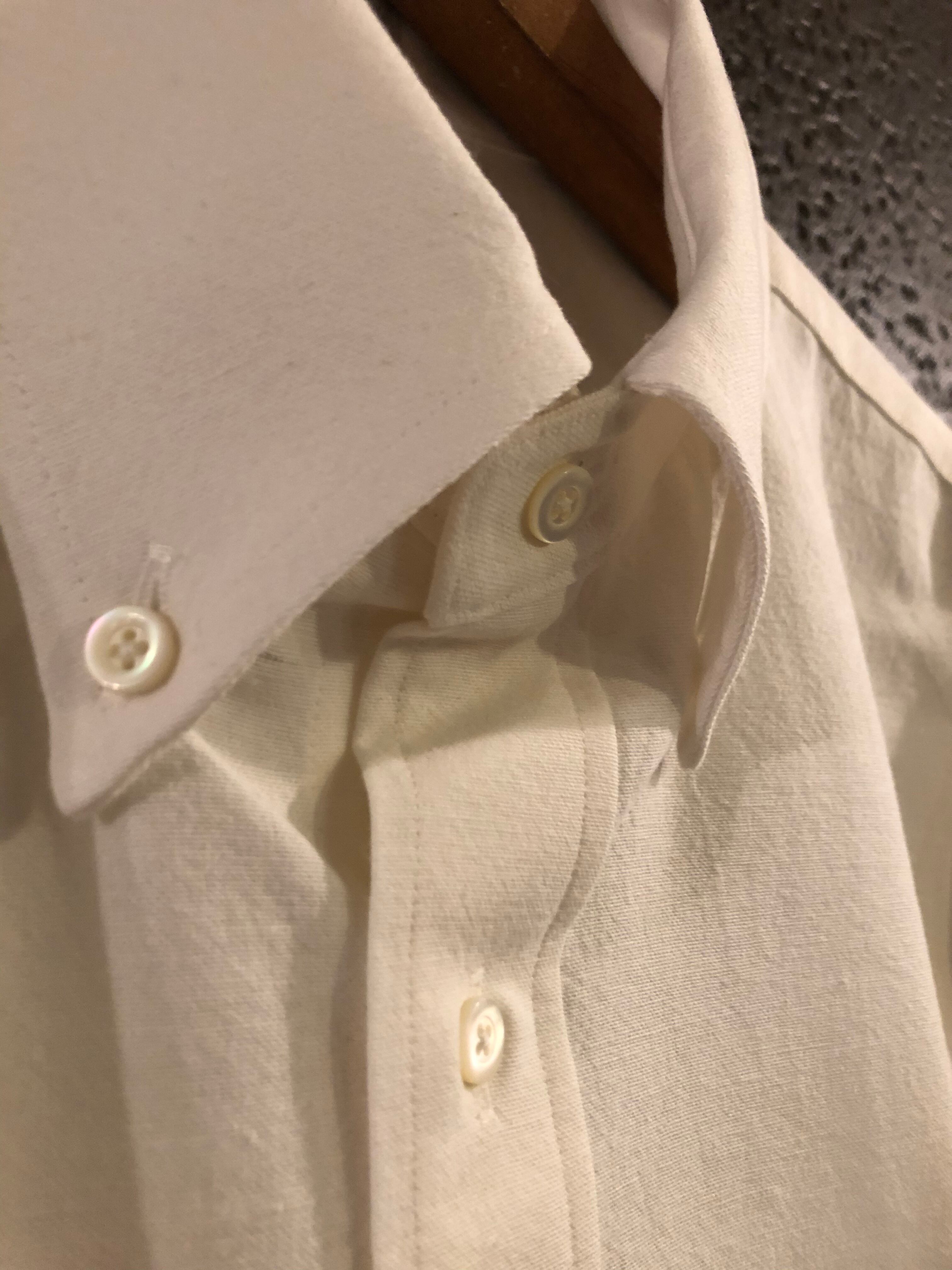 襟全体のスッキリとした仕上あがりや、襟先をボタンで止めた時の剣先のカーブは美しく全体的に綺麗に仕立てられた…でも何かが違う?高級なオックスフォードシャツは今までに沢山見てきましたが、このシャツはそれらと明らかに違う…
