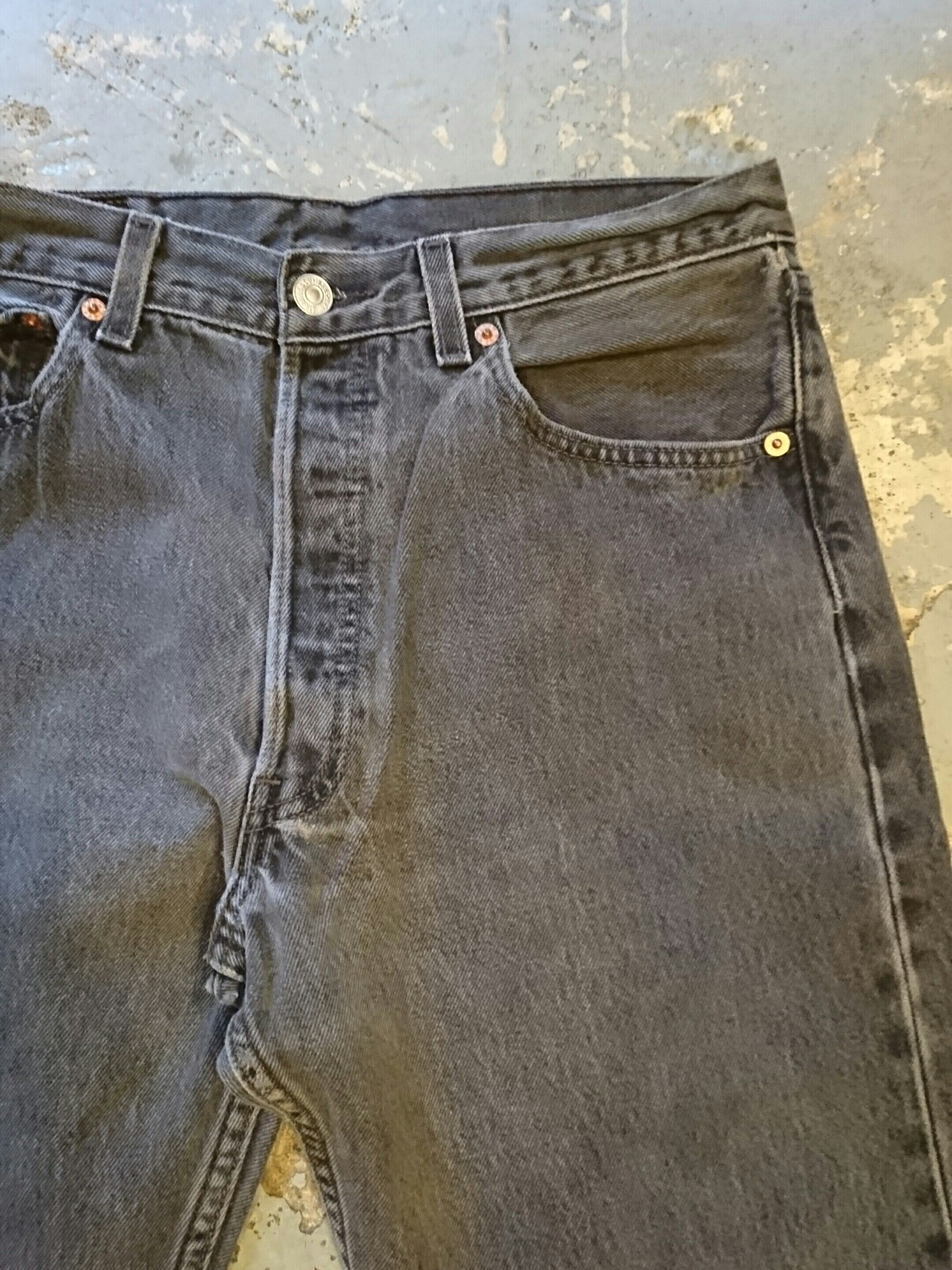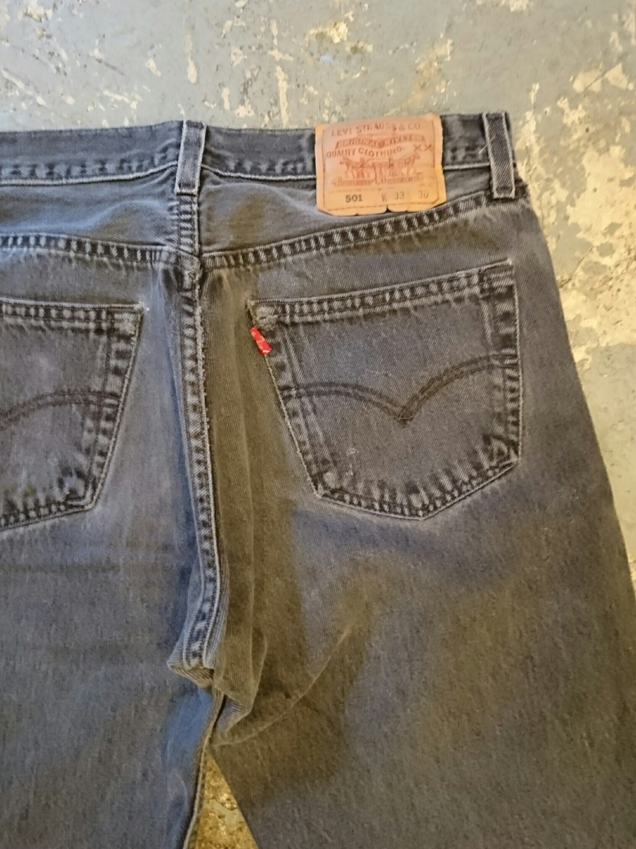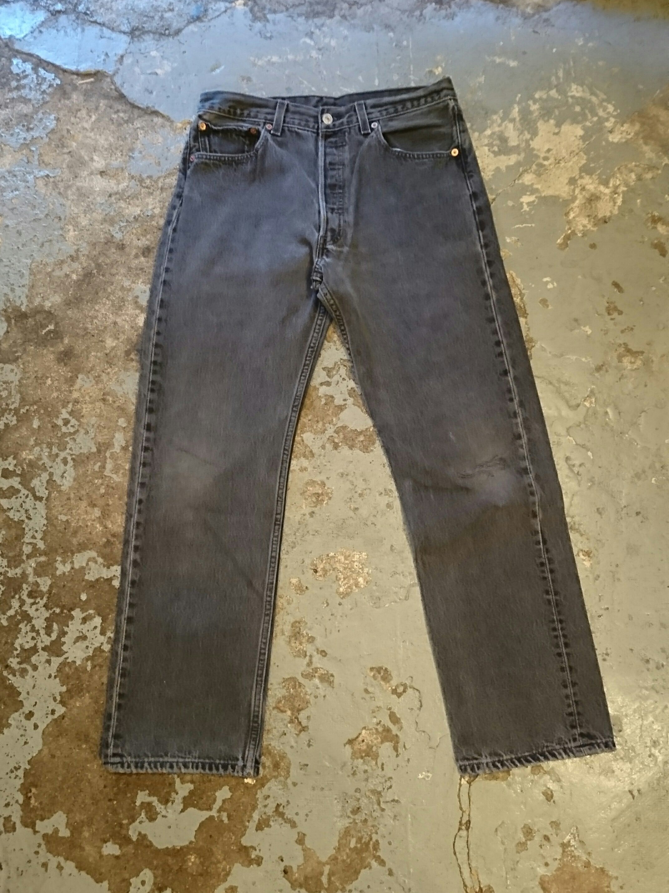 90年代 Levi's 501-0660 ブラック×ブラックになります。ブラックデニムとはまた違い縦糸と横糸ともに黒で編んでるので色落ちも違いがでます。