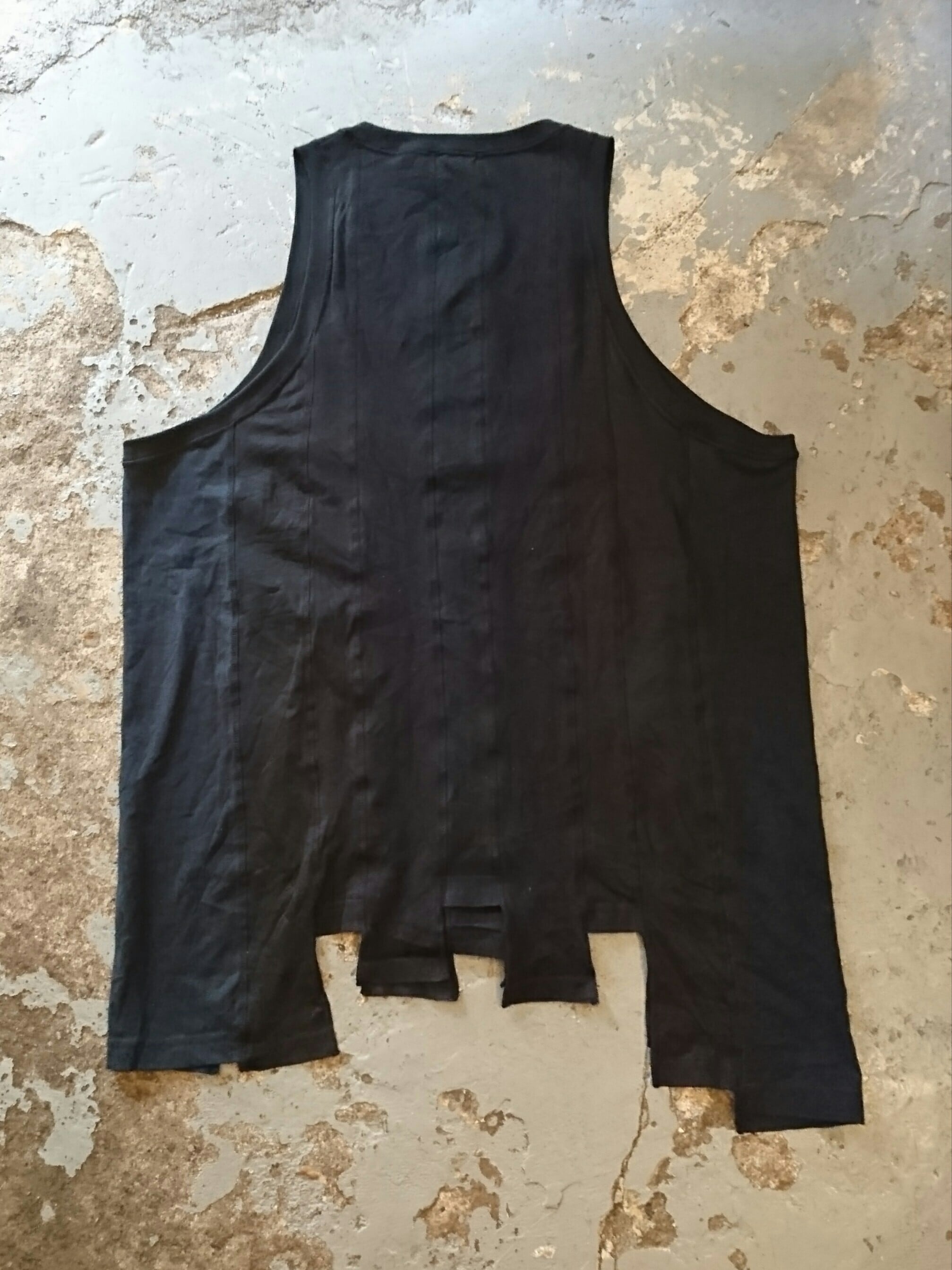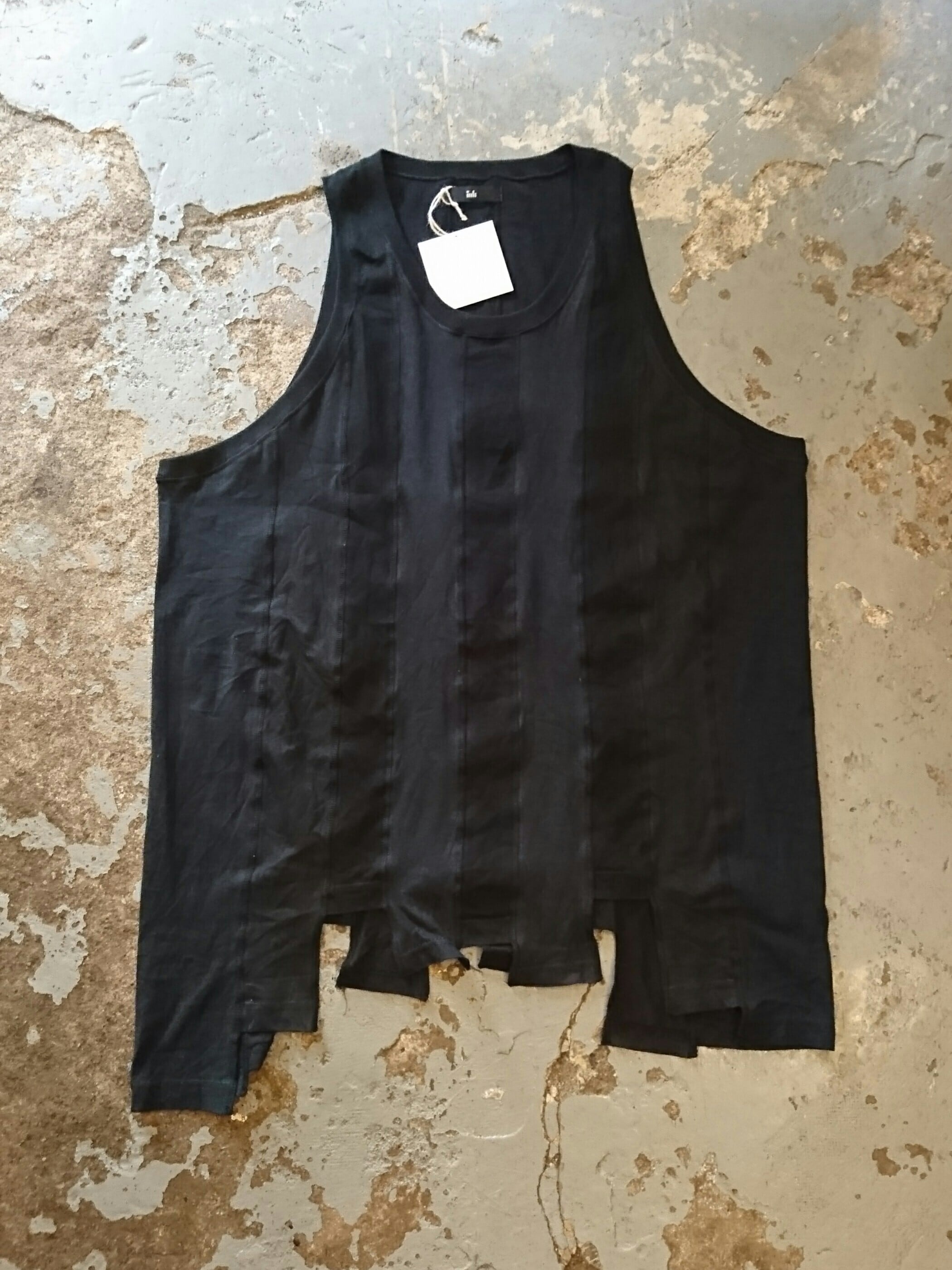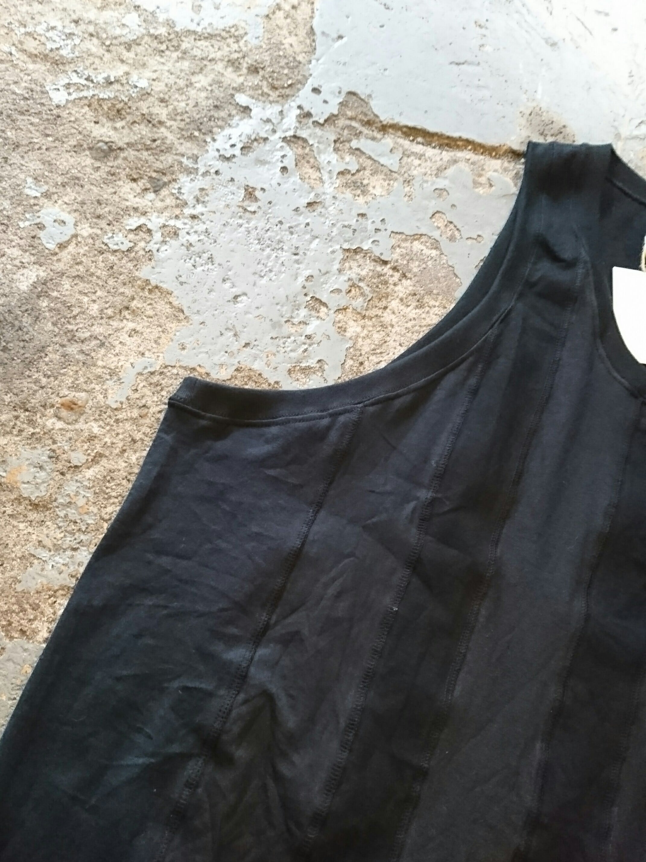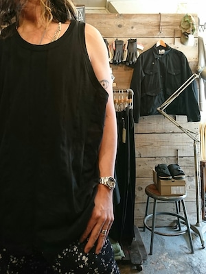 年代問わずTシャツの無地部分を使い、色褪せ、ロッド違い、肉厚に関しても様々なTシャツを選んで、それらの裾だけを活かし縦の切り替えしを繋ぎ合わせ身幅に余裕をもたせた今やinkの定番となった人気の"LOOSE TEE"。そのタンクトップタイプになります。LOOSE TEEと同様、アシンメトリーデザインでルーズなシルエットのタンクトップ。かなりオススメです!