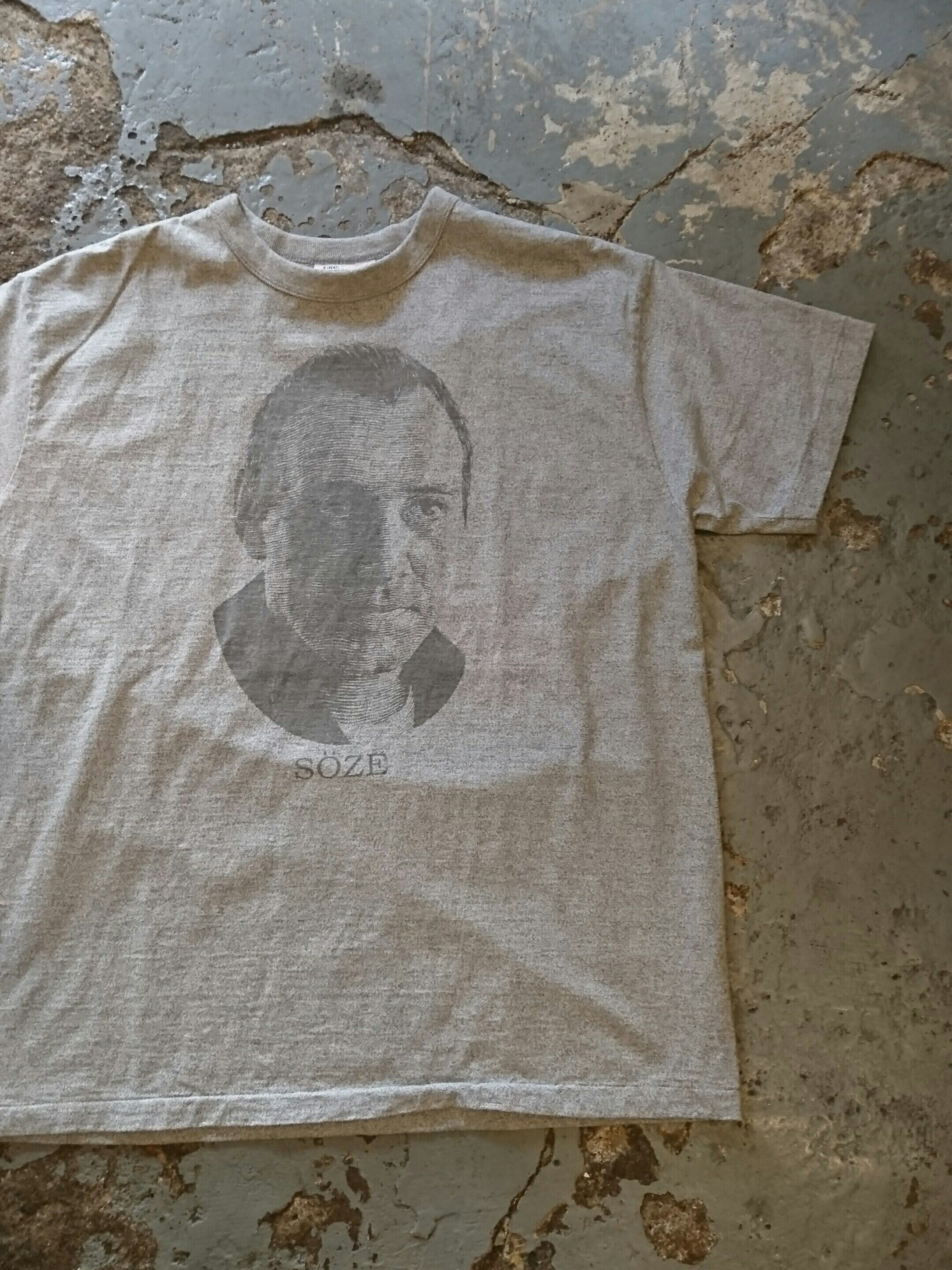 オリジナルTEE。今期、人物シリーズ初Tシャツには90年代のあの有名な映画のキャラクターを採用。「ユ●ジュ●ル●スペ●ツ」であの俳優が演じたカ●ザー●ゼがプリントに。このプリントを見てあっ!と感じた方は通かと。