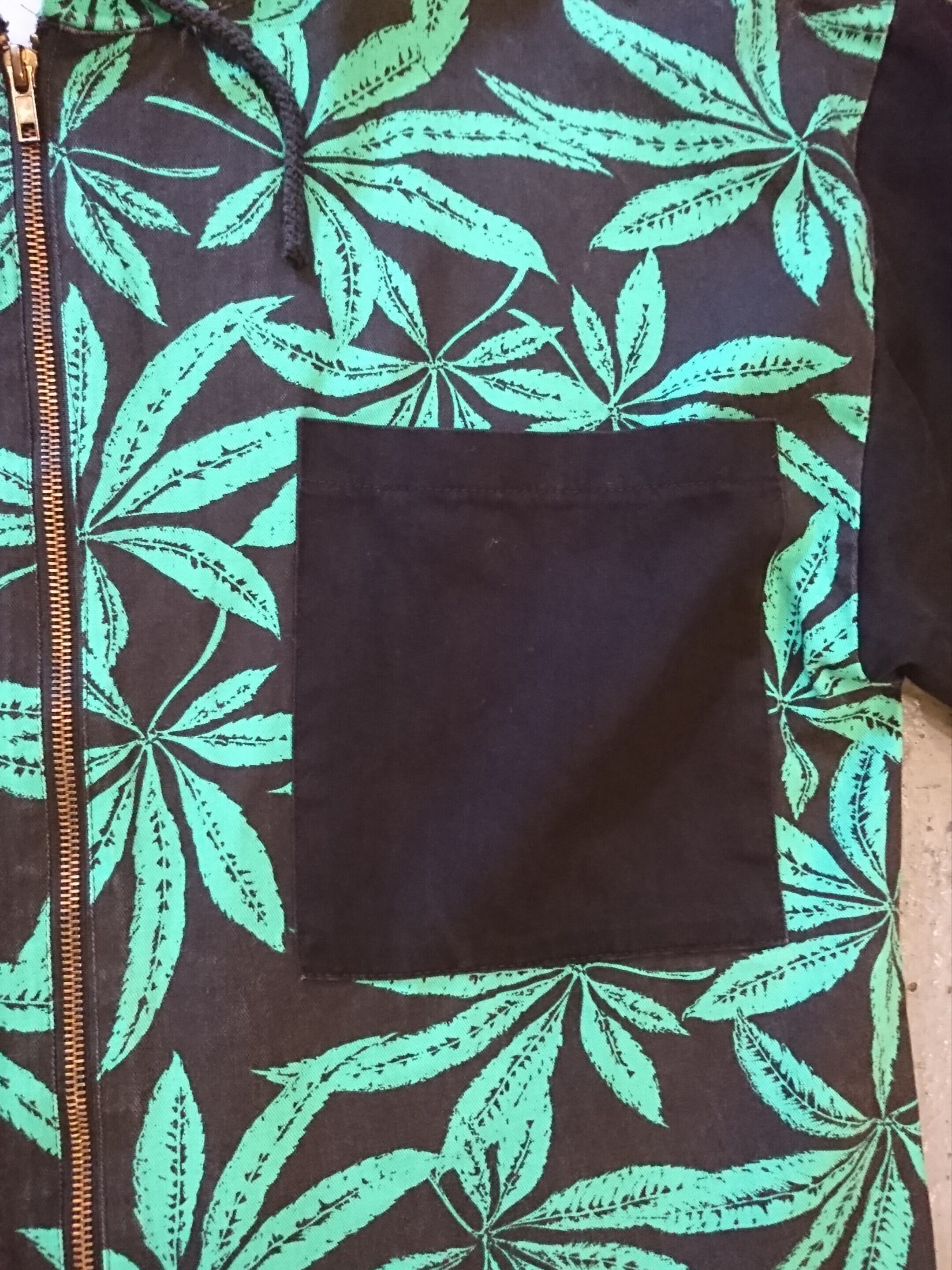 80〜90年代のマリファナ柄のパーカーになります。半袖でショート丈のデザインでレイヤードも