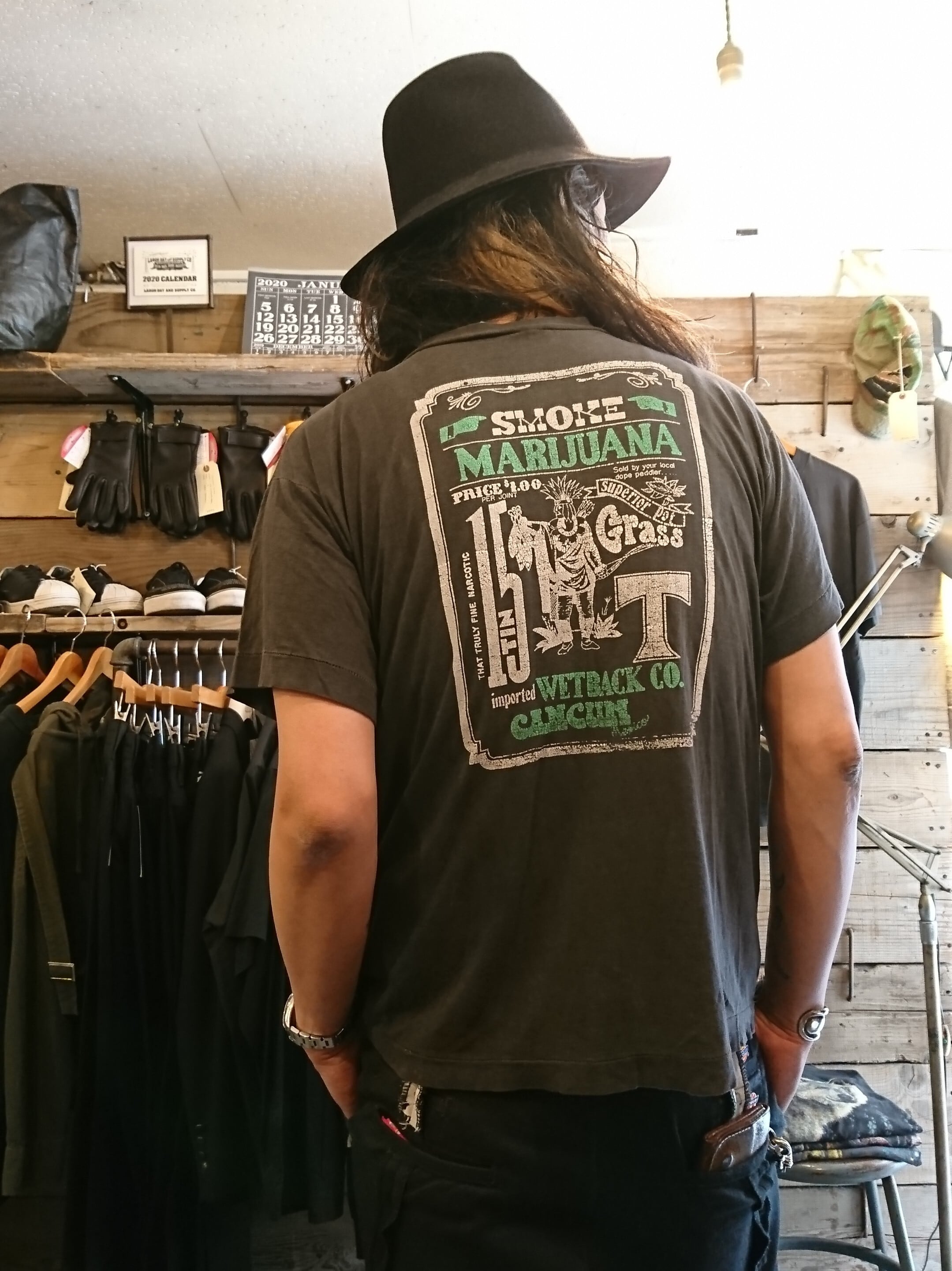 当時、マリファナを製造してた会社のものでしょうか。背中と胸元にプリントがはいります。