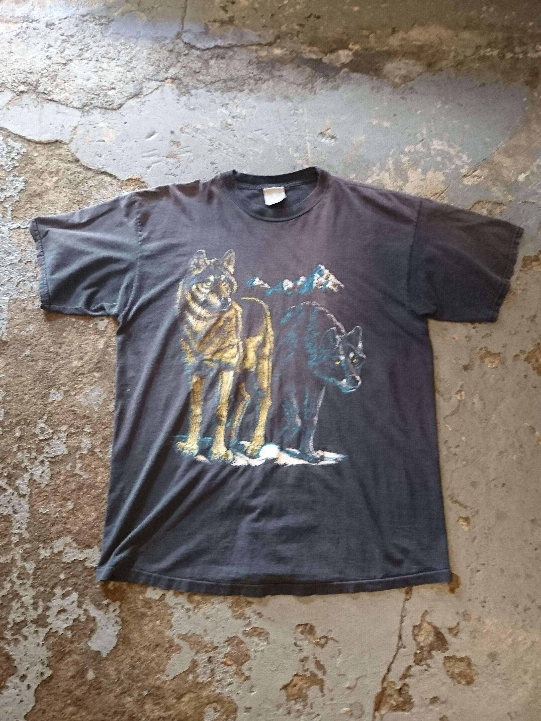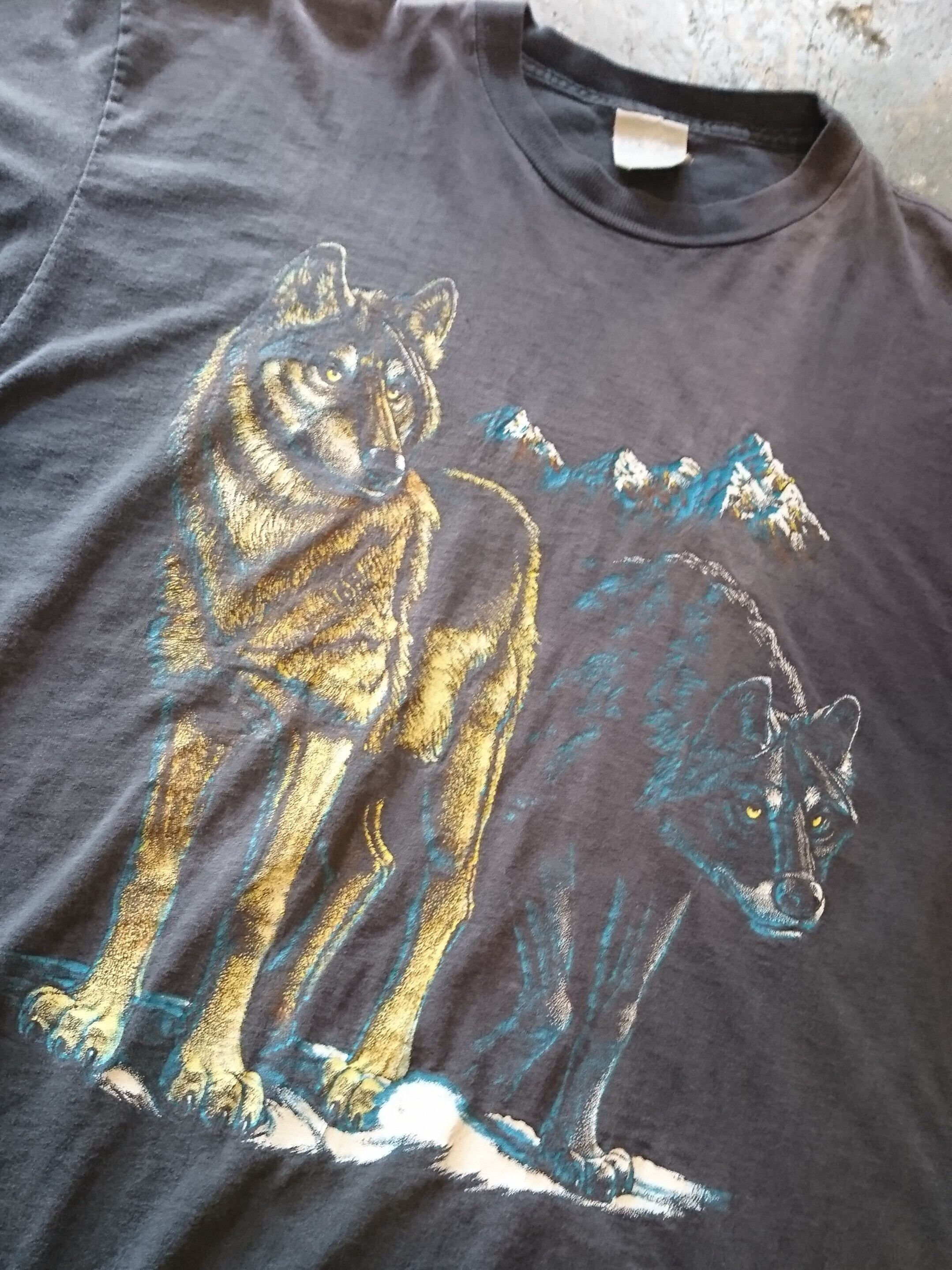 数ある動物のプリントTシャツ。何故狼のプリント?って思う方もいてるかもしれませんが単純に格好良いからです。何百枚あるTシャツのなかから