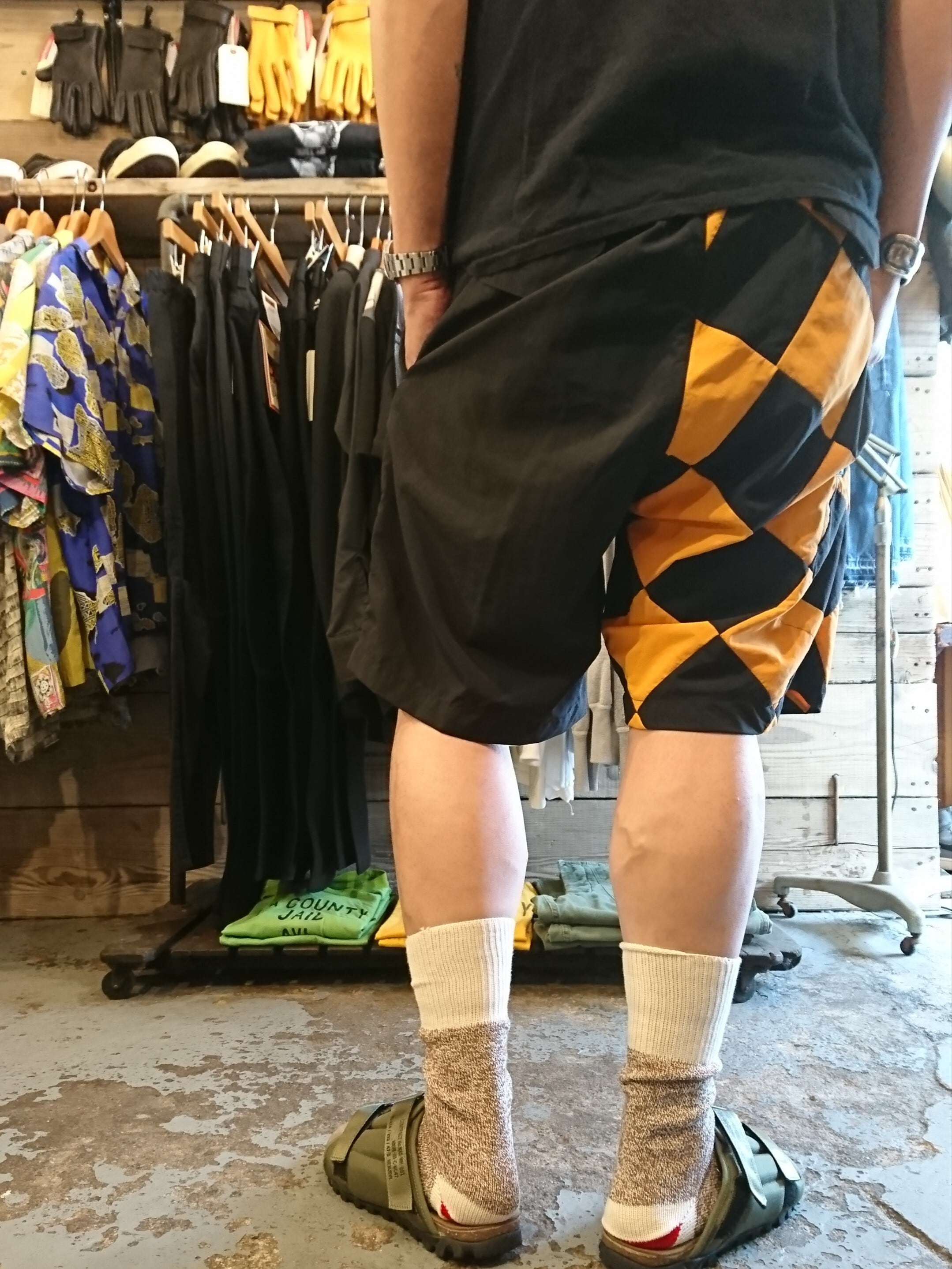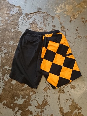 G-1 LINECREWMAN JACKETのダイヤ柄をパッチワークで表現。水陸両用での使用が可能なバイカラーショーツ。吸湿速乾性や摩耗性が高く、色褪せやシワにもなりにくいDUPONT社が開発した高機能素材SUPPLEXを使用しNEXUSⅦ.オリジナルのシールドポケットを採用したショーツです。