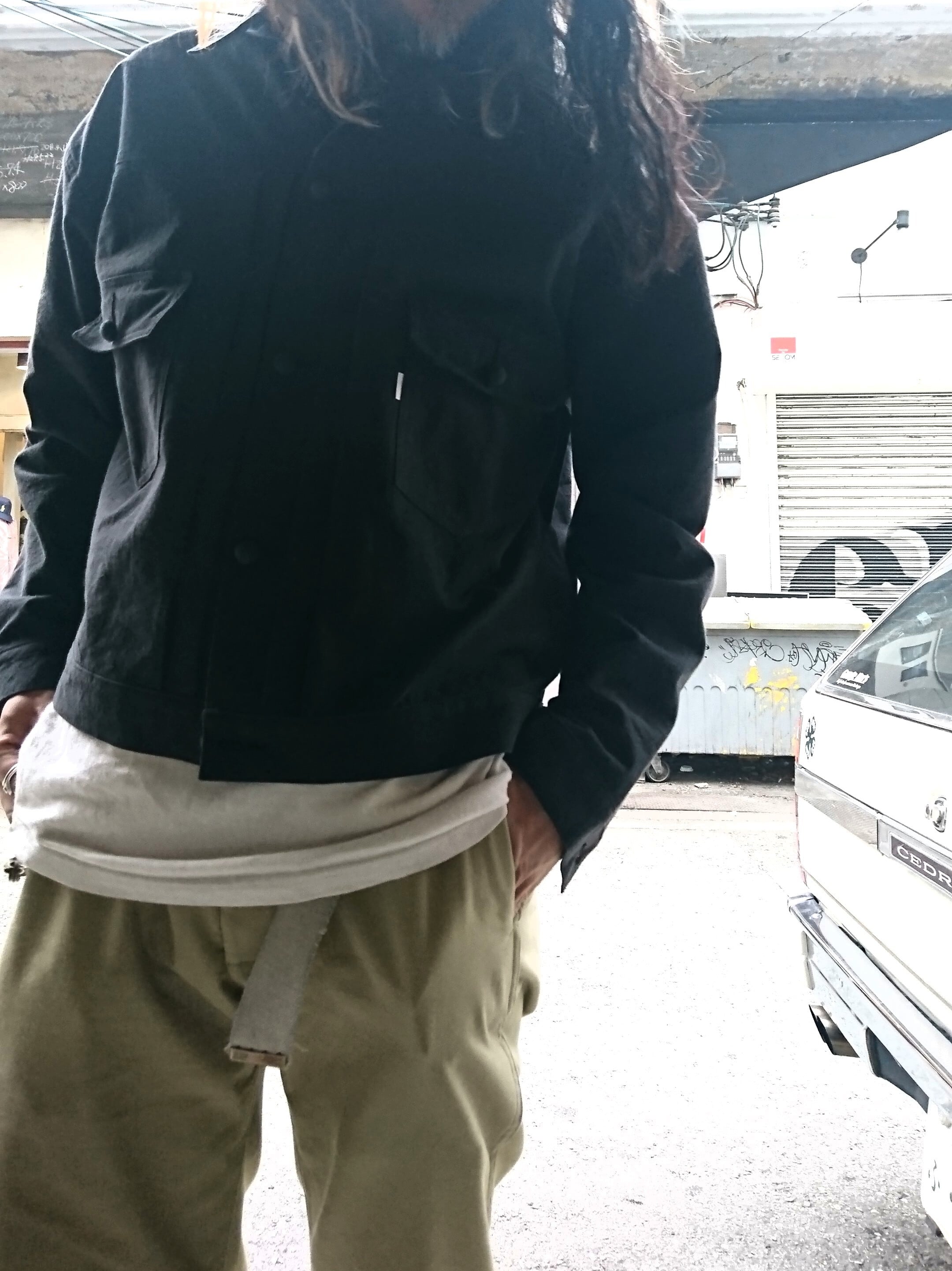 フロントプリーツタイプのワークウェア。先に発売された120双ブロード生地のタイプとは異なりテント生地の質感は程よい張りがあり着ていく度、洗っていく度に色褪せし独自の雰囲気をみせていくのも魅力の1つ。