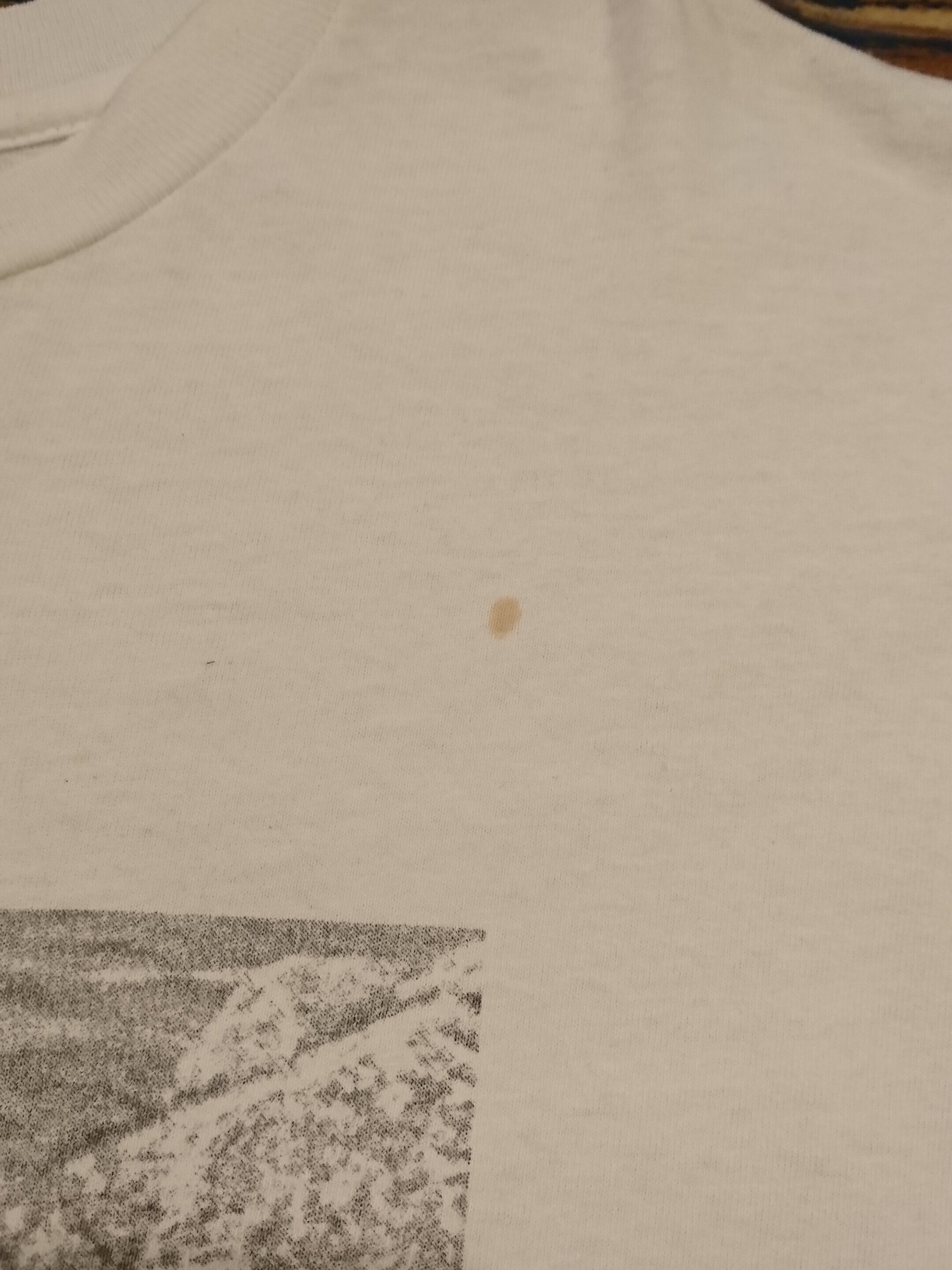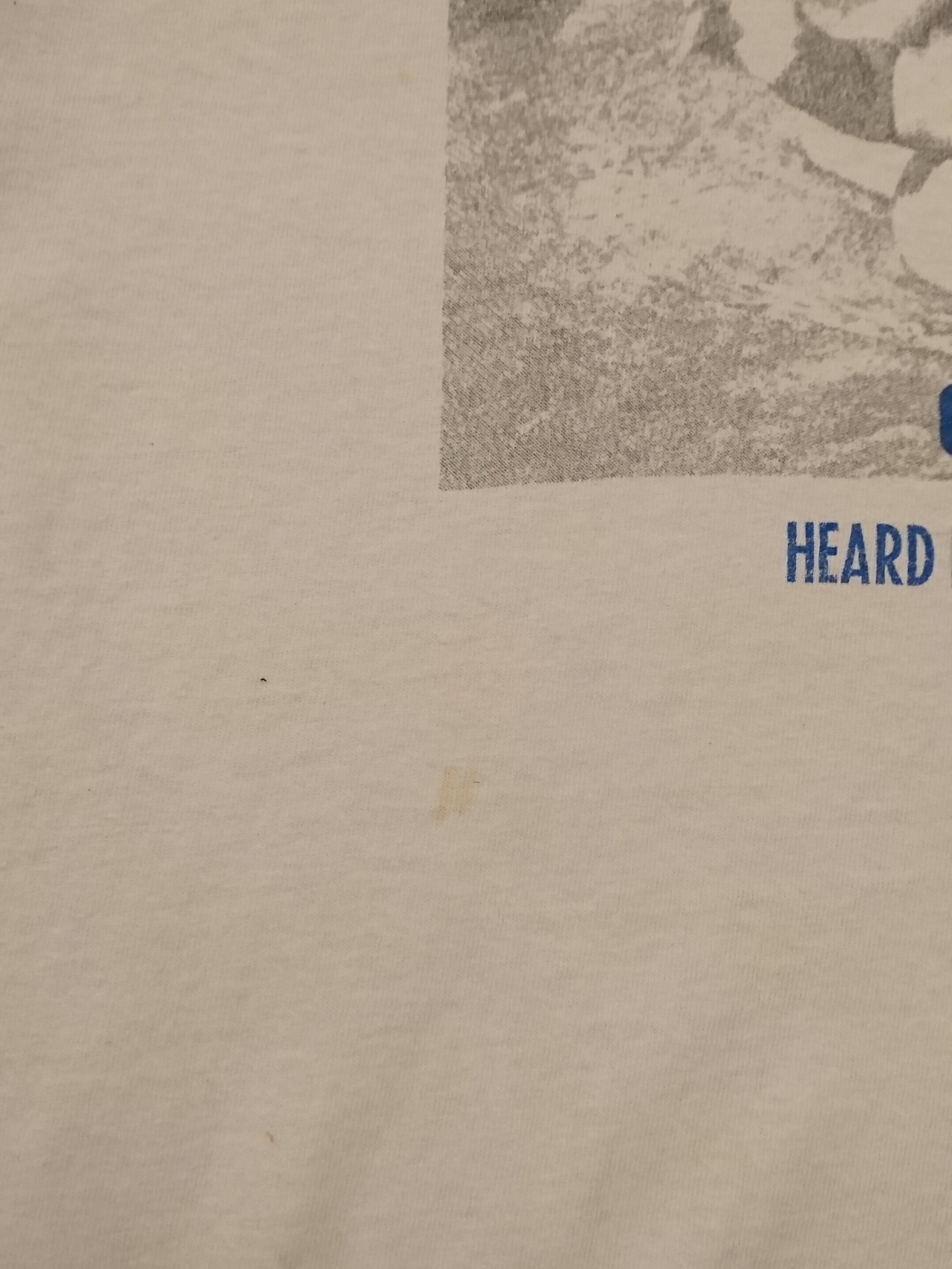 80〜90年代 フォトプリントのTシャツになります。赤ちゃんが浜辺でサングラスをかけてるプリント。GET WET!= みんなで濡れよう!水に濡れるか何に濡れるか。シンプルにイケてるTシャツです。フロントに数ヶ所うっすらと染みがあります(写真参照)。