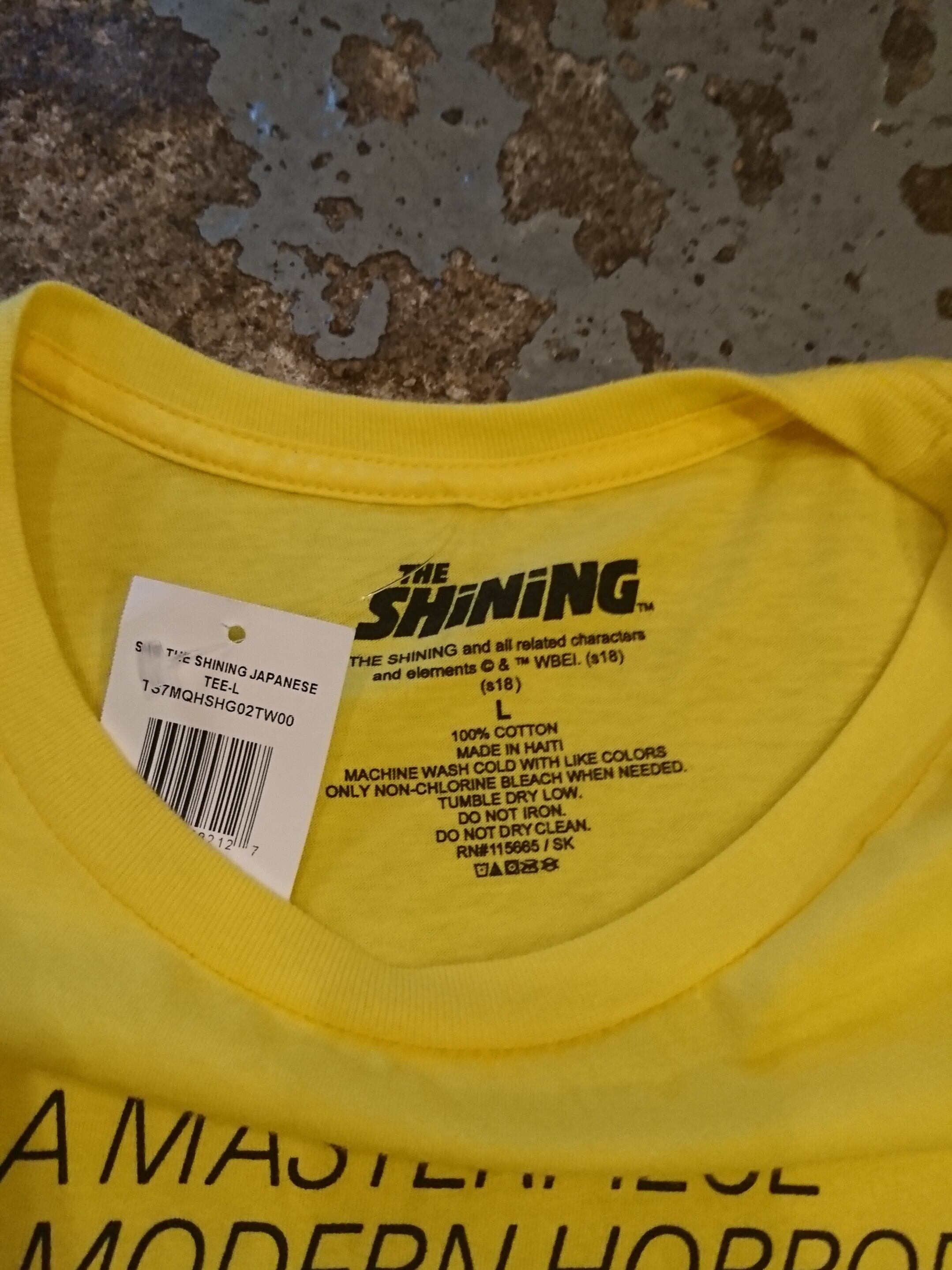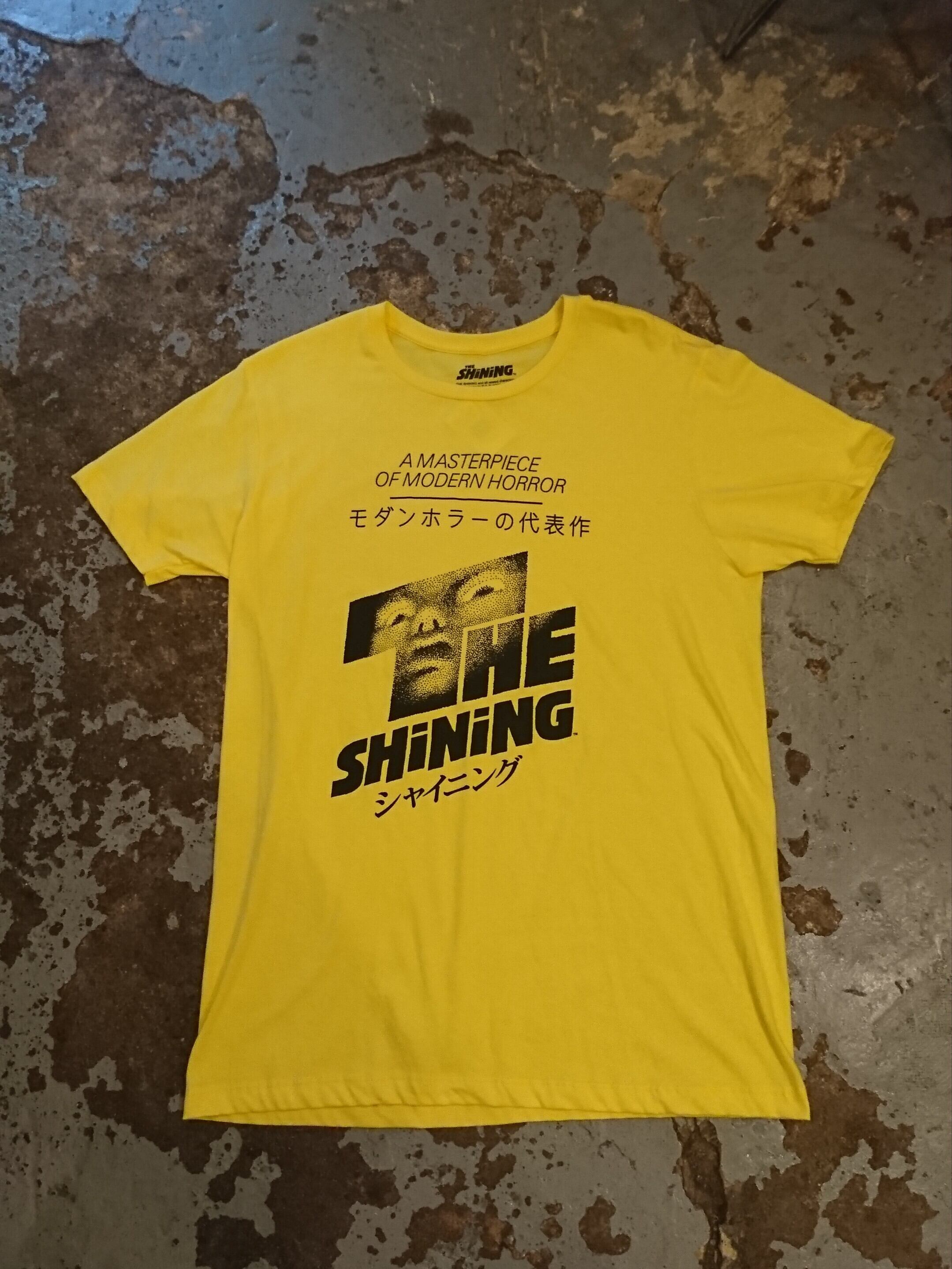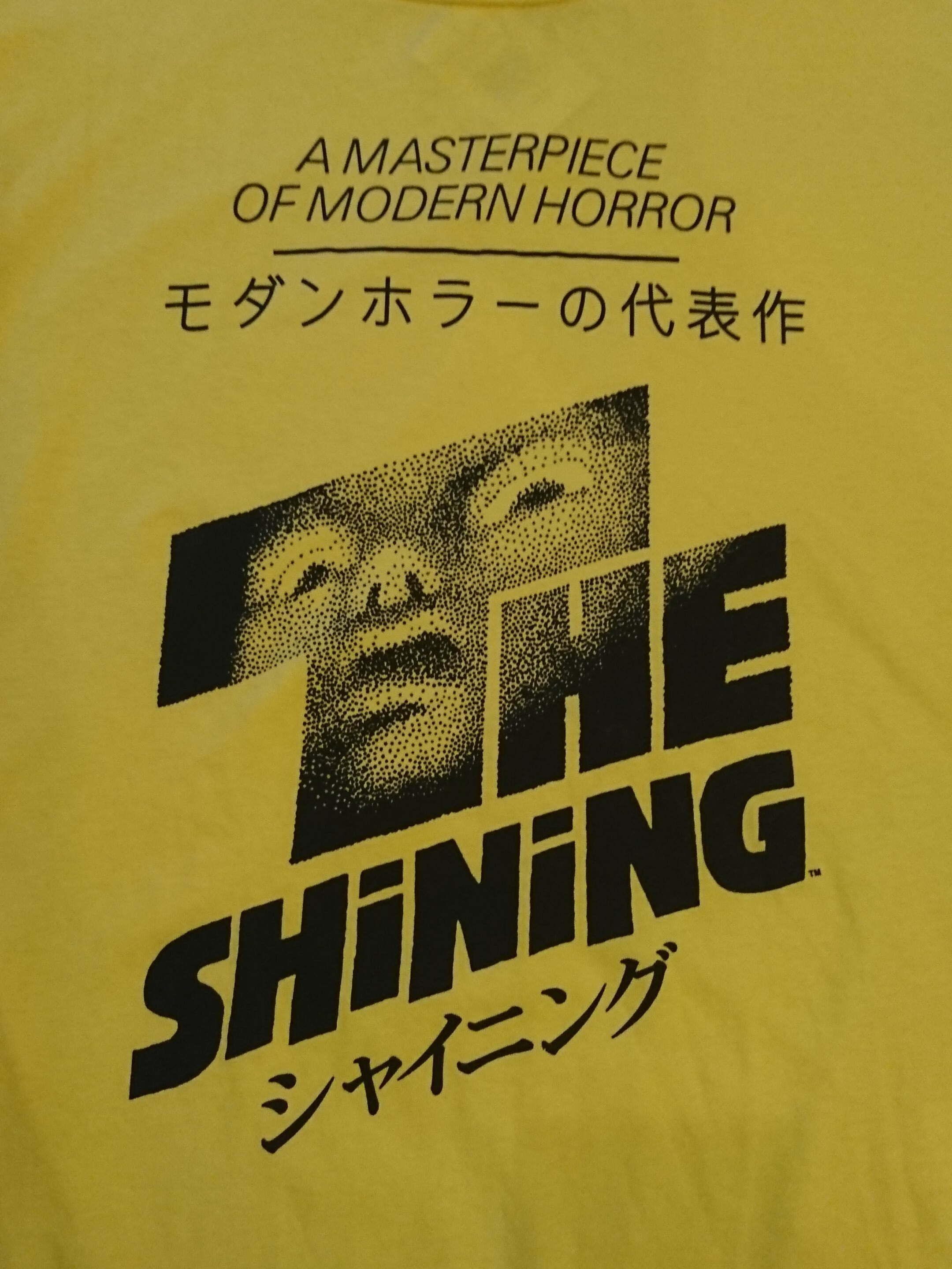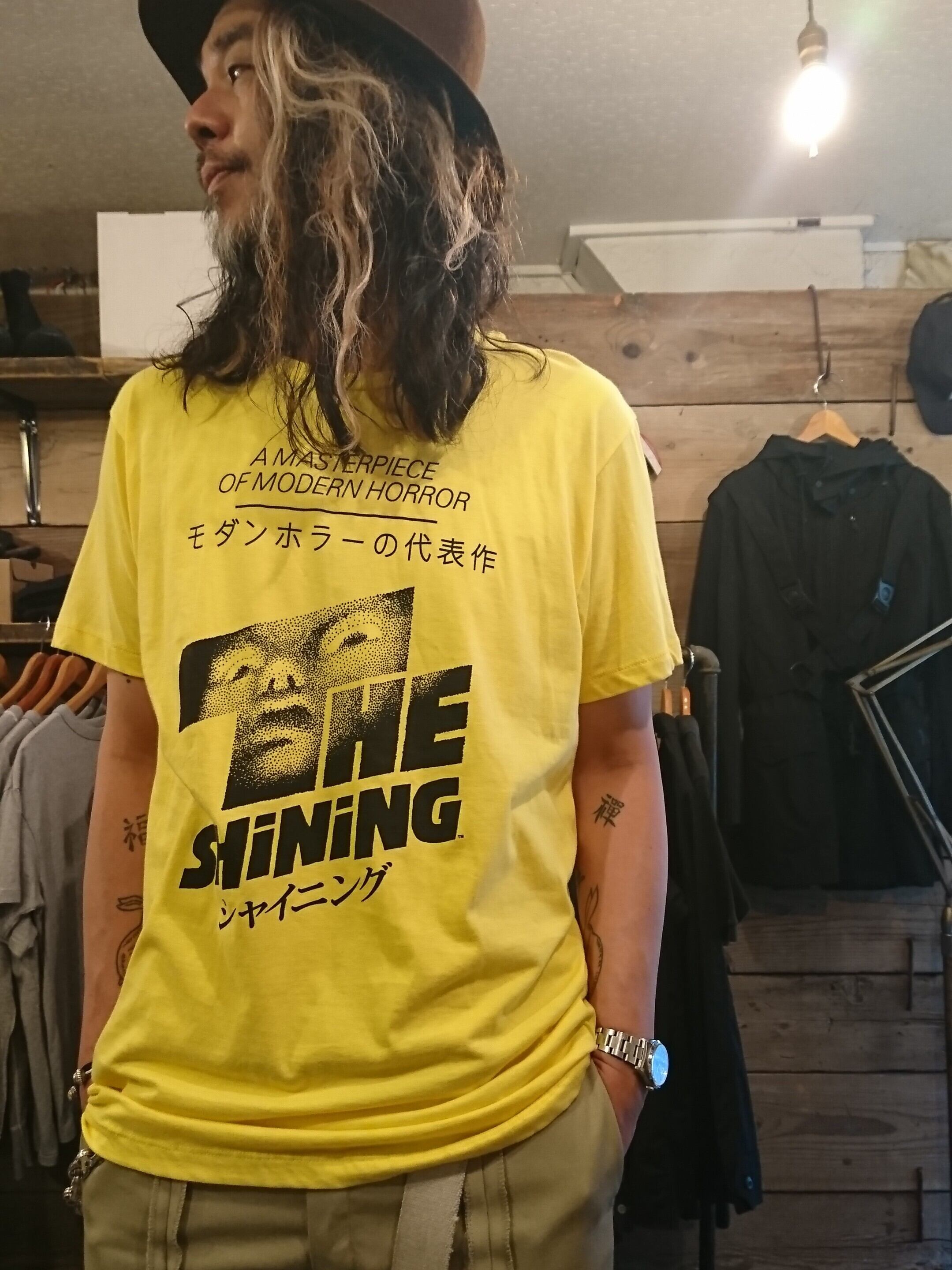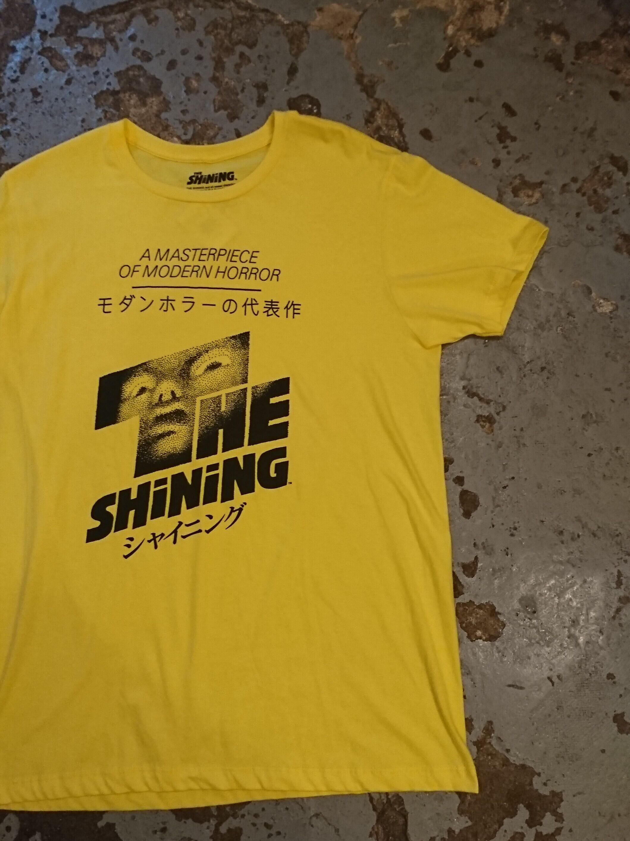 古くないですがプリントがイケてるシャイニングのTシャツ。イエローボディに黒プリント。