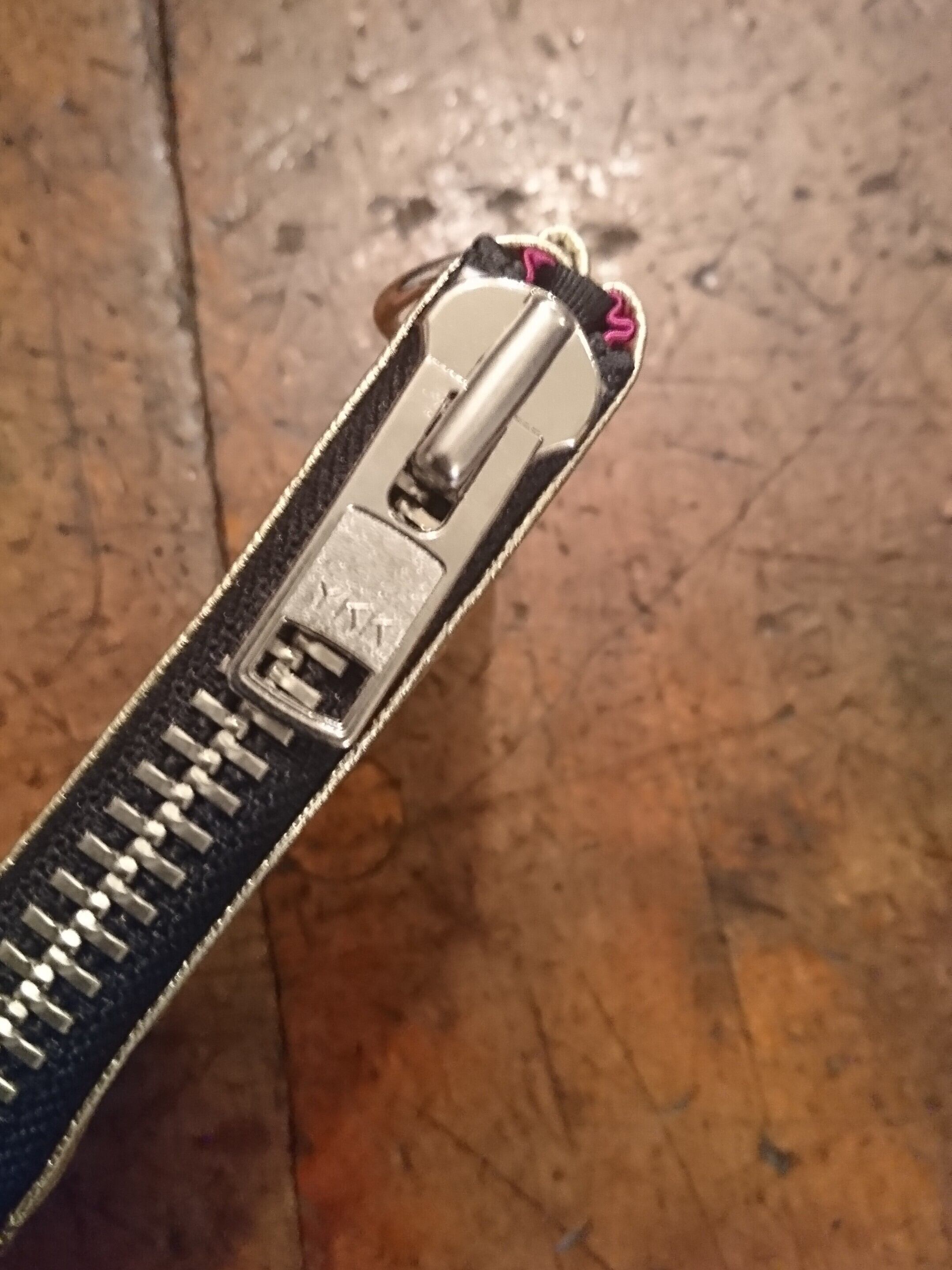 ライダースを思わせる10号ファスナーにDカンを