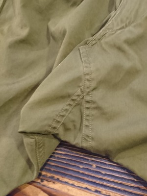 サルエルパンツにリメイクしたRebuild by Needles "BDU SARROUEL PANTS"。ウエスト部分はドローコードが入ってるので絞りが可能。本来オーバーパンツの為、使用出来なかったハンドポケットが裏地がついてるので実用的に使っていただけます。コンディションも良くて、目立った汚れや傷等はありません。女性の方にもオススメ。サイズが合う方いかがでしょうか。