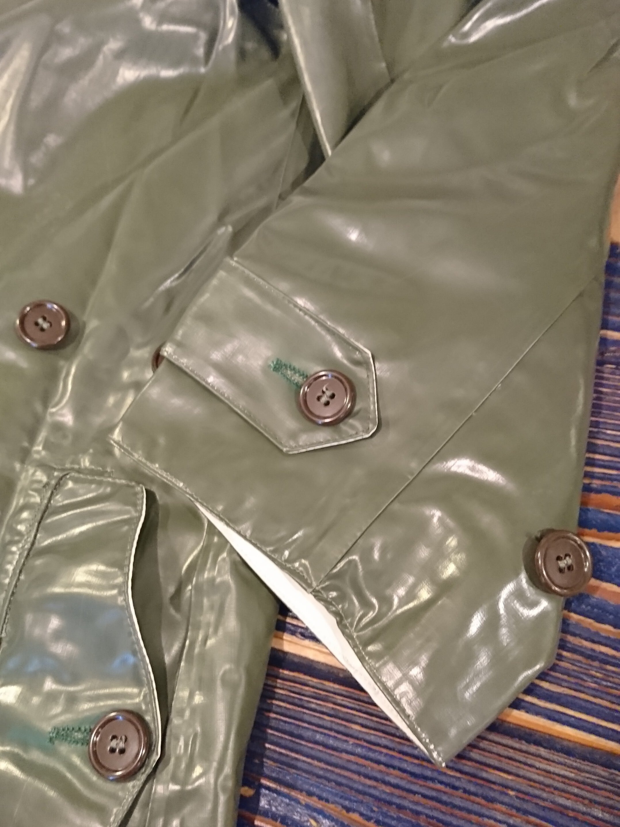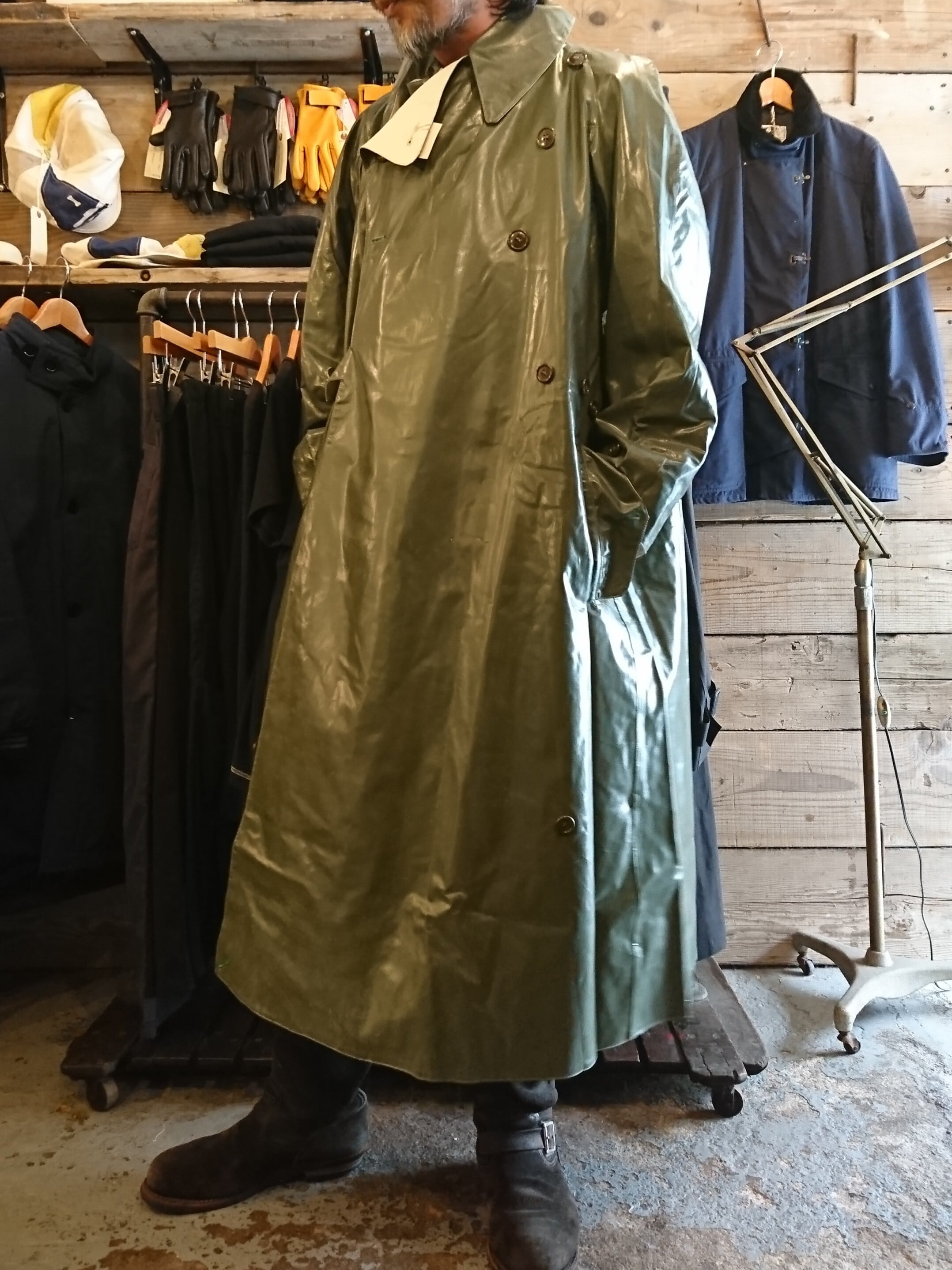 60s "FRENCH MILITARY REVERSIBLE RUBBER RAIN COAT" DEAD STOCK