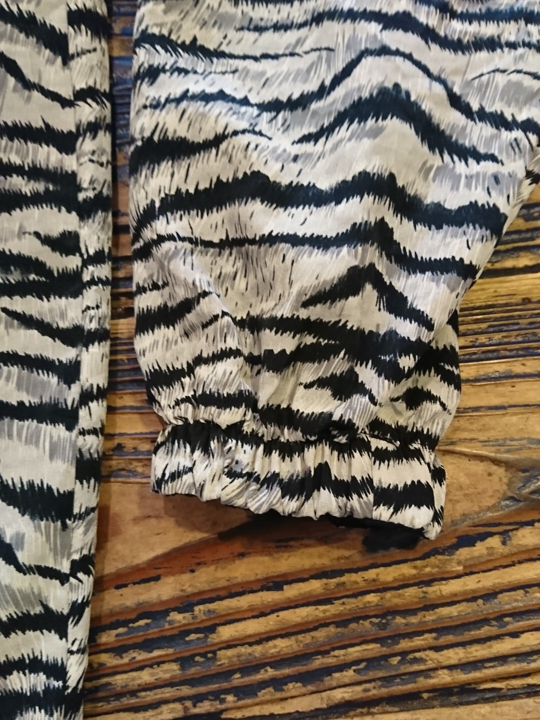 フロントは回転ジッパーで上まで閉めるとジャージを着てるかのようにストリートな雰囲気にも。古くはありませんが着方で遊べる1着です。