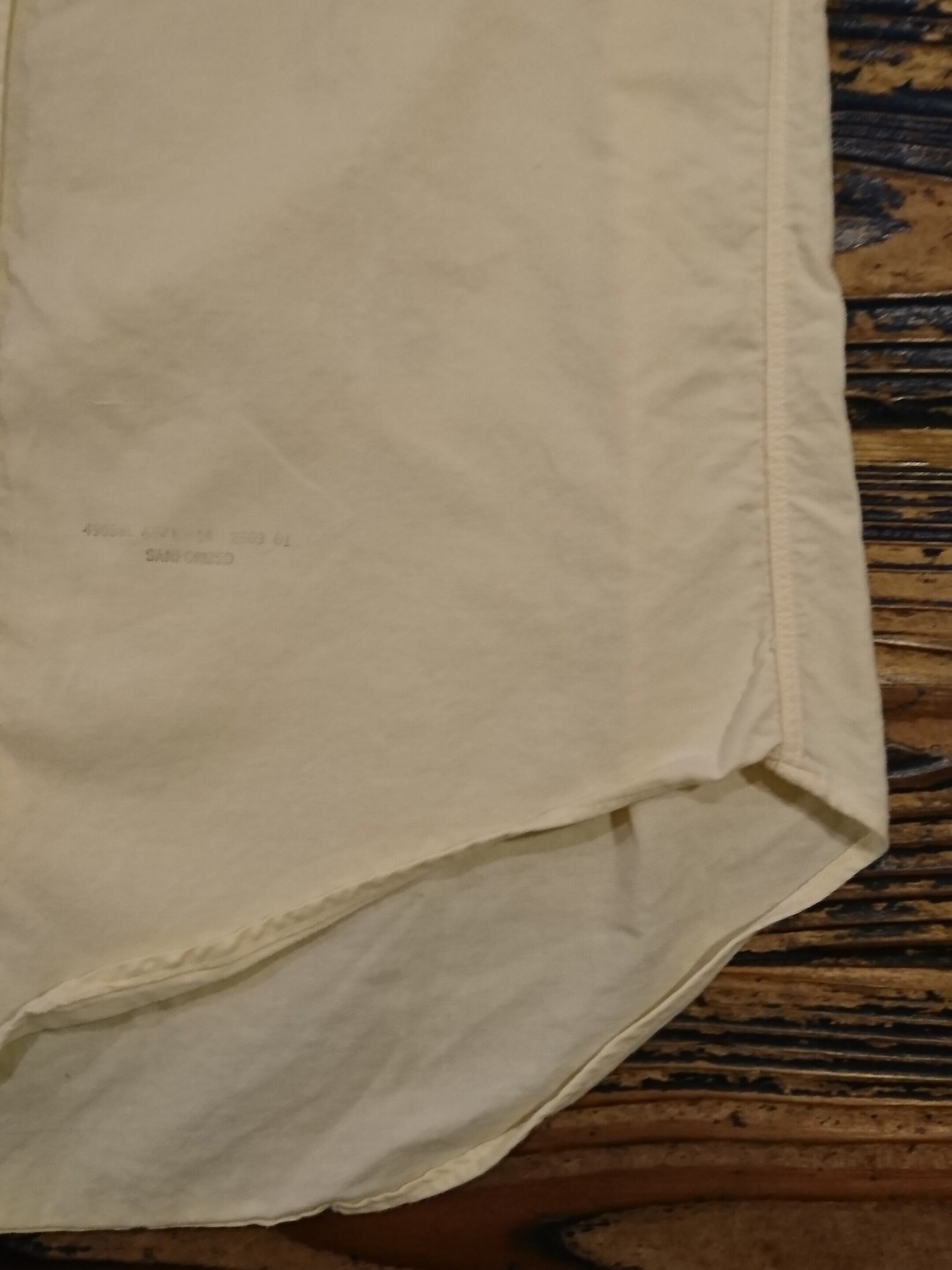 惹かれるポイント。カラーはホワイトではなく、薄いイエローになります。左肩にうっすらと汚れがありますが着用に問題はありません。