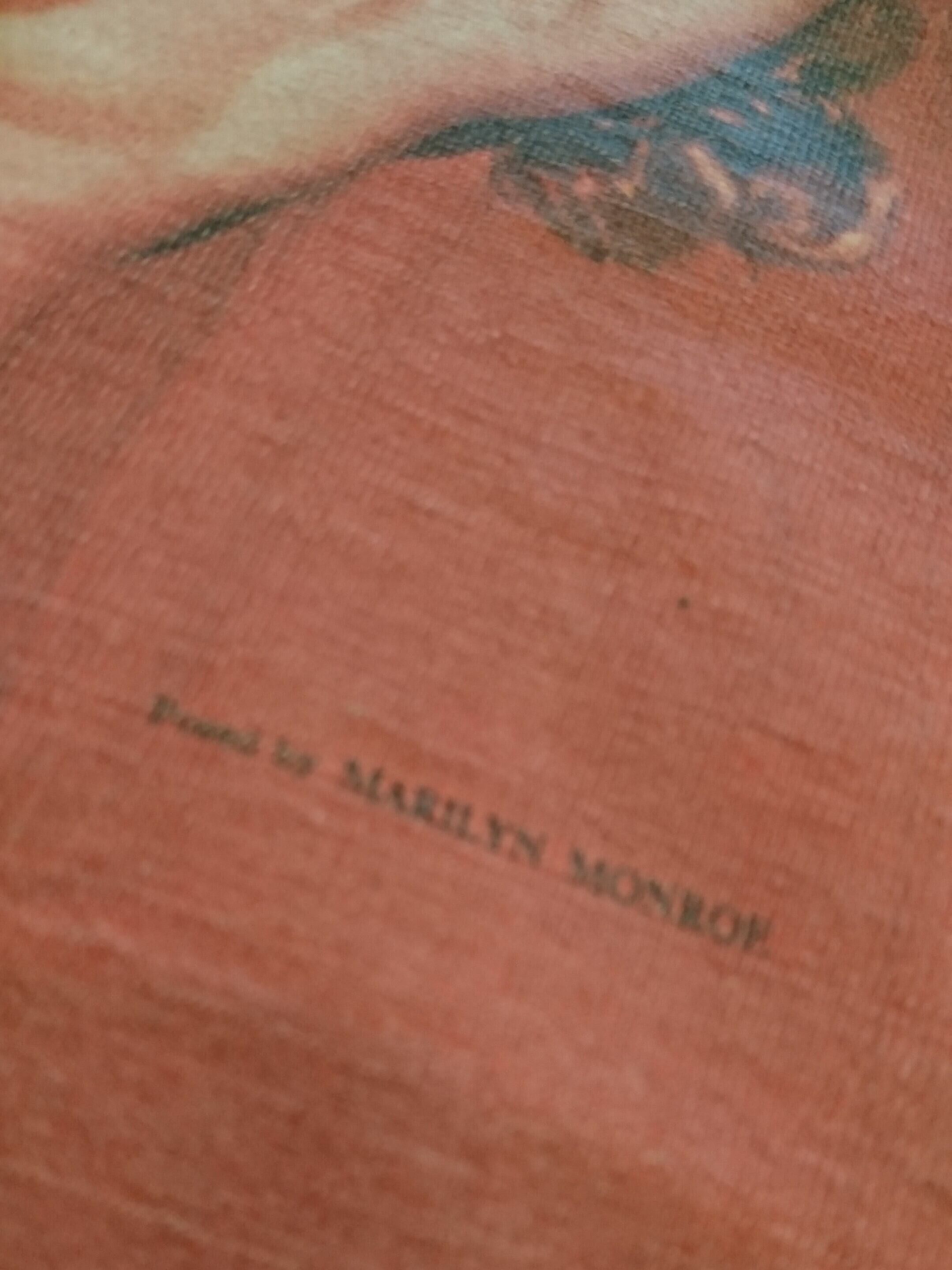 薄いイエローカラーのボディで所々色染みが出てるのとマリリンモンローのプリントに傷がありますがそこも雰囲気。サイズが合う方にはオススメしたいスペシャルな1着です。