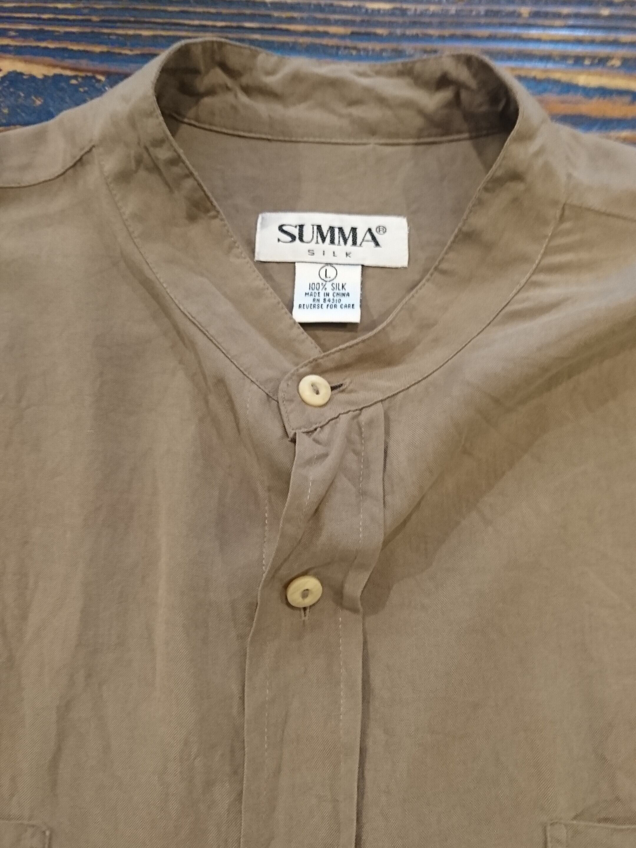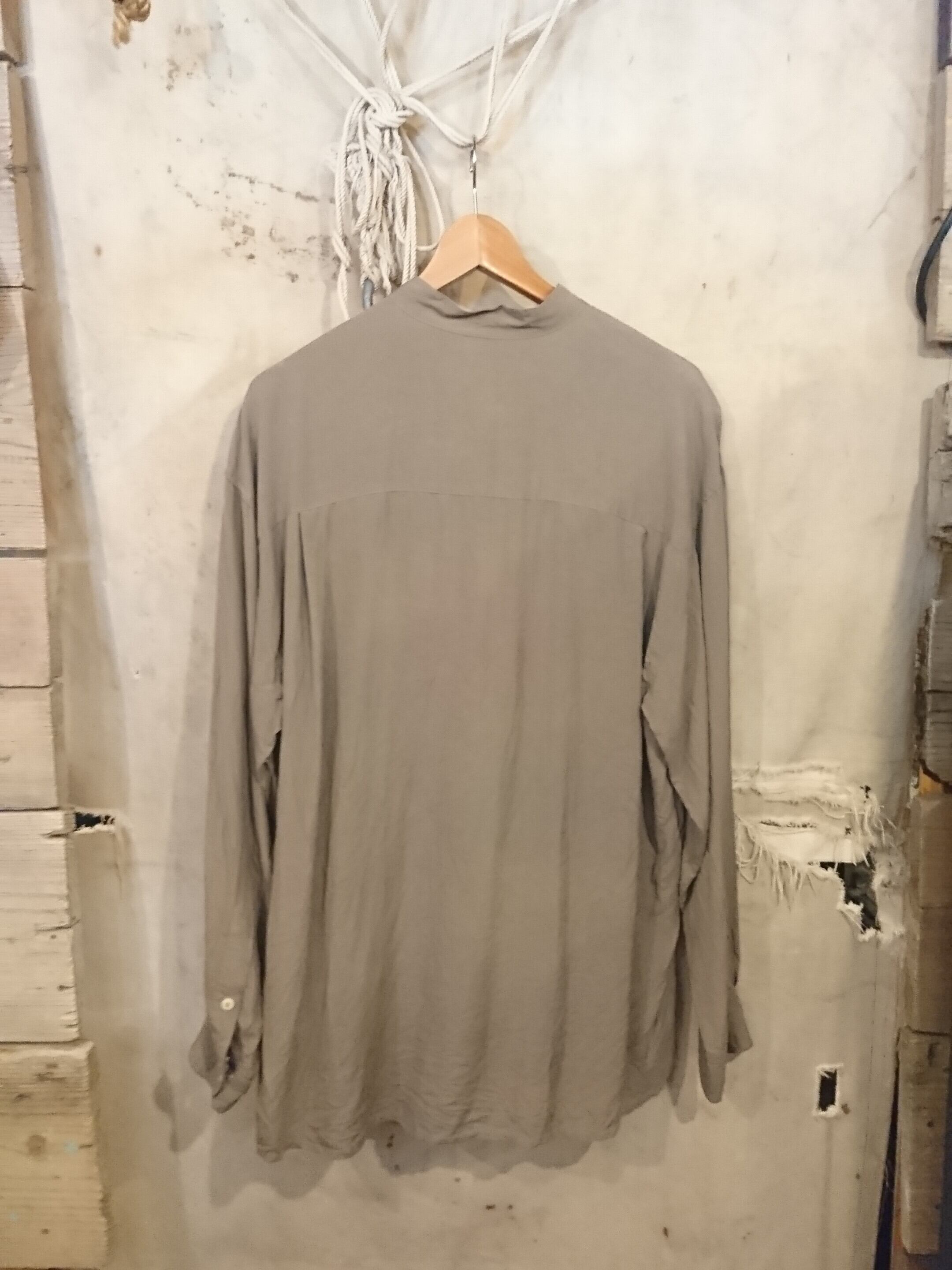 90年代 スタンドカラーのシルクシャツになります。落ち着いた色なので雰囲気あるスタイルにも