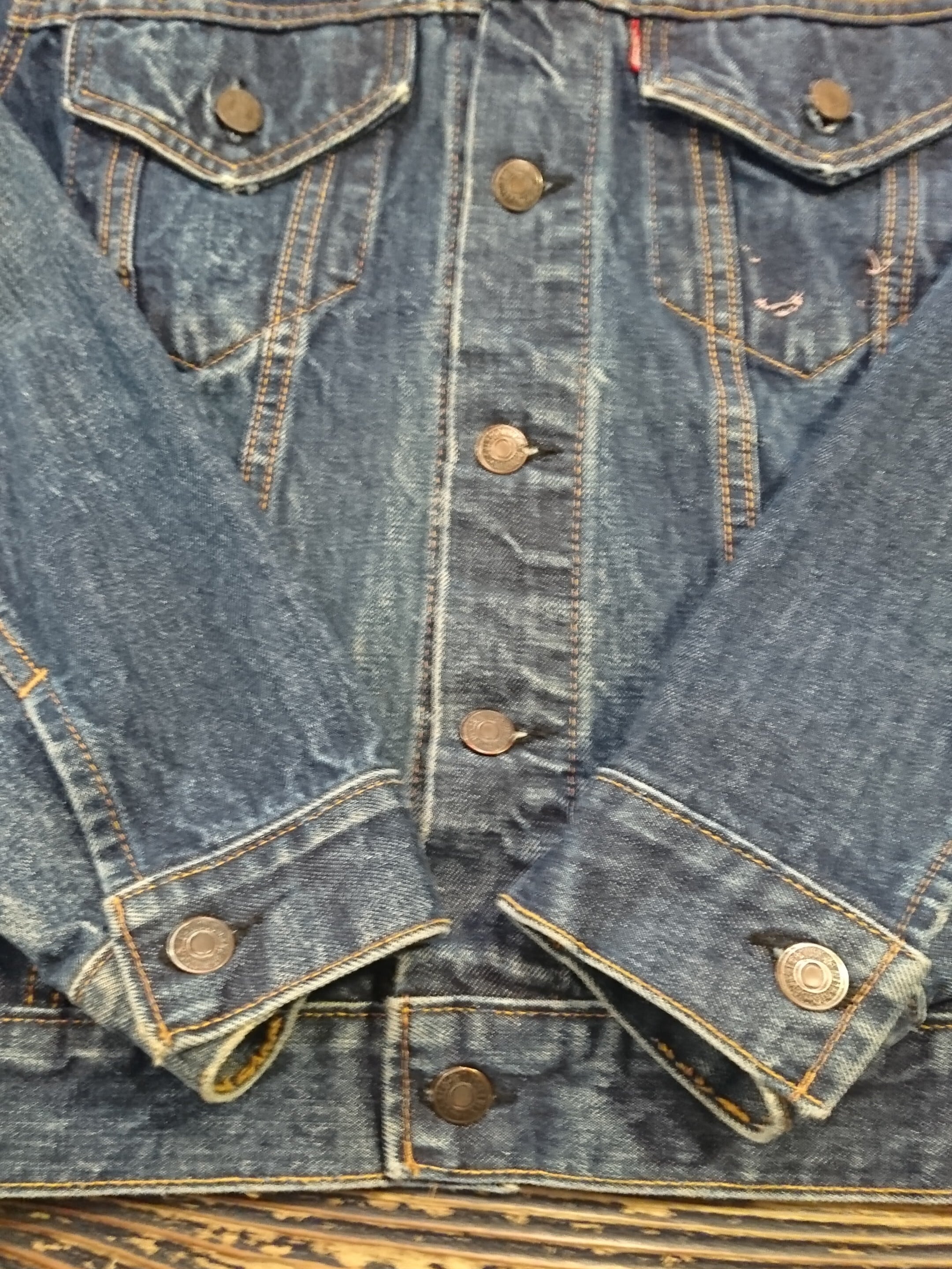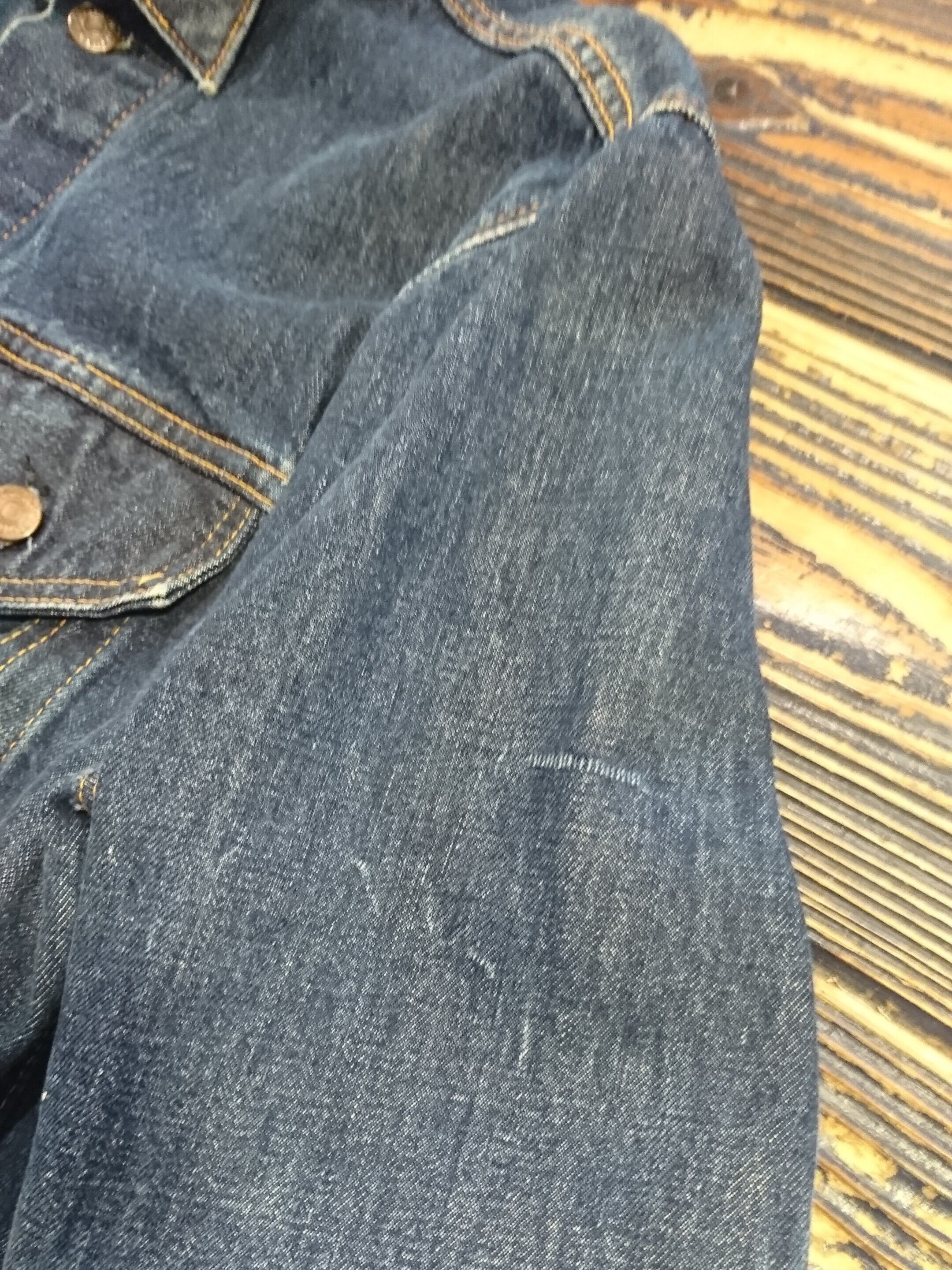 色もまだ濃く残り、これからの色落ちも楽しんでいただけるます。織りキズが数ヶ所ありますが、破れは無し。昨今探されてる方も多い70505。