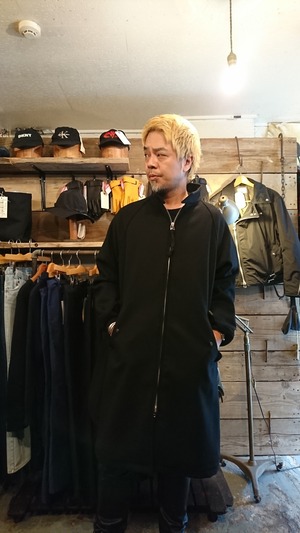 ドレープが出せる様に設計。昨年の秋冬物の中でも男女からの指示を最も多く集め爆発的なヒットを生んだアウターに。今年はそのDECKARDをより上品な縫製仕様に変えウールメルトン素材を使用