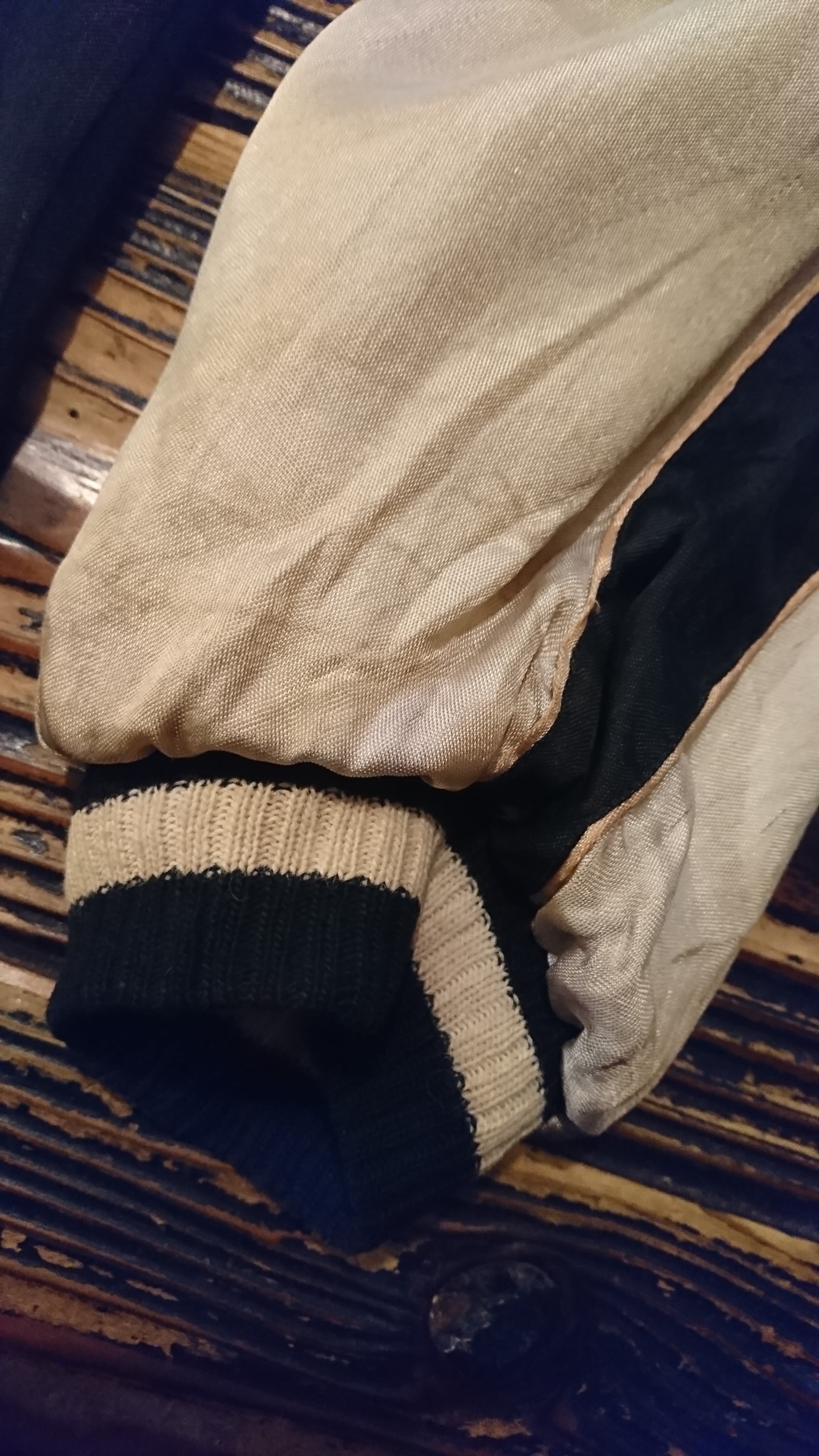 胸元と背中に鷹の刺繍。腕部分に少し汚れがありますがその他はコンディションも良いほうかと。