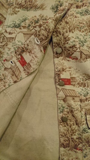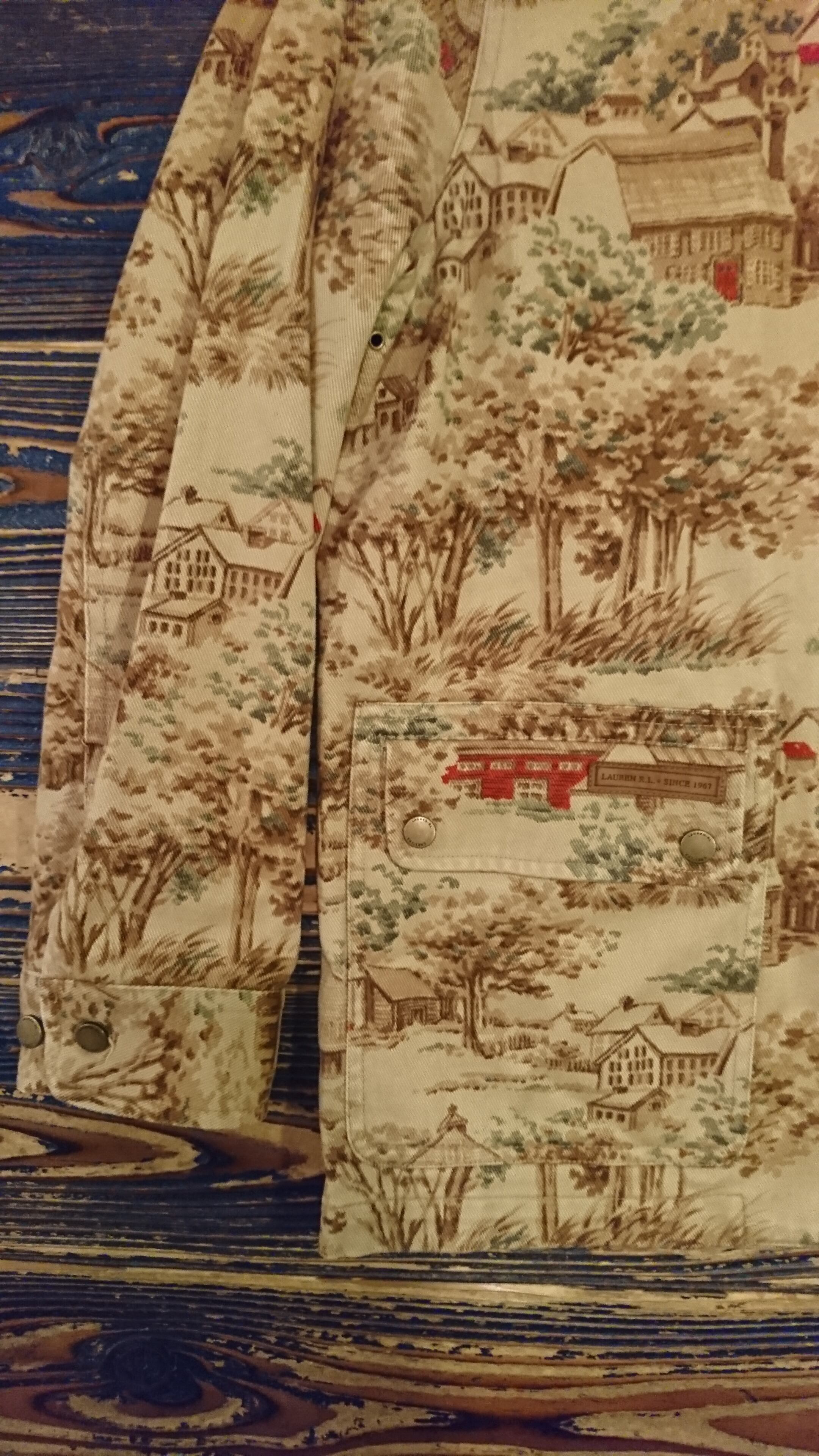 スナップ使用。村の風景の総柄プリントは見た目のインパクトも大。LAUREN RALPH LAURENは