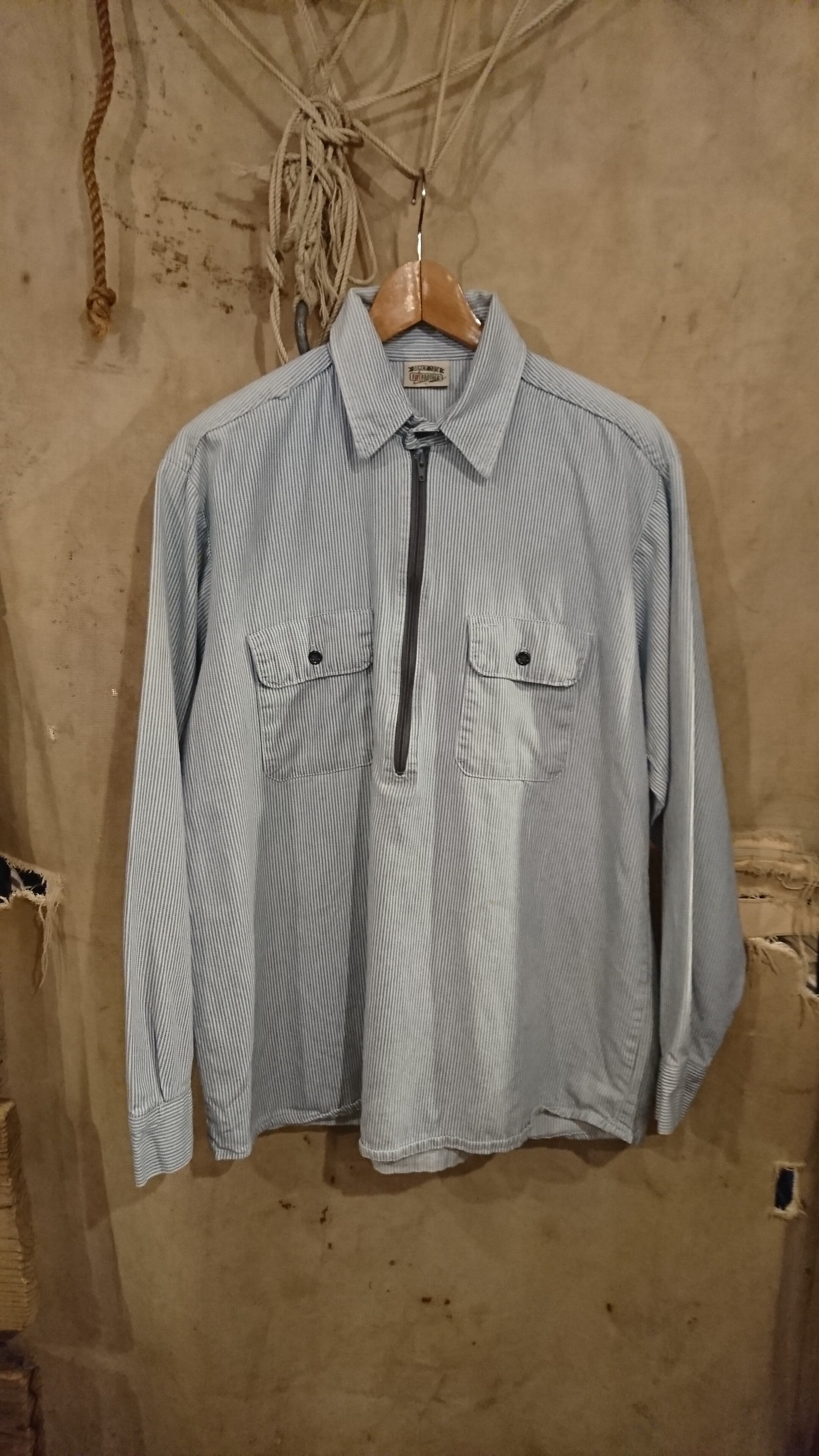 90年代 FIVE BROTHERのヒッコリープルオーバーシャツになります。ジッパー裏はシャンブレー生地を使用。定番の型で古いものではないですが