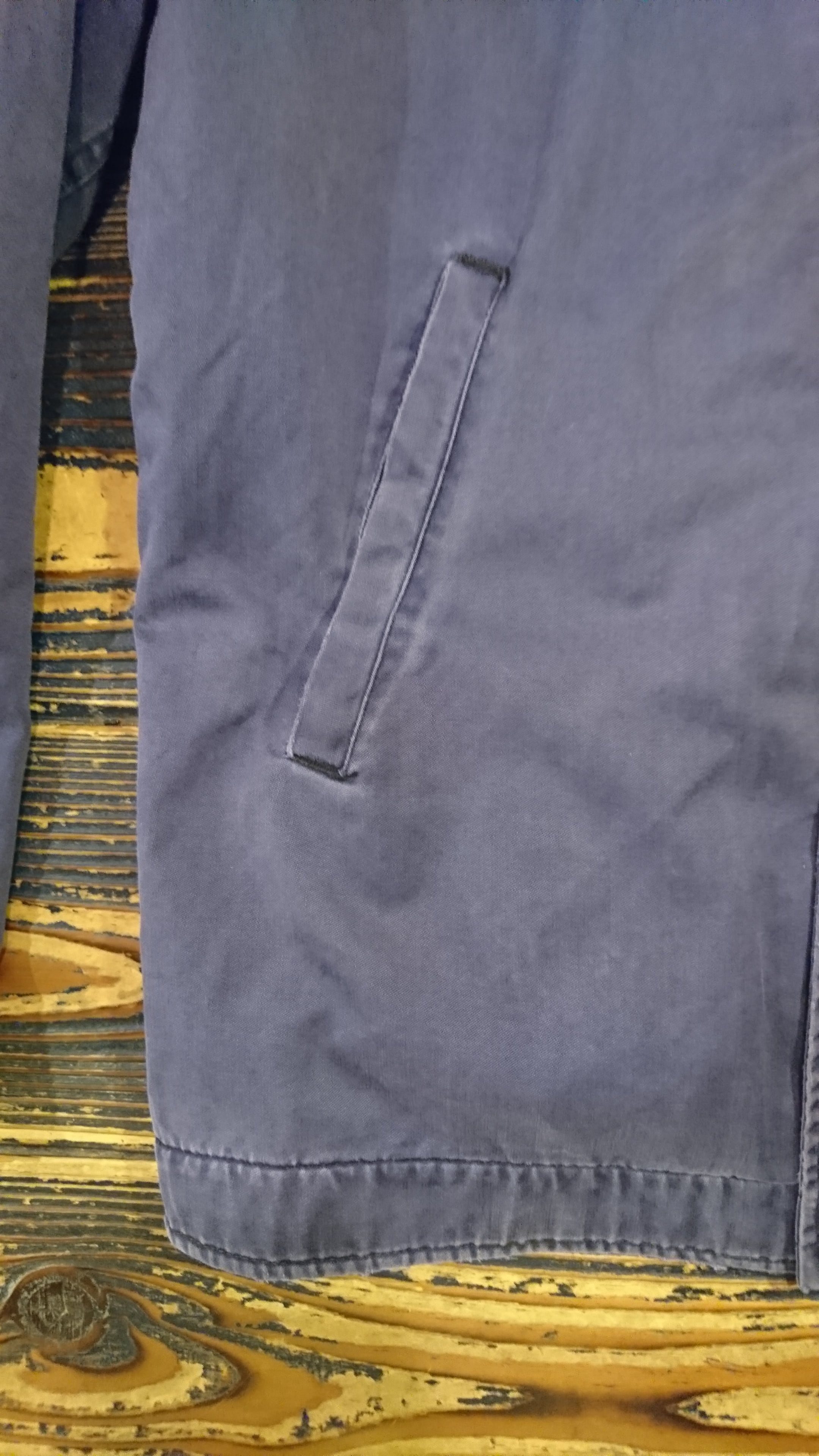 甲板作業用として開発されたN-1やA-2ジャケットと違い、このユーティリティジャケットは甲板作業用ではなく、戦艦内部で着用してたジャケット。色褪せした茄子紺色の雰囲気。内側の裾には