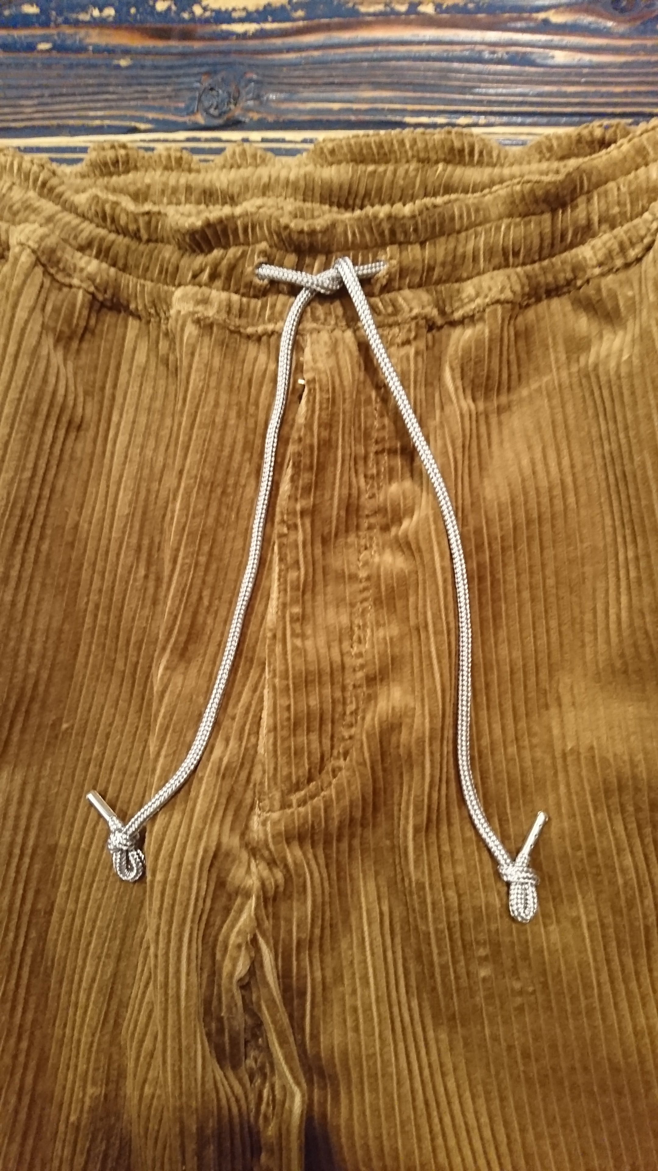 イージーパンツ仕様。フロントにはジッパーがつきます。短めの丈とルーズなシルエットとの